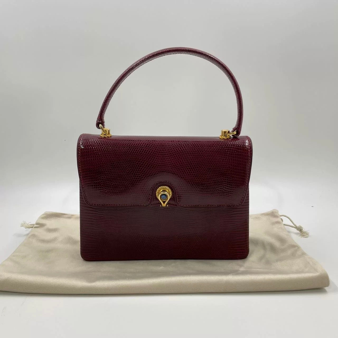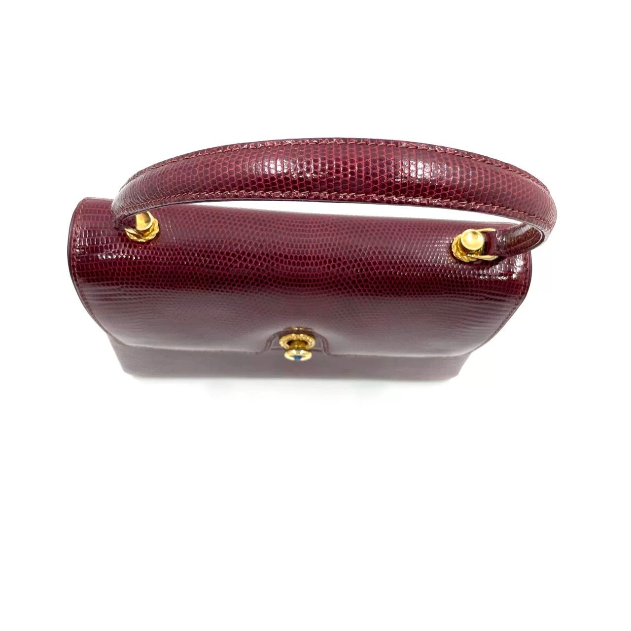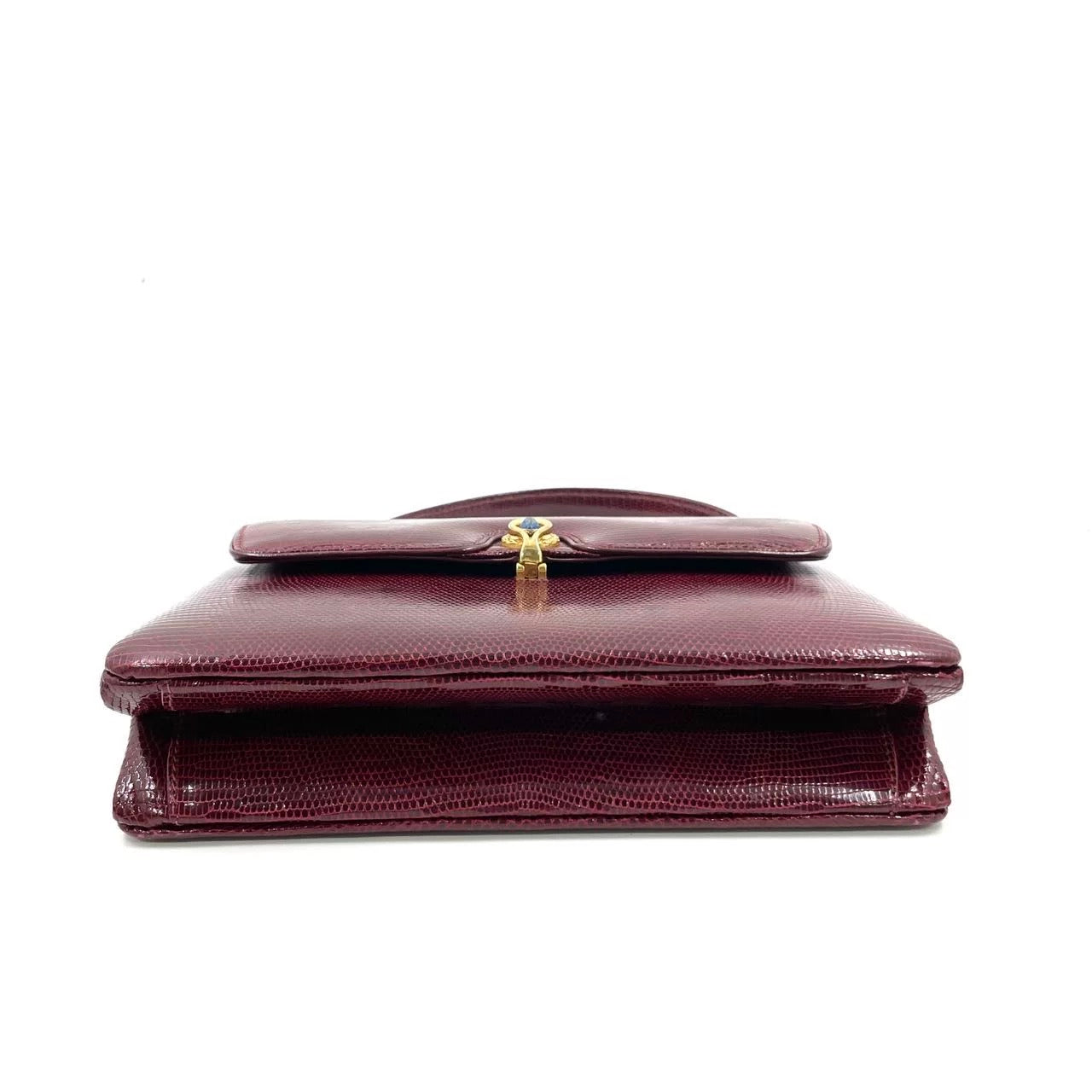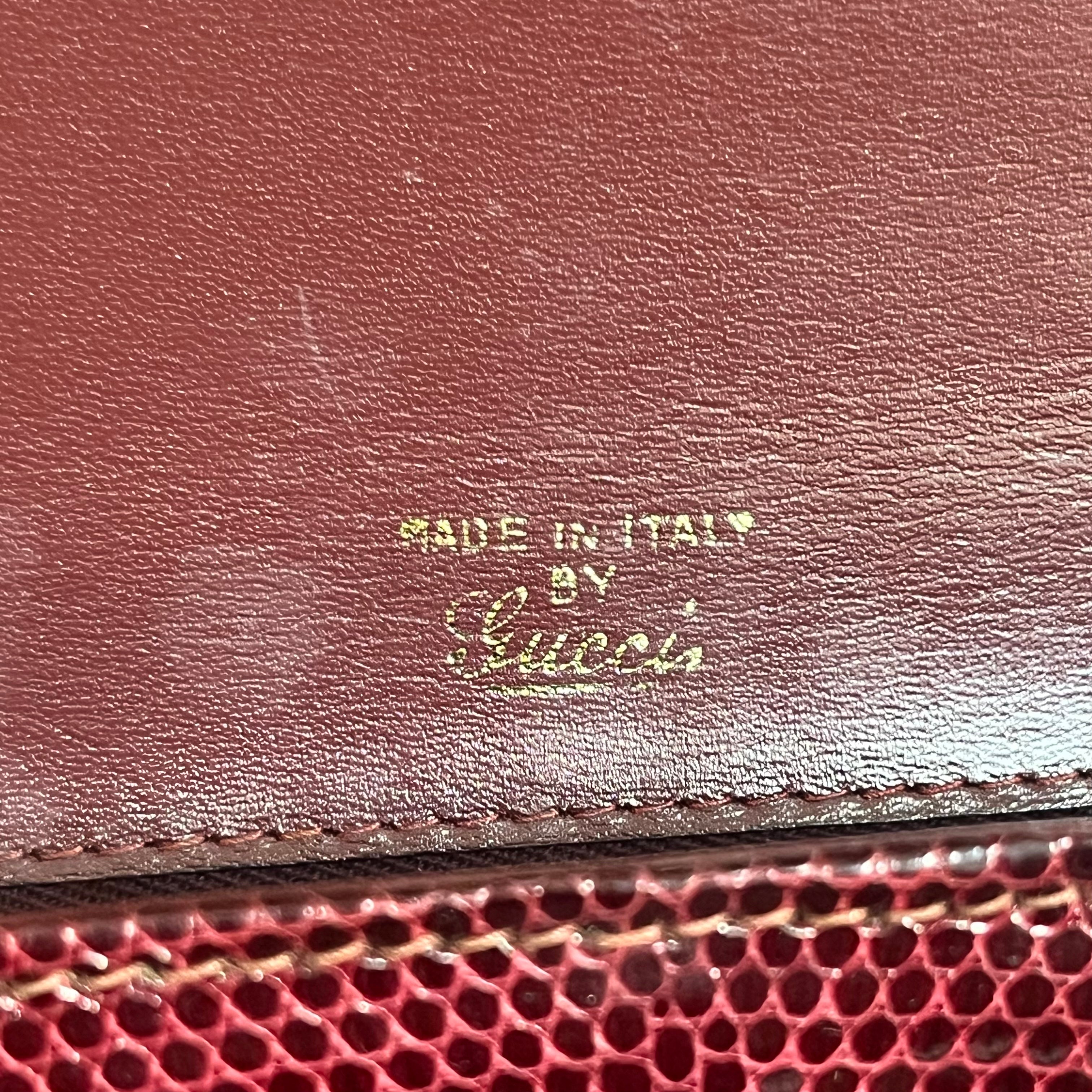 Gucci Vintage Bag Burgundy Lizard Leather Blue Lapis Lazuli Stone Gold-tone Hardware