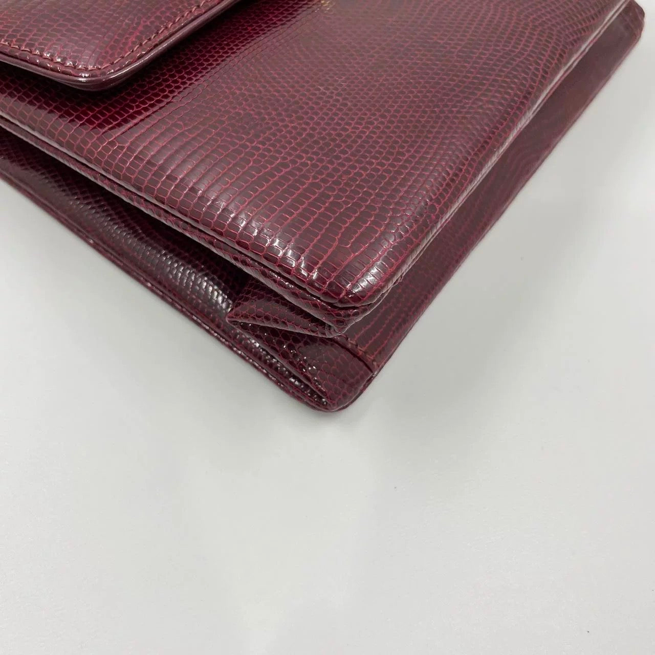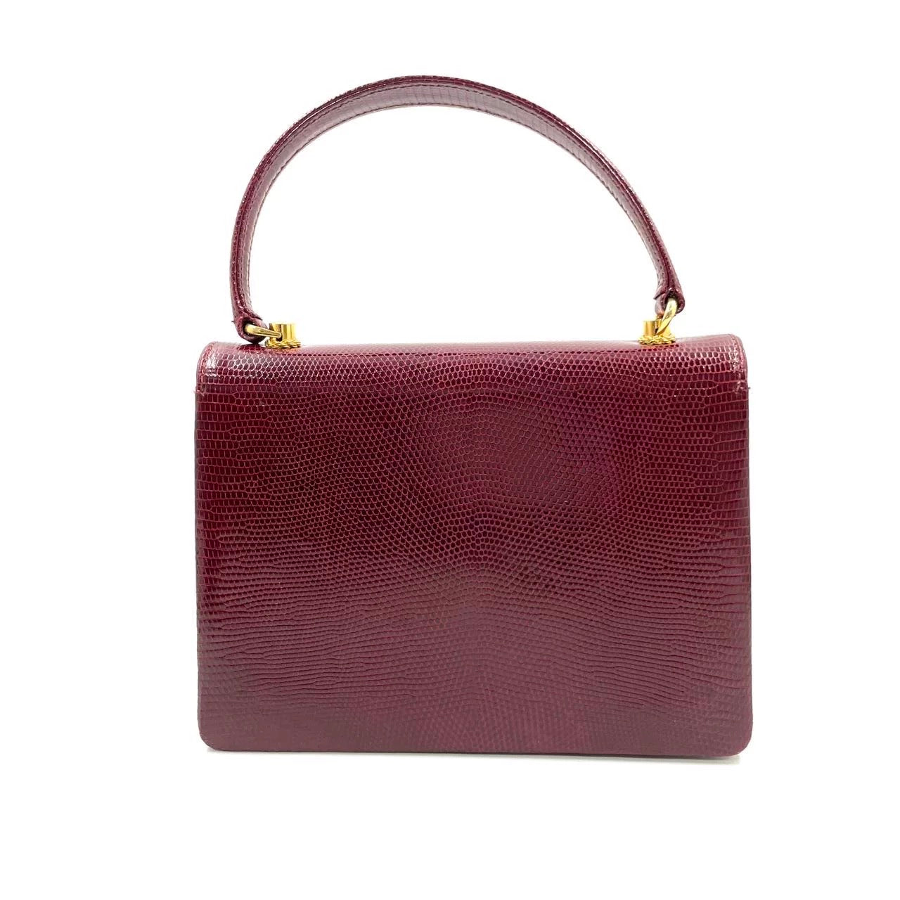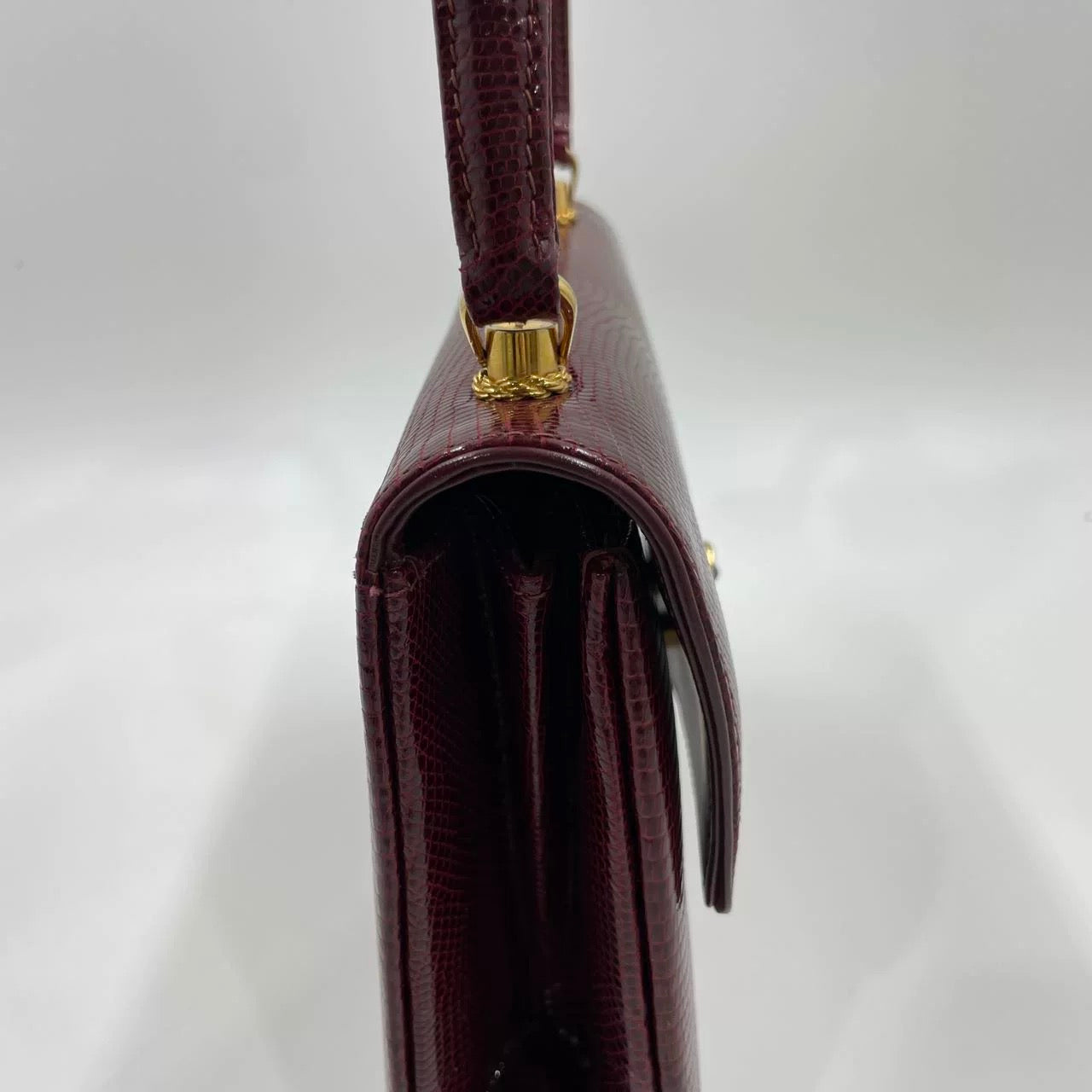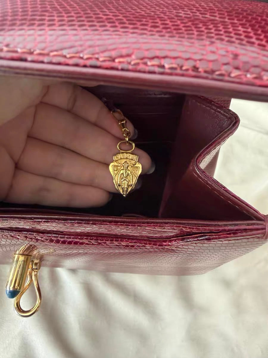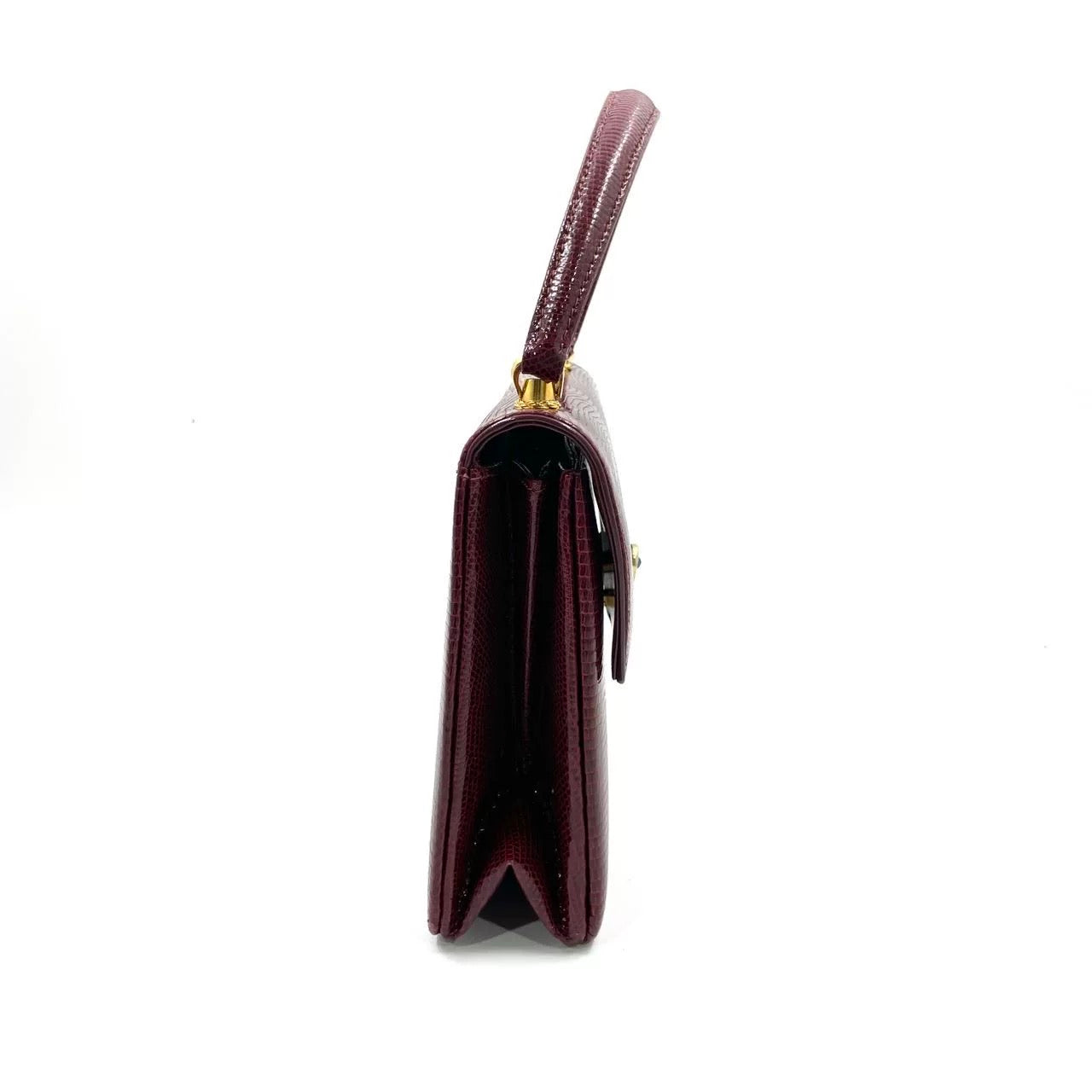 Gucci Vintage Bag Burgundy Lizard Leather Blue Lapis Lazuli Stone Gold-tone Hardware