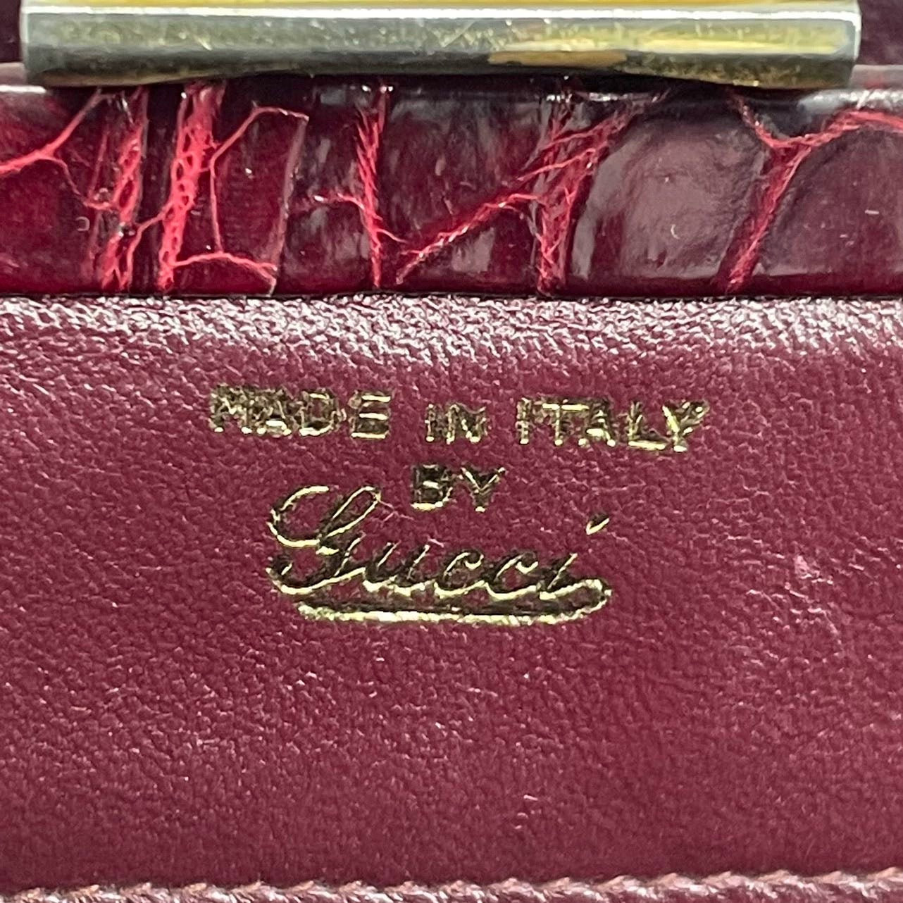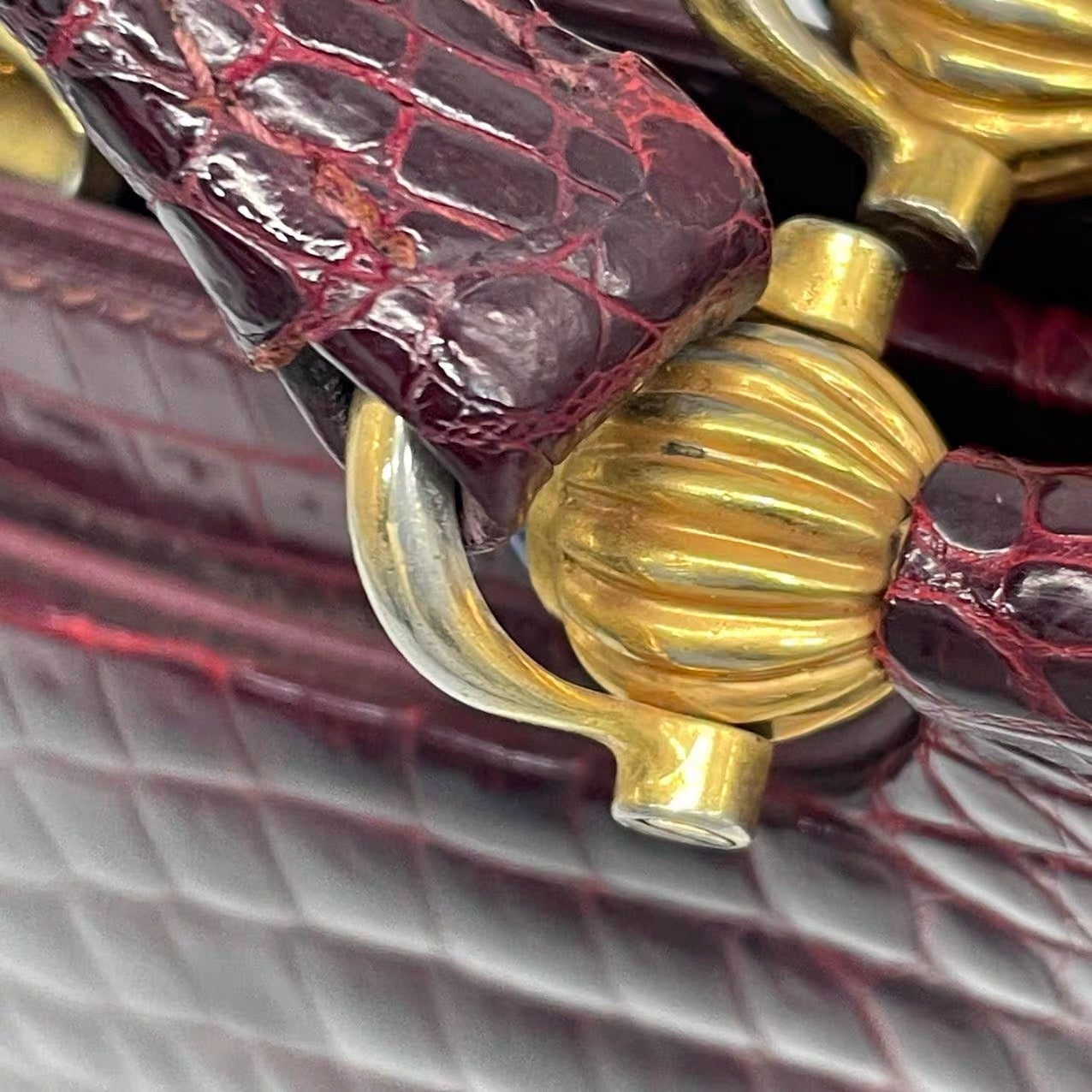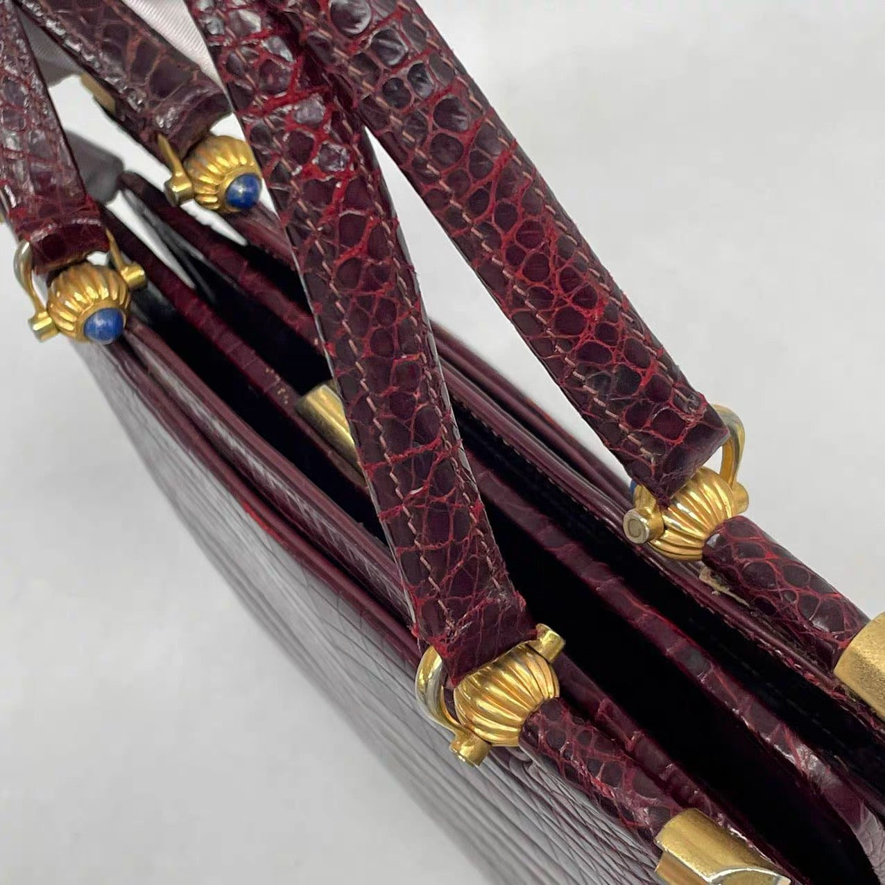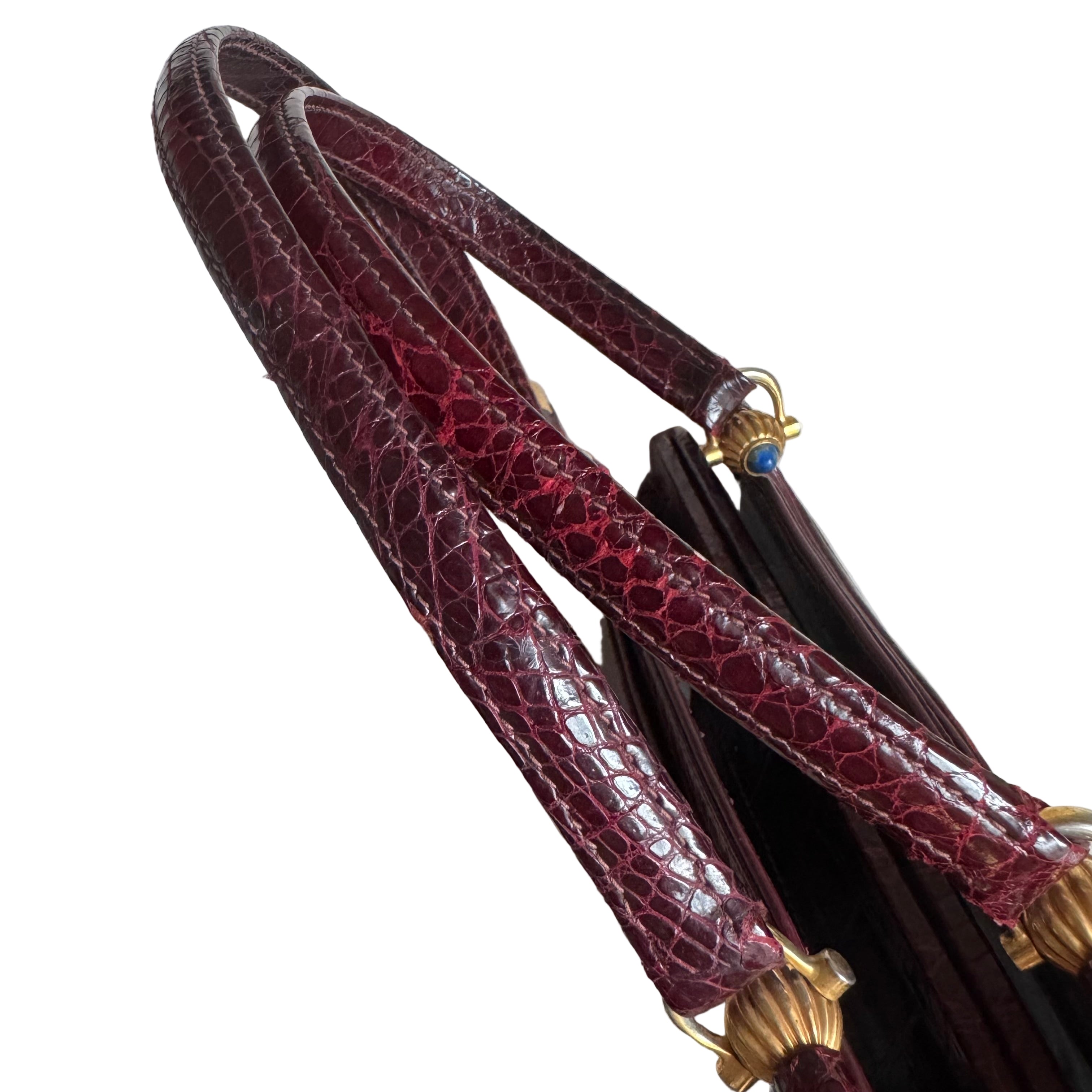 Gucci Vintage Burgundy Alligator Leather Blue Lapis Lazuli Stone Gold-tone Hardware Handbag