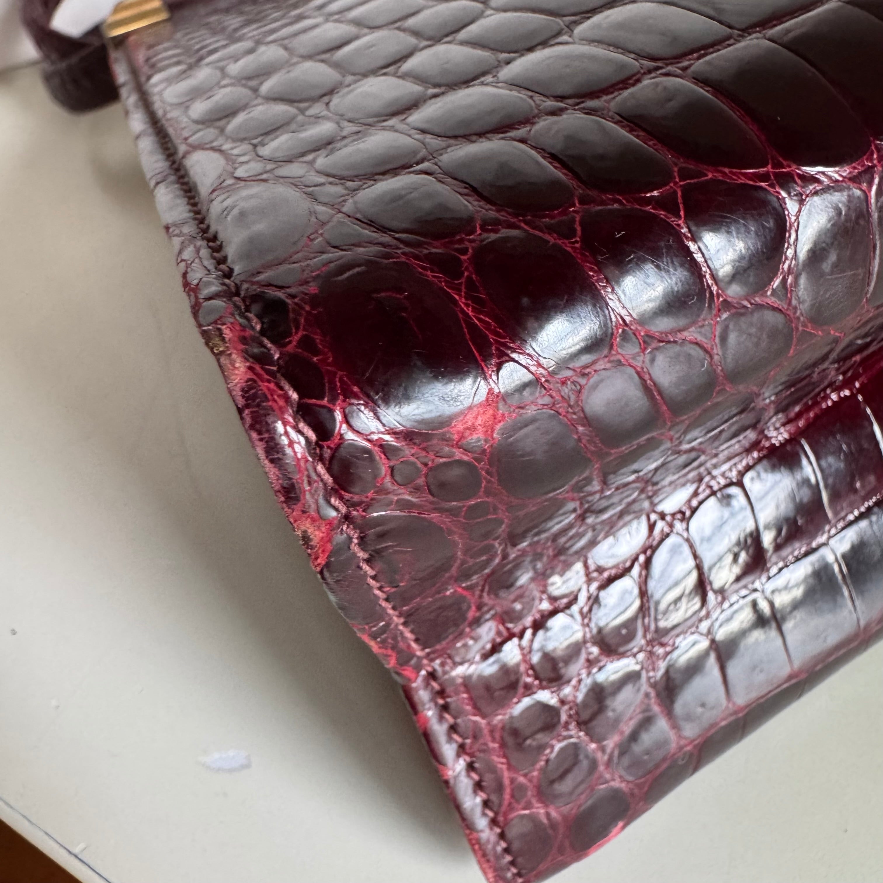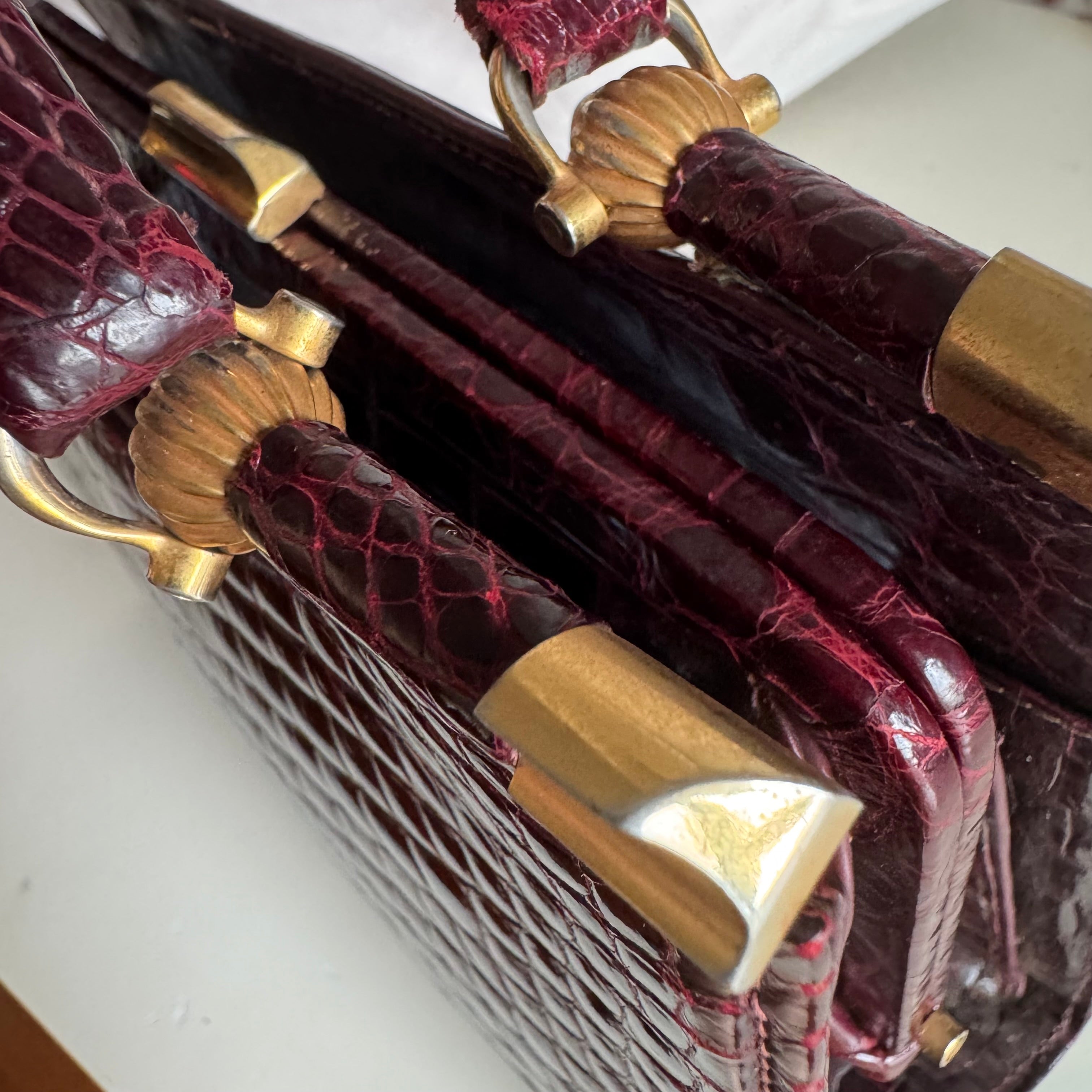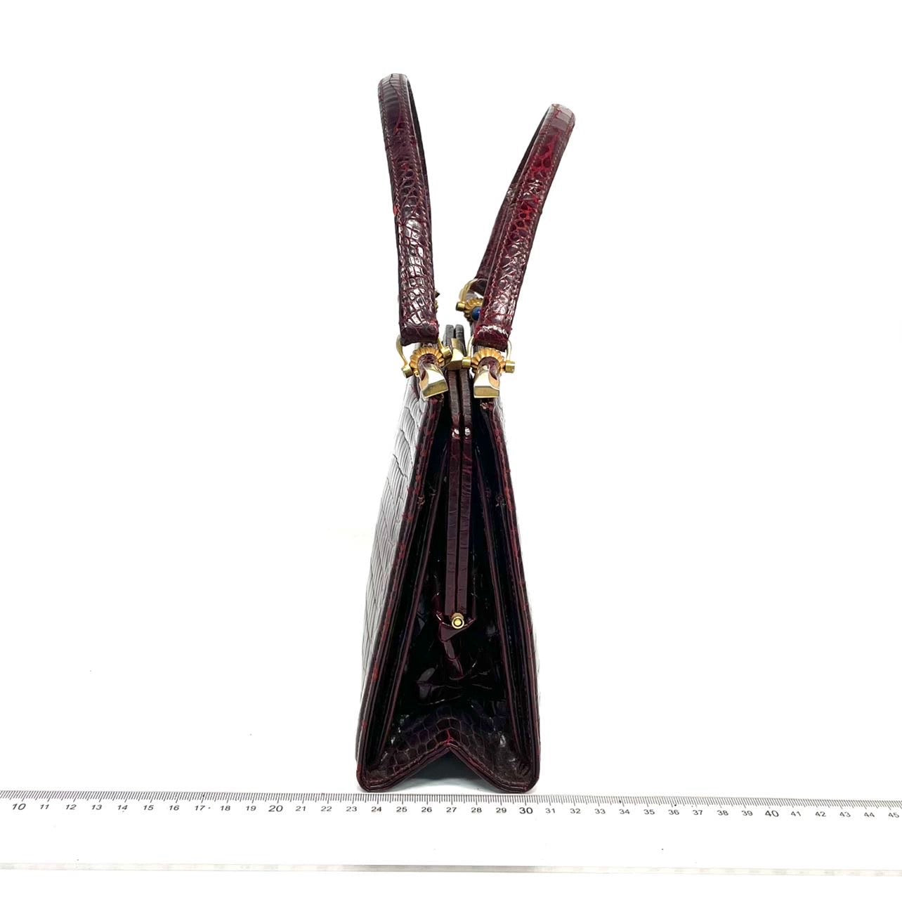 Gucci Vintage Burgundy Alligator Leather Blue Lapis Lazuli Stone Gold-tone Hardware Handbag