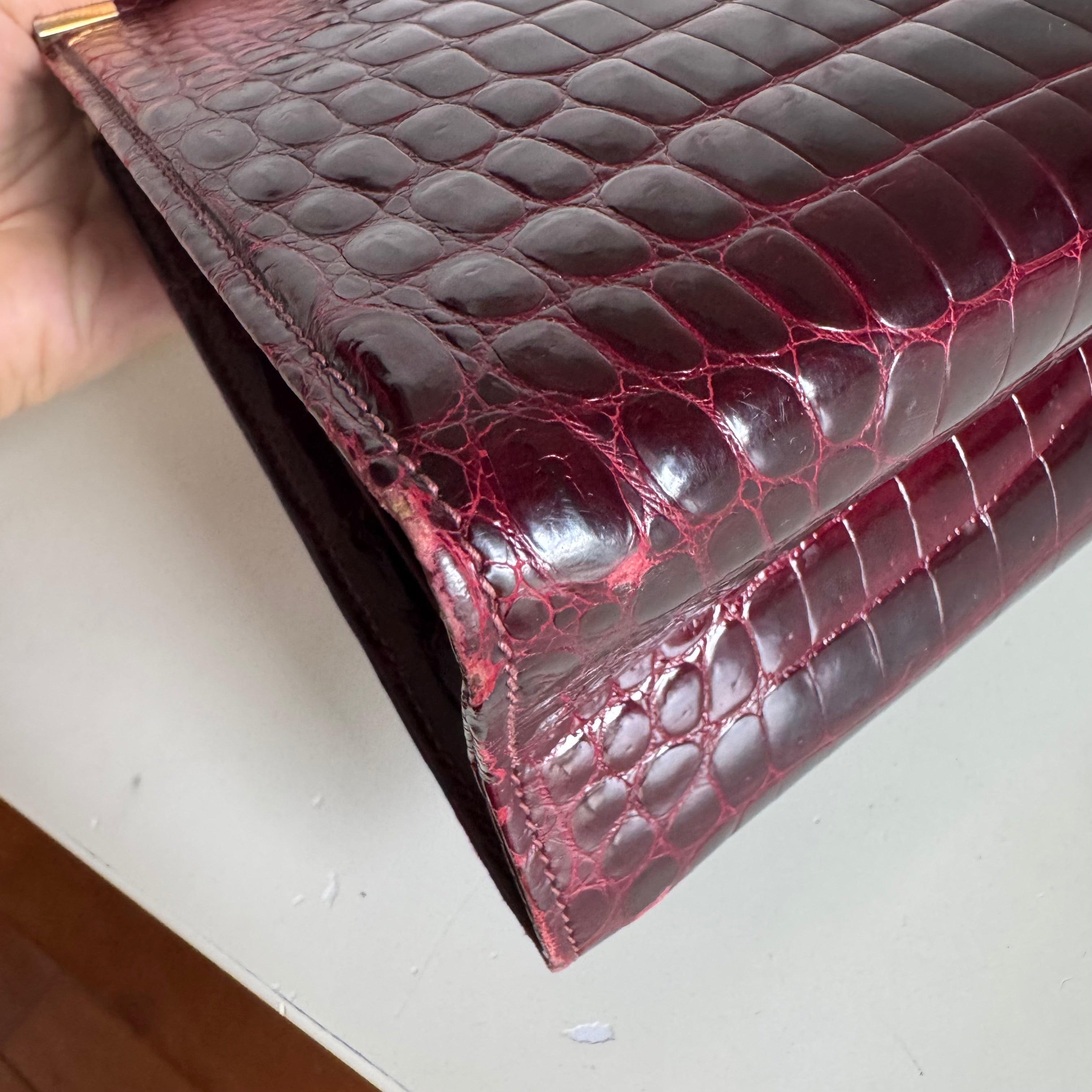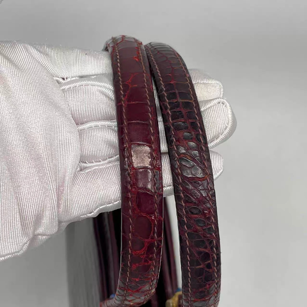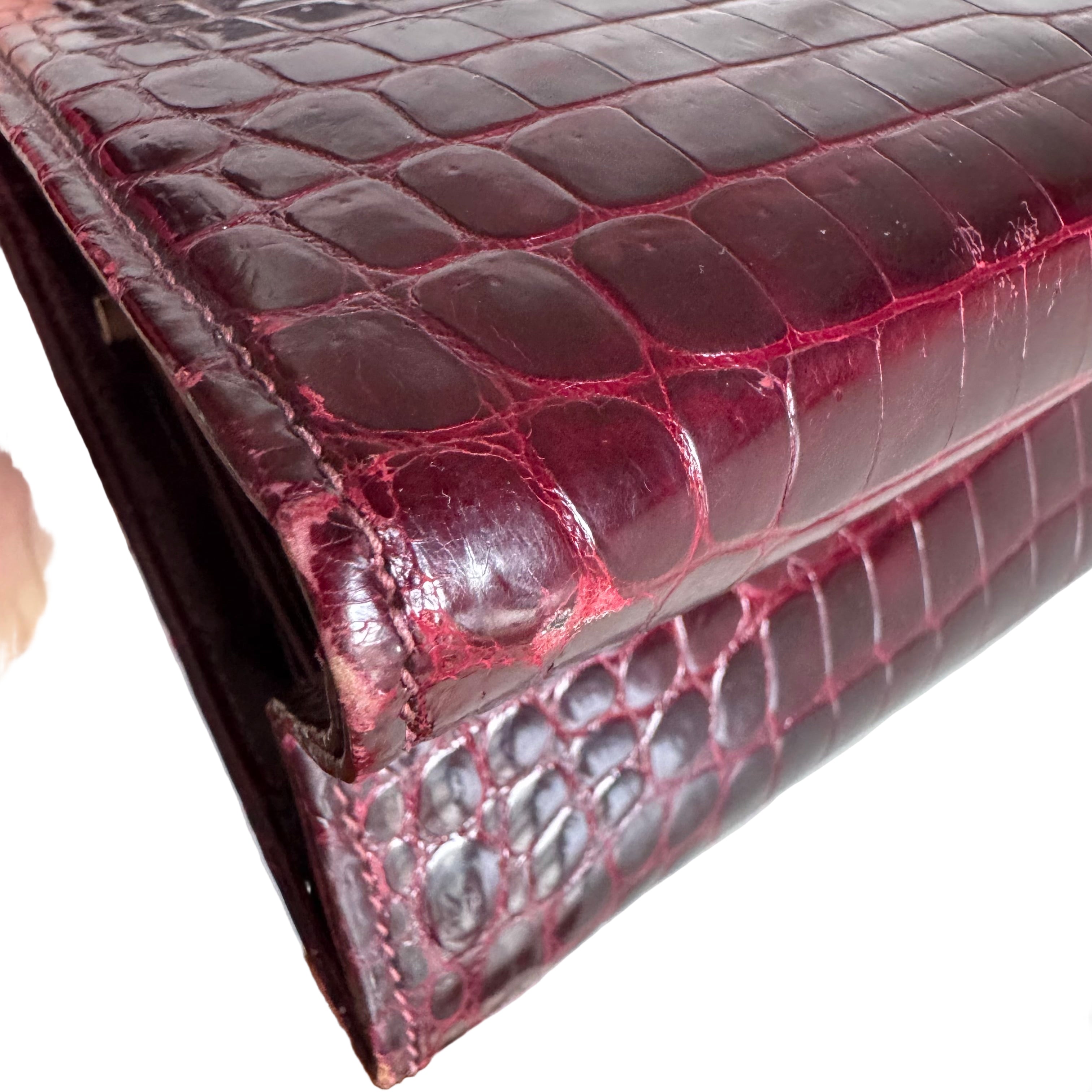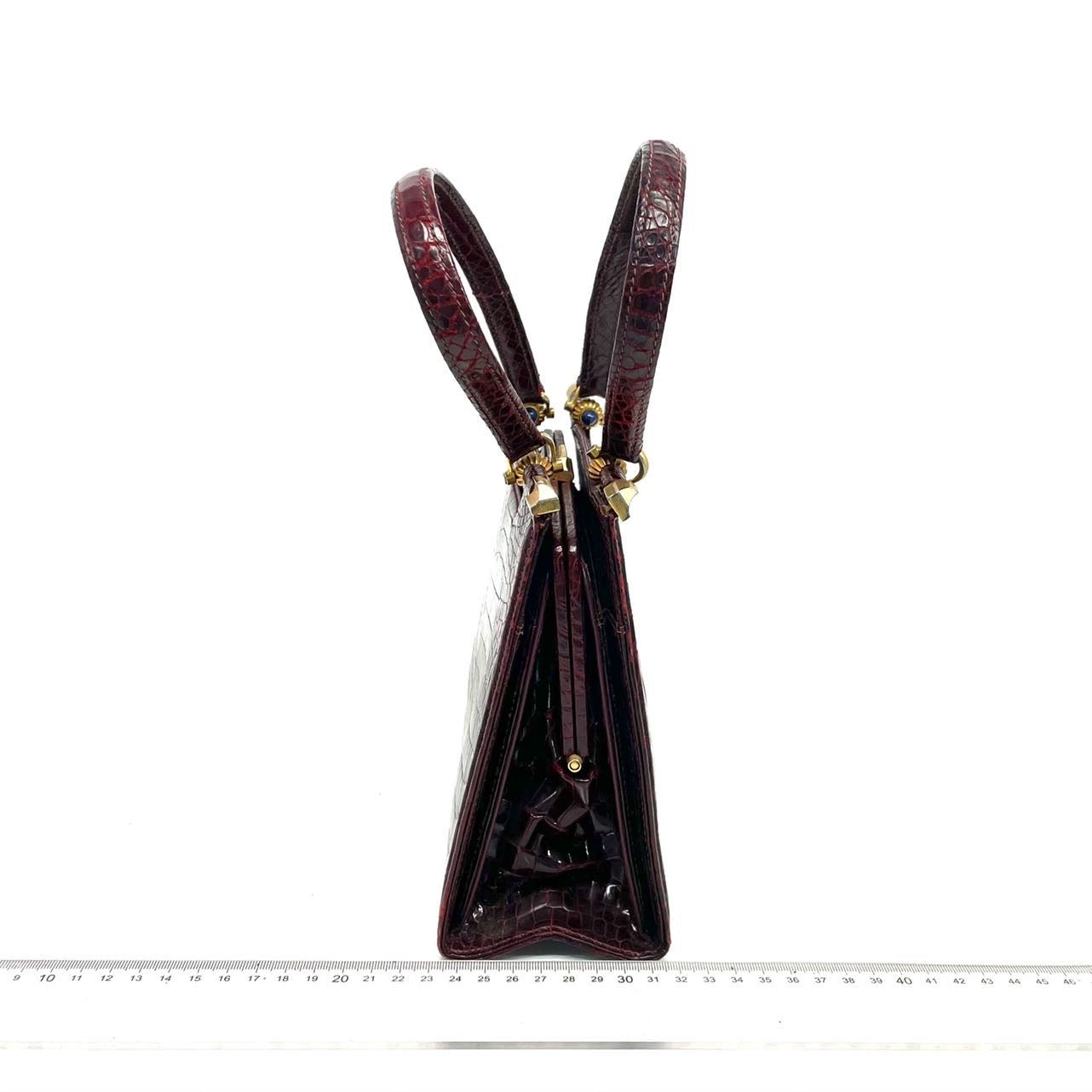Gucci Vintage Burgundy Alligator Leather Blue Lapis Lazuli Stone Gold-tone Hardware Handbag