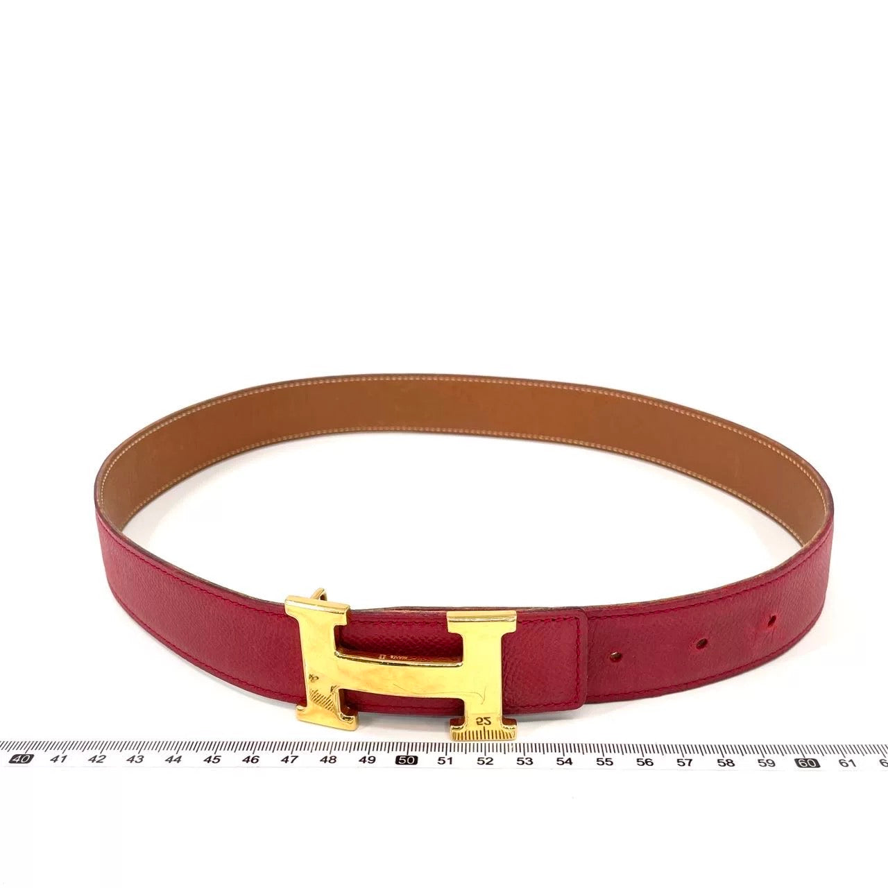 Hermès Constance H Belt Red and Gold Clemence Leather Size 70