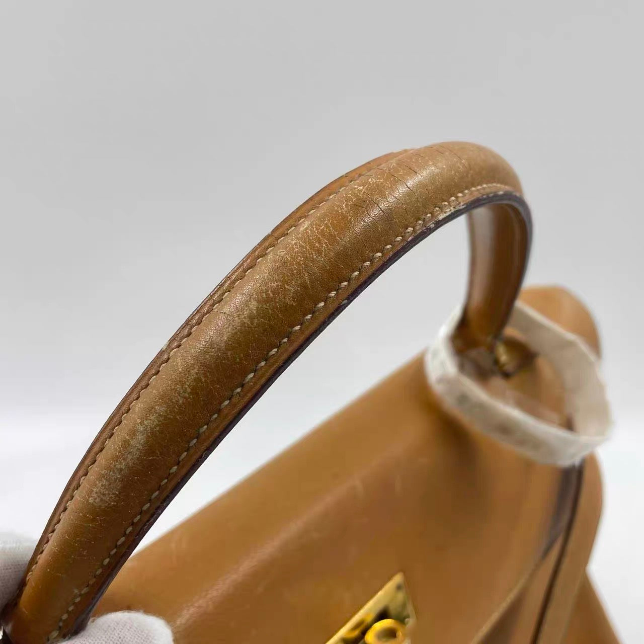Hermes Kelly 32 Retourne 1976 Gold Box Leather Gold Hardware