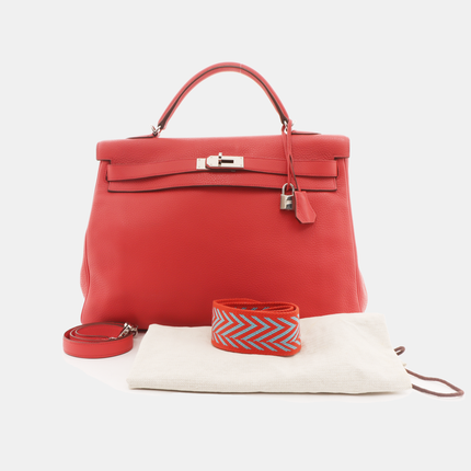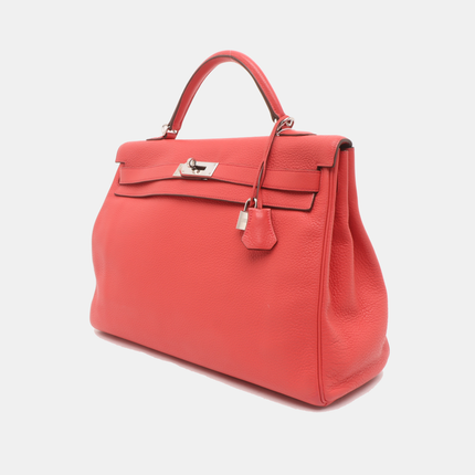 Hermes Kelly 40 Rose Jaipur Clemence Retourne Silver Hardware 2010