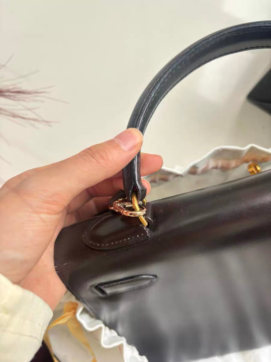 Hermes Kelly 32 Sellier Dark Chocolate Brown Box Leather Gold Hardware 1988