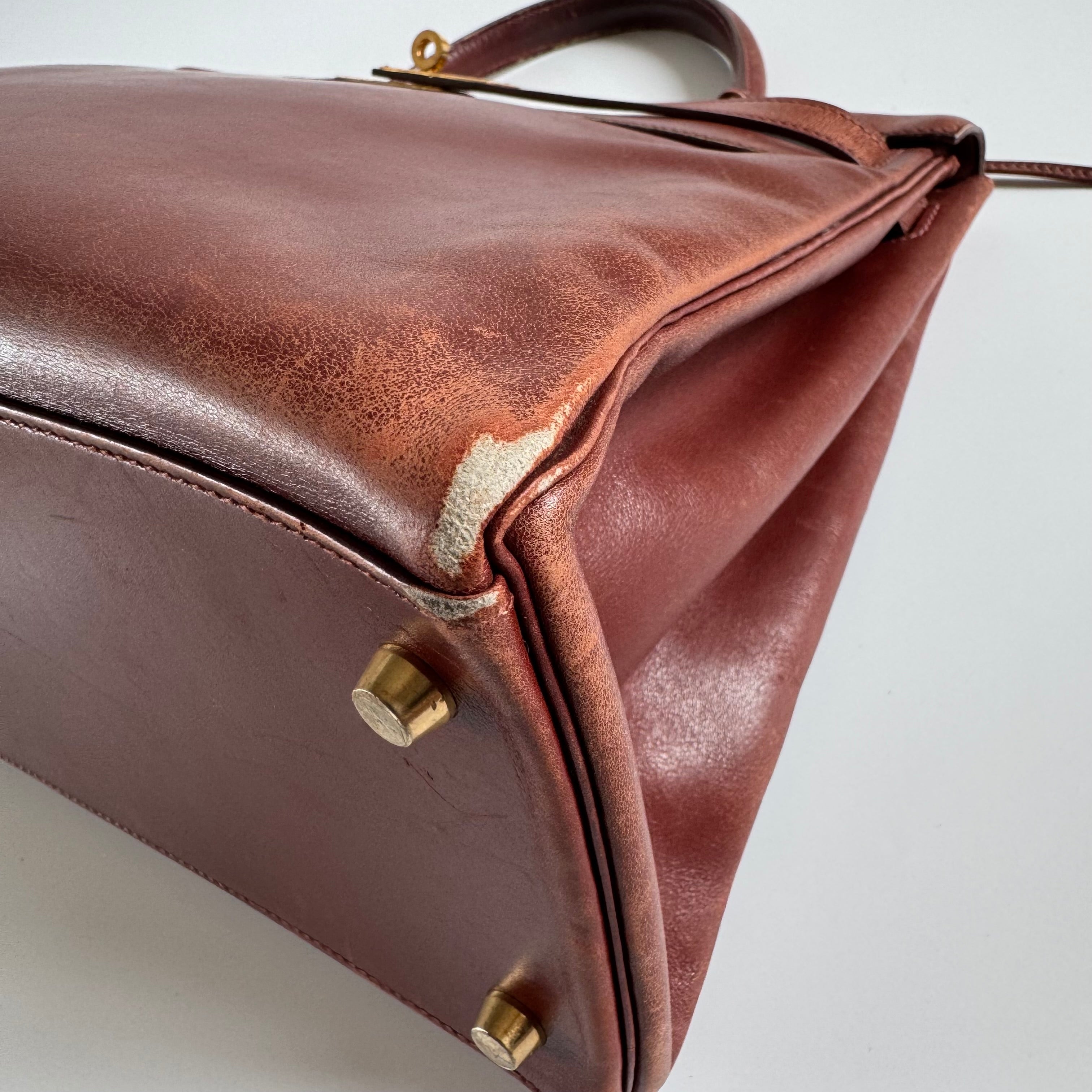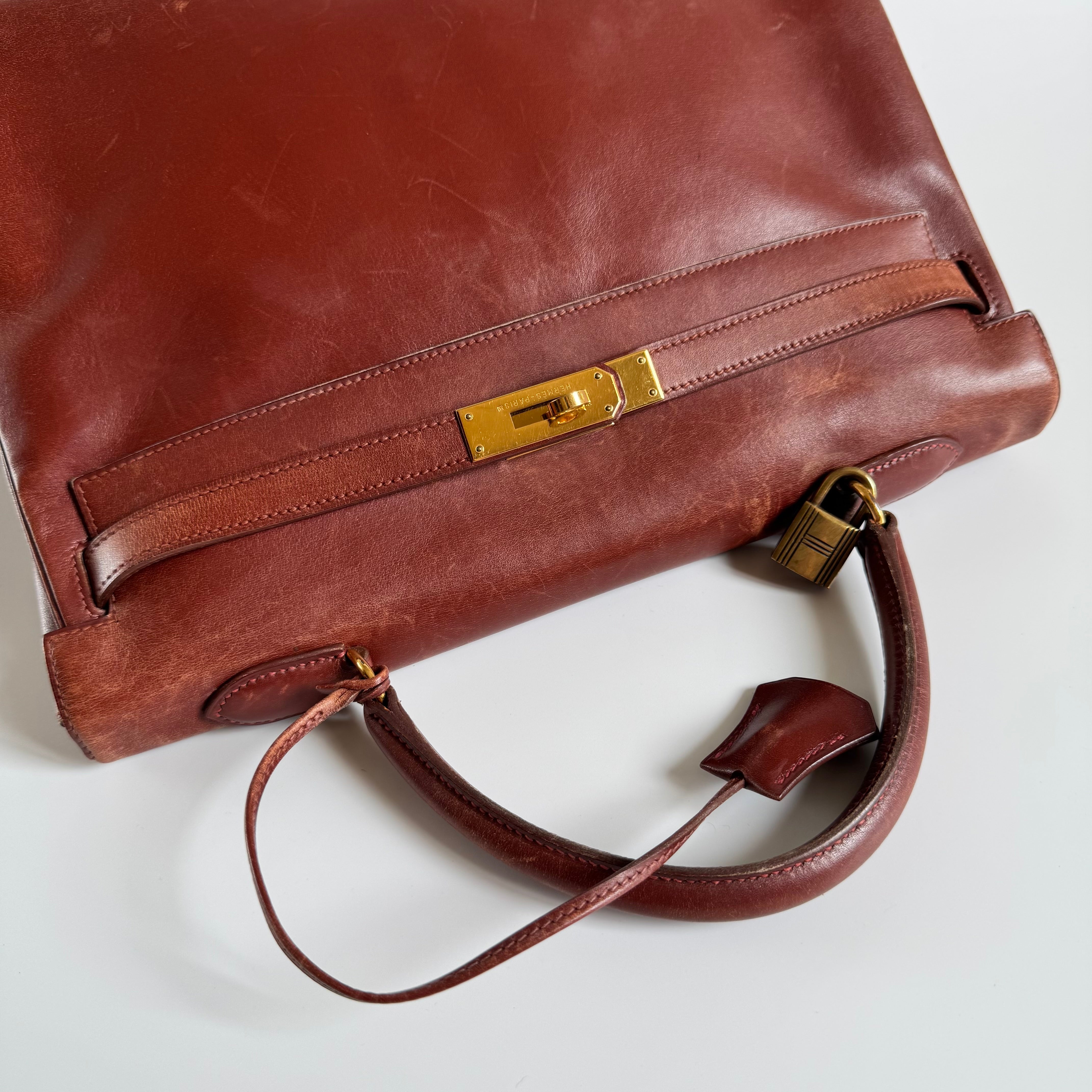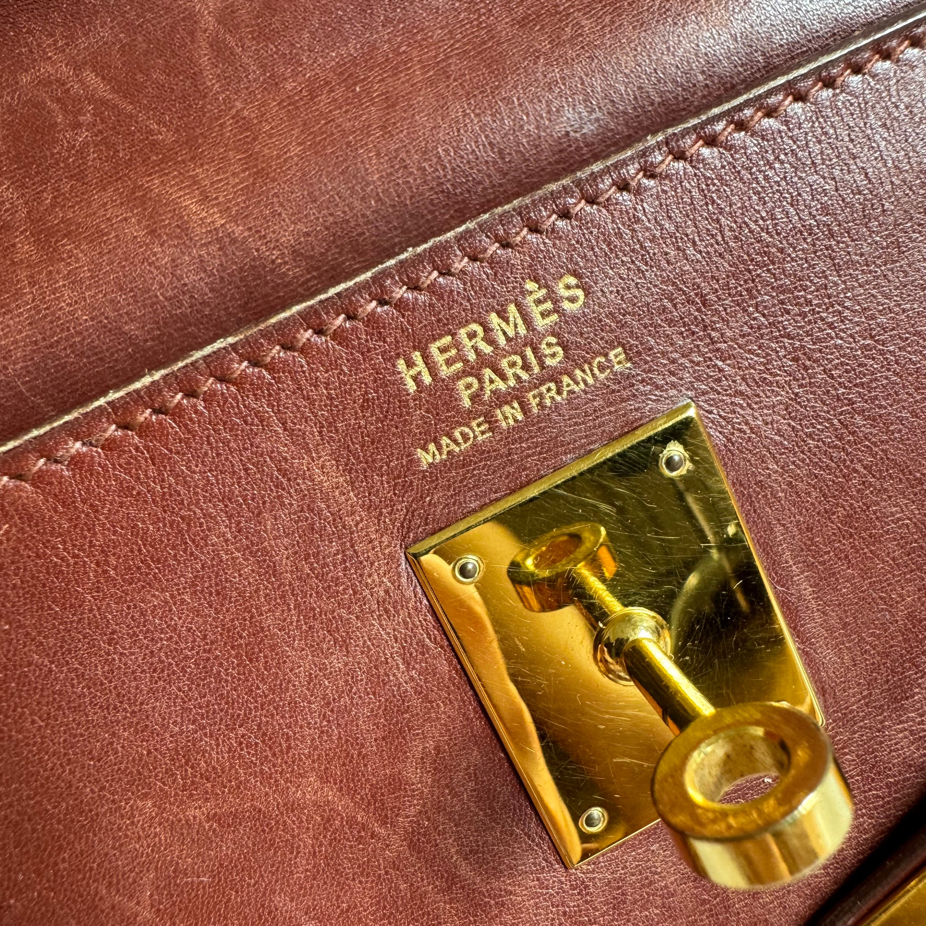Hermes Kelly 35 Vintage Brown Box Calfskin Leather Gold Hardware 1995 With Strap Lock Key n Clochette