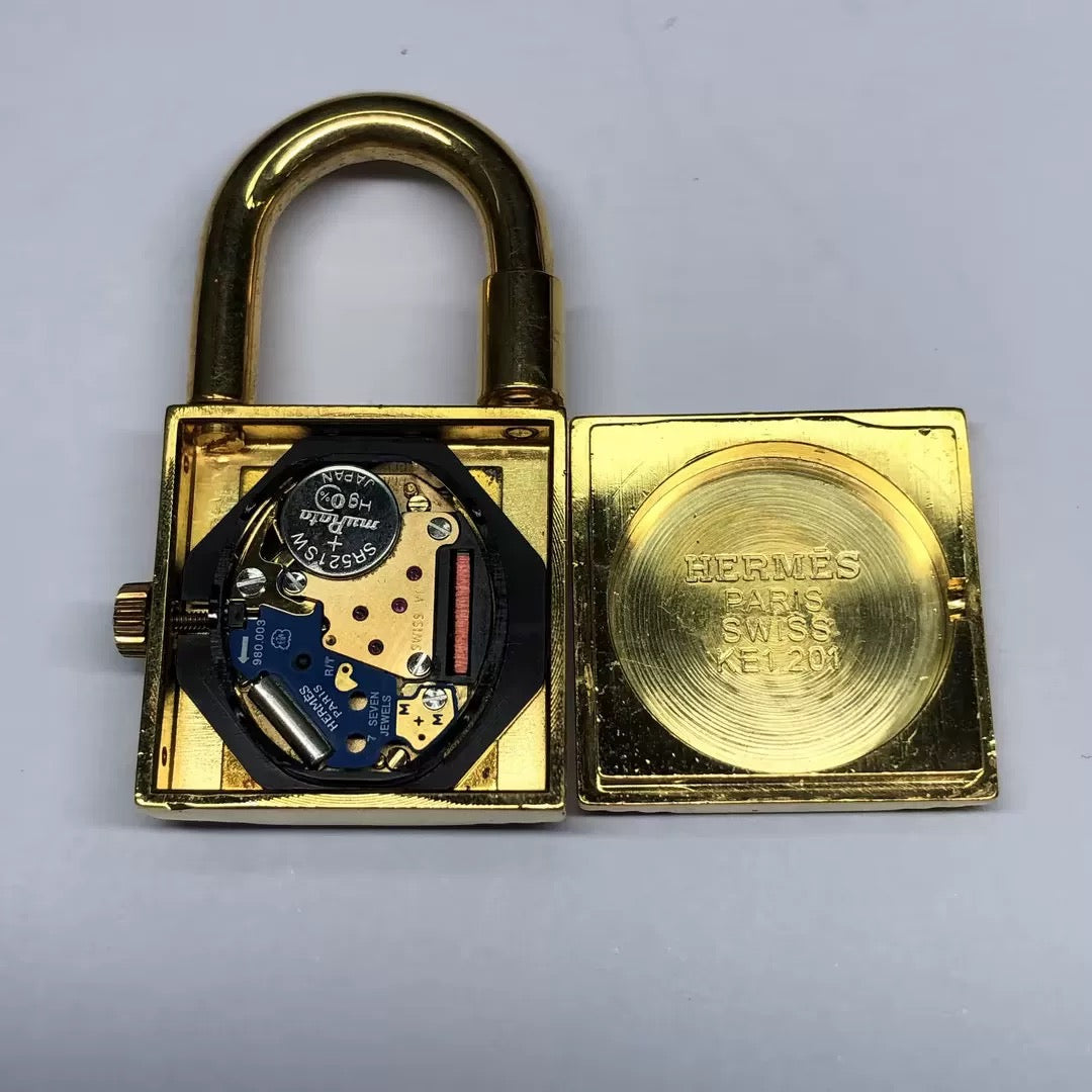 Hermès Kelly Padlock Gold Watch with Diamonds Brown Leather Strap