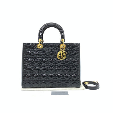 Lady Dior Large Bag Black Patent Leather Gold Hardware