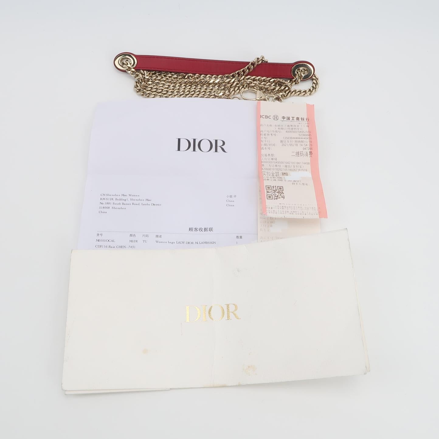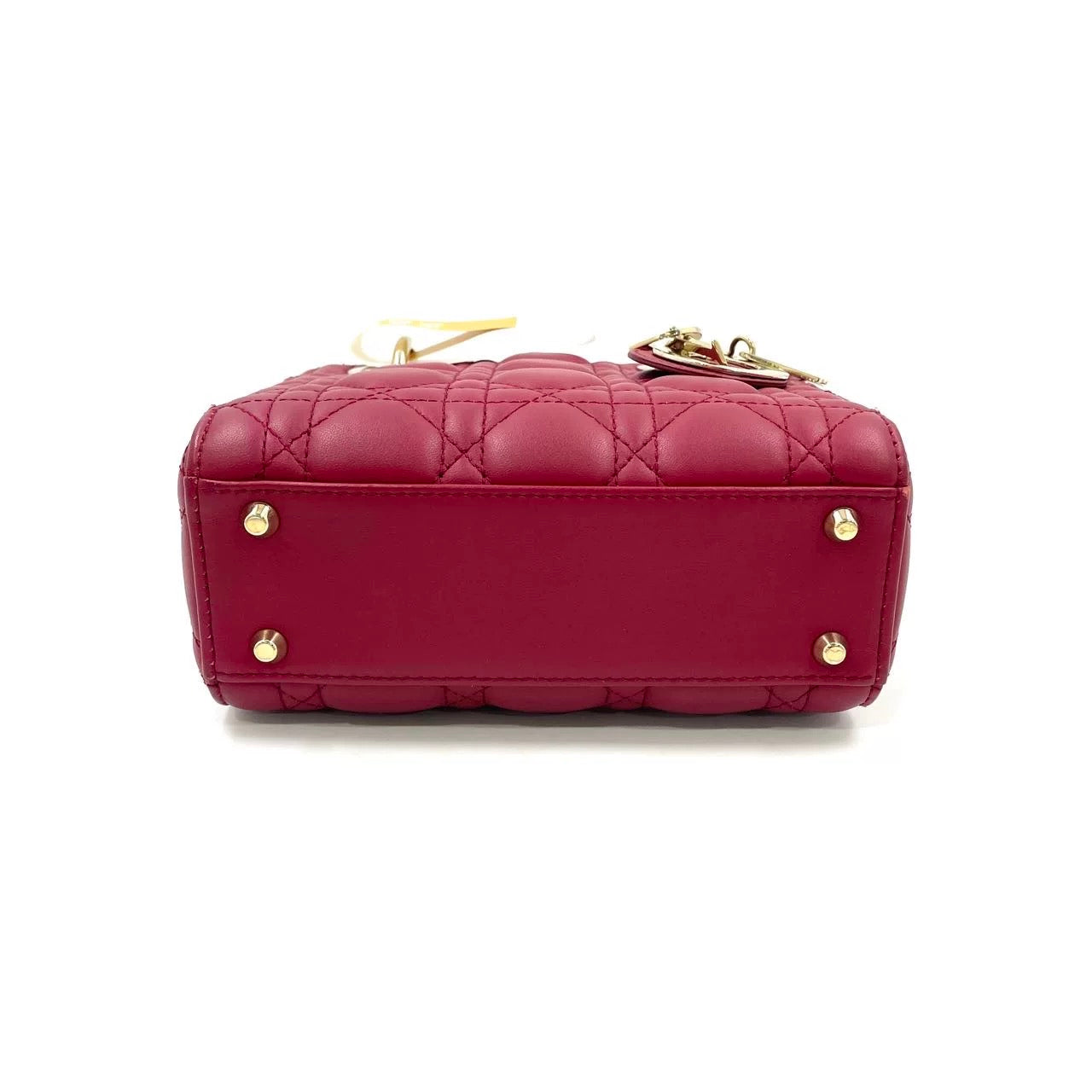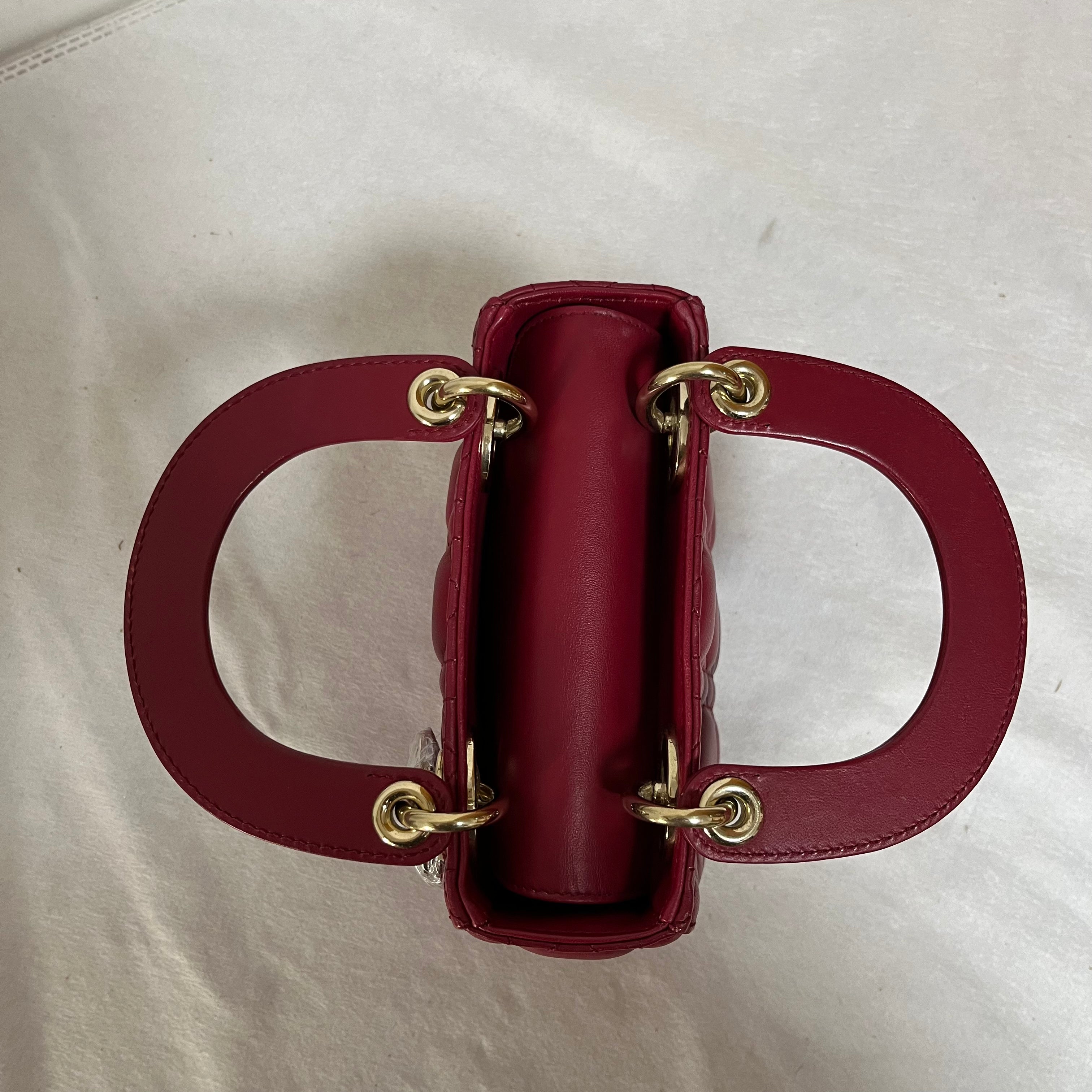 Lady Dior Mini 2020 Dark Red Lambskin Leather Gold HW Chain Strap