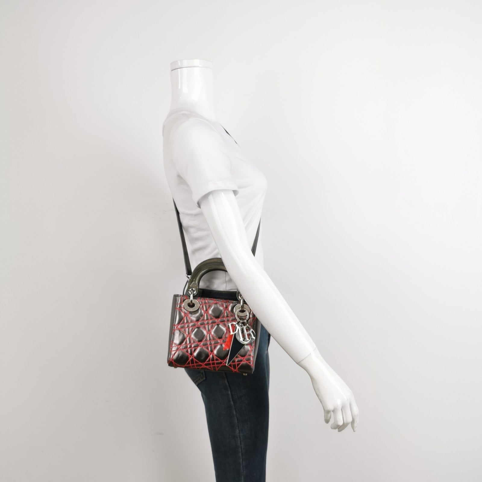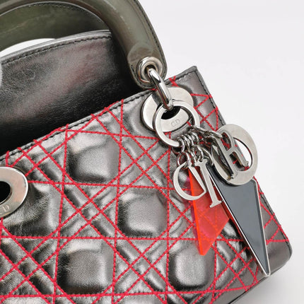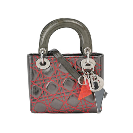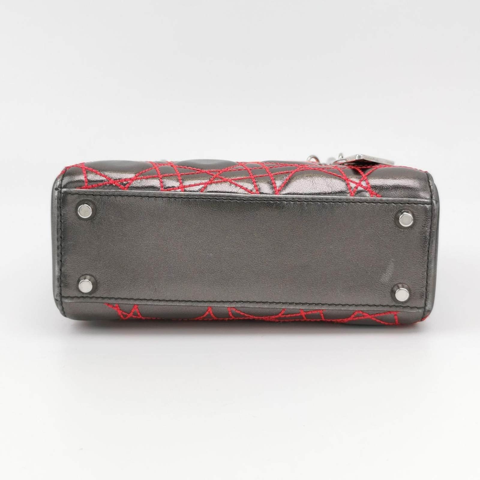 Sold Lady Dior Mini Grey Leather with Red Cannage Stitching 2011 Dior X Anselm Reyle Collection