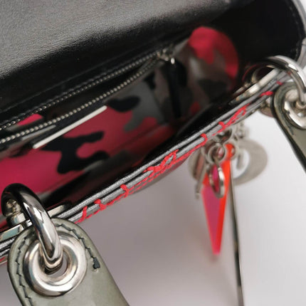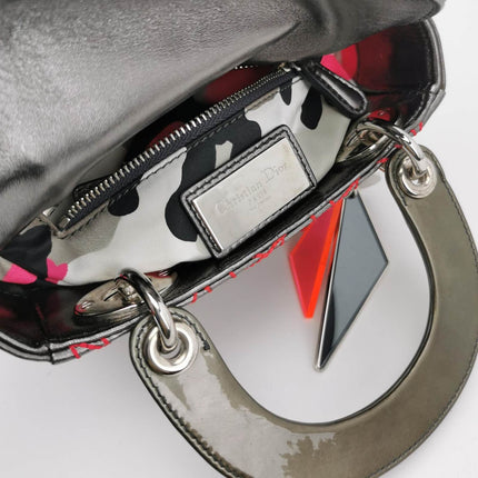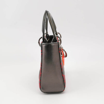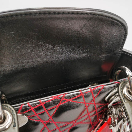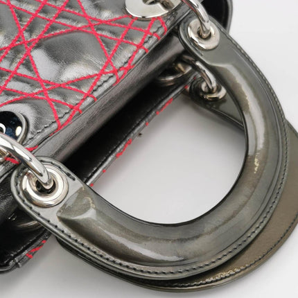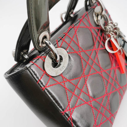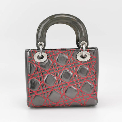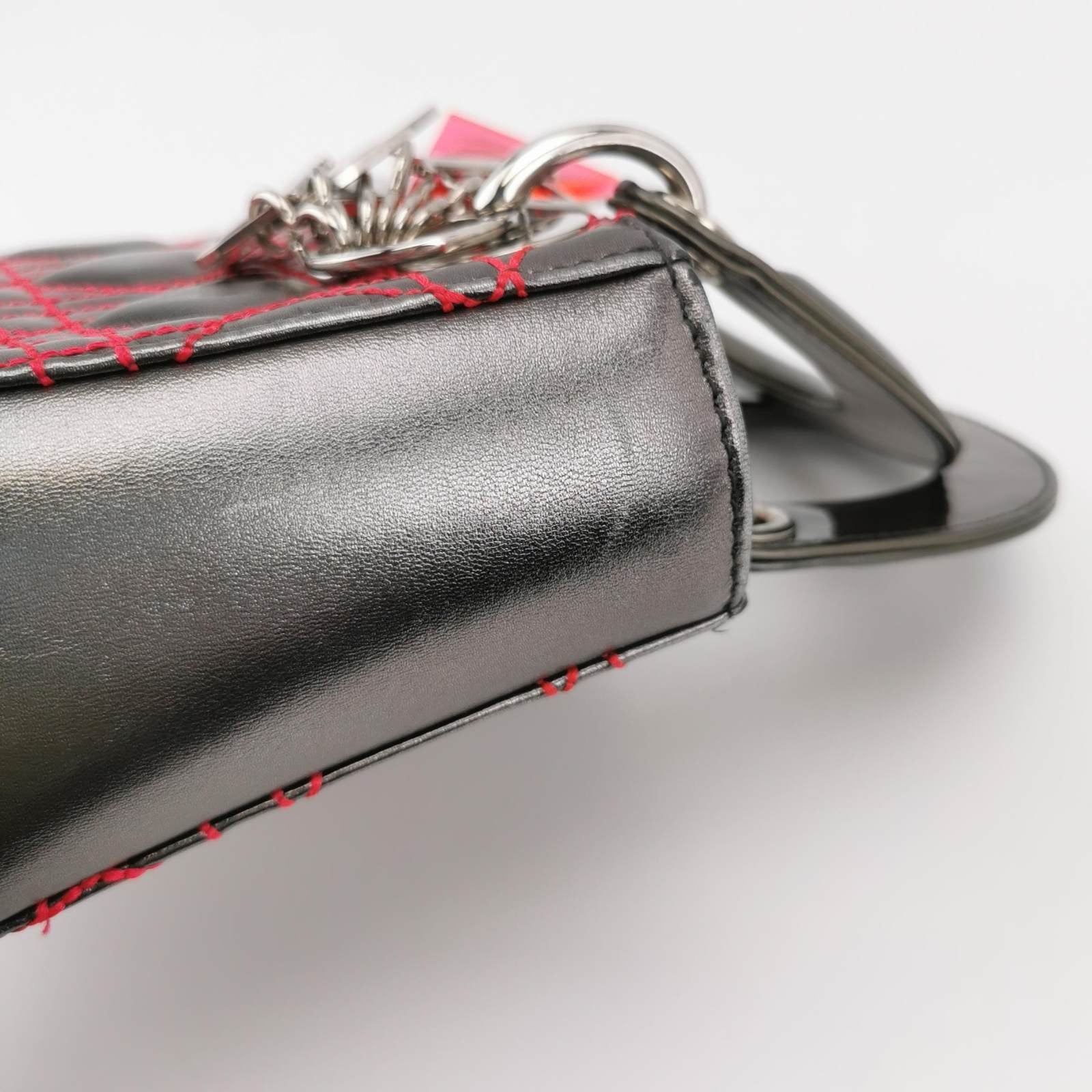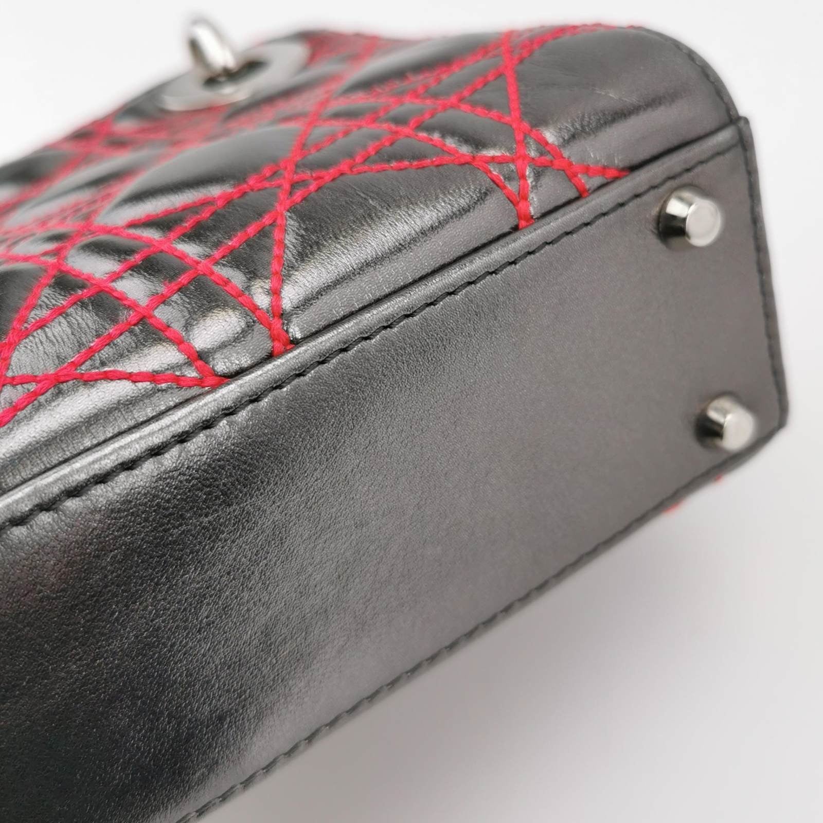 Sold Lady Dior Mini Grey Leather with Red Cannage Stitching 2011 Dior X Anselm Reyle Collection