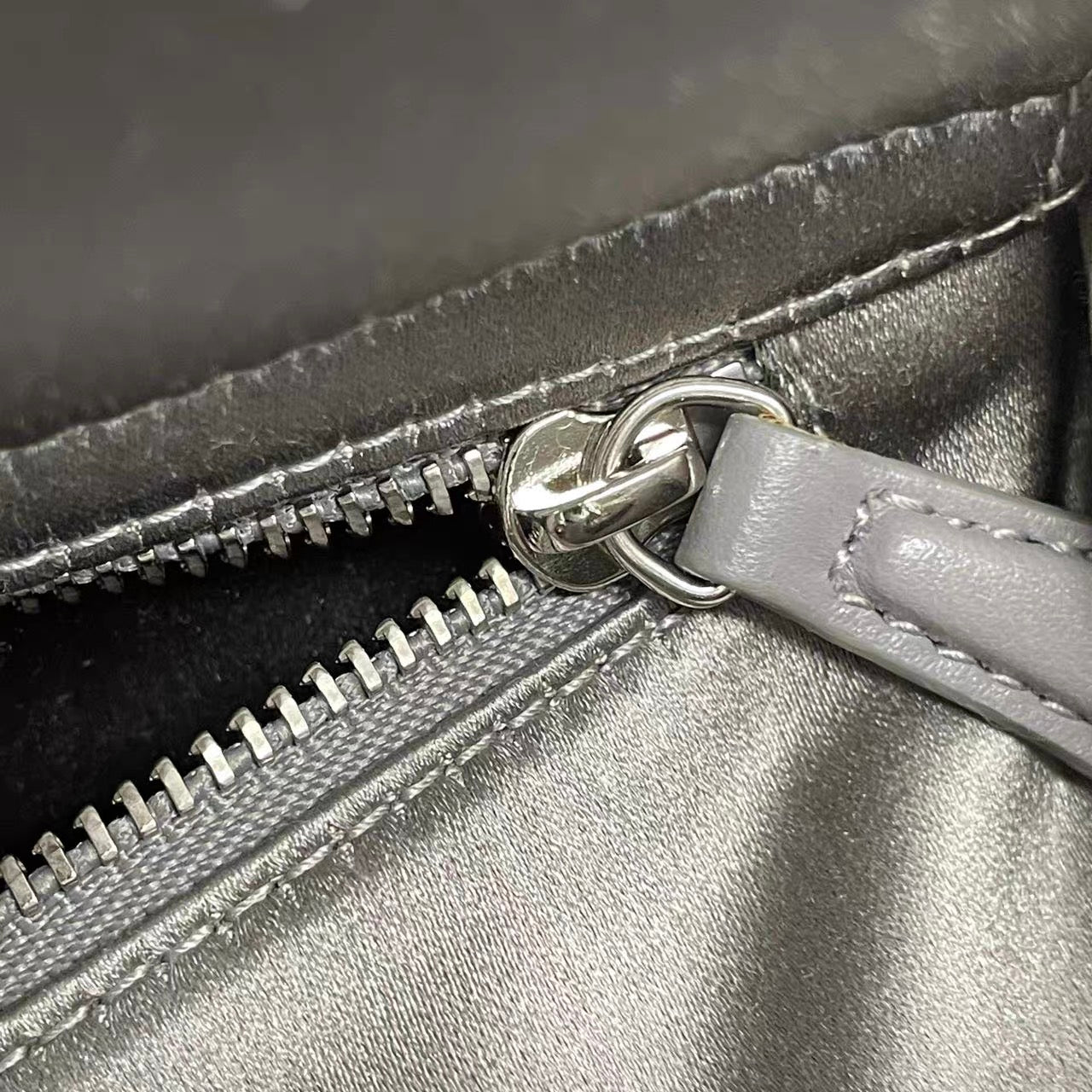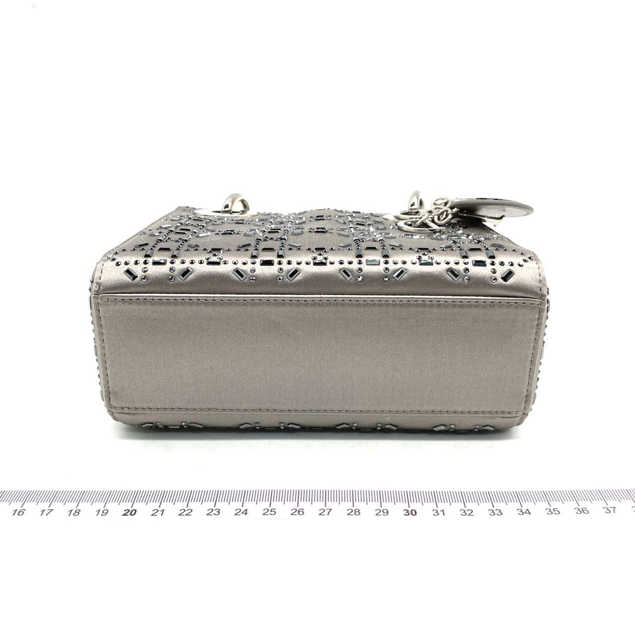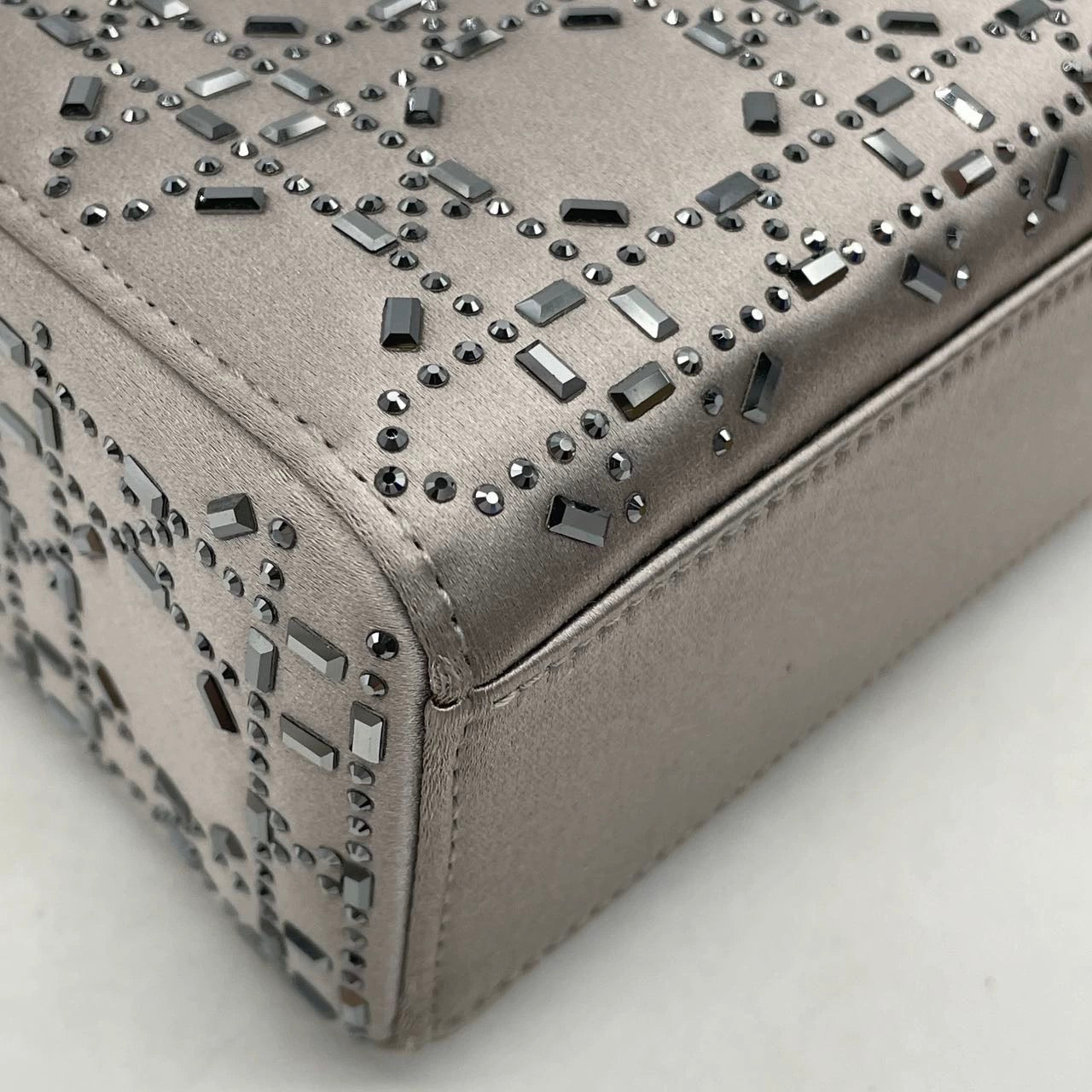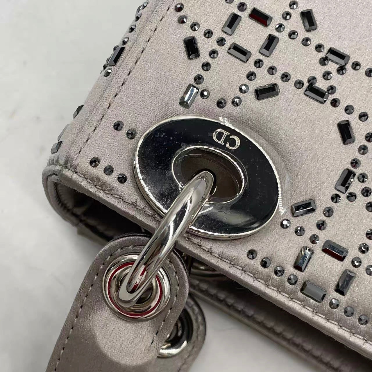 Lady Dior Mini Grey Silk with Crystals Silver Hardware