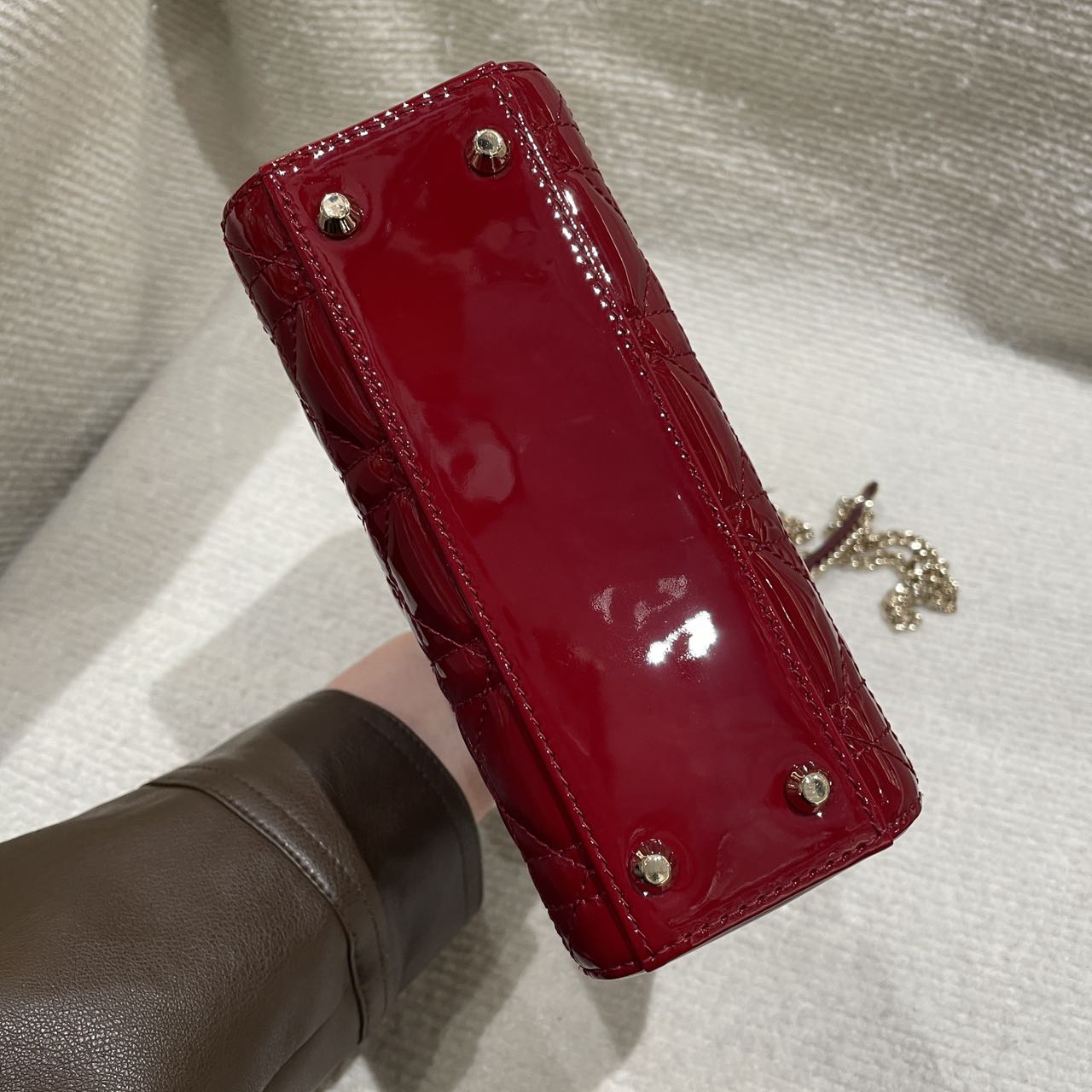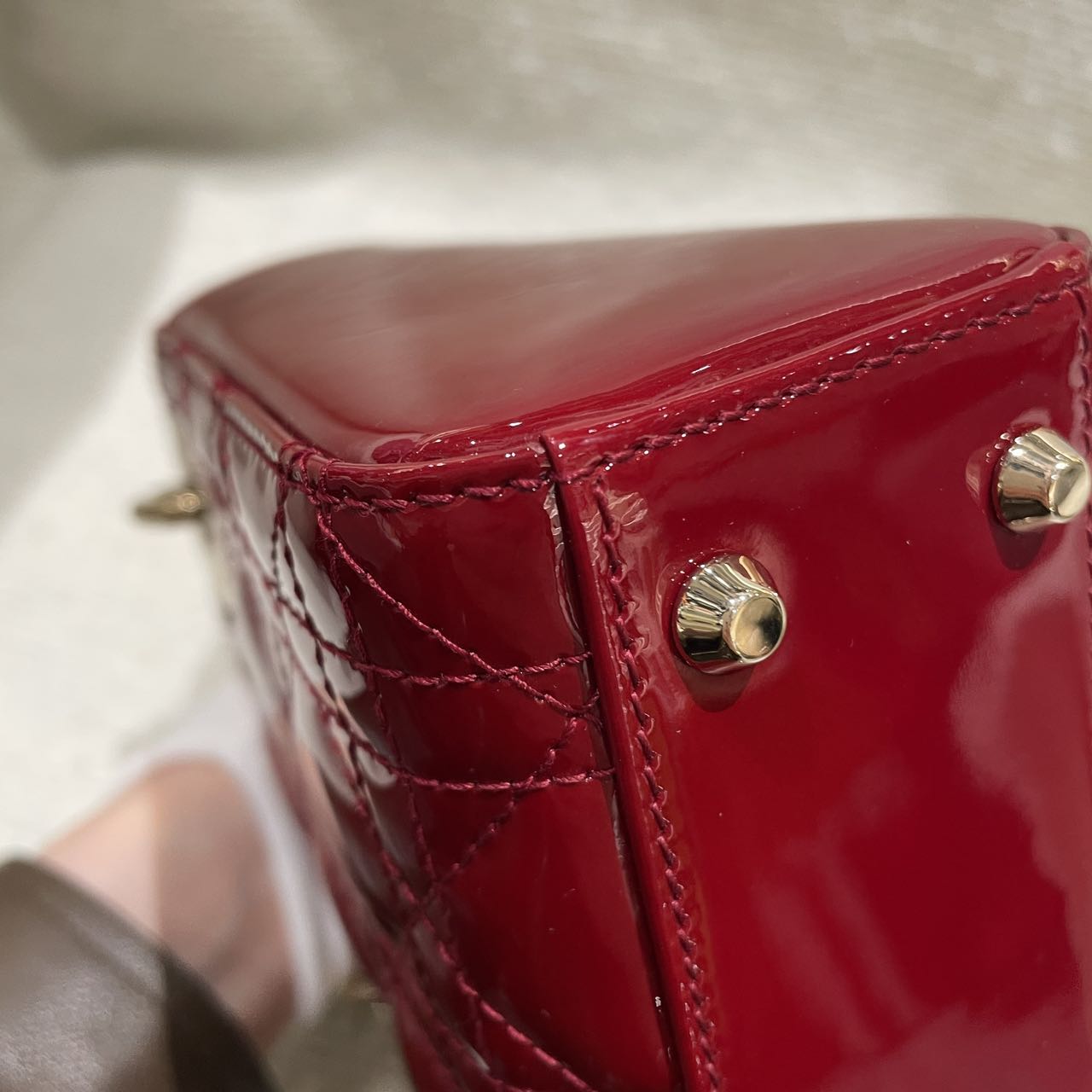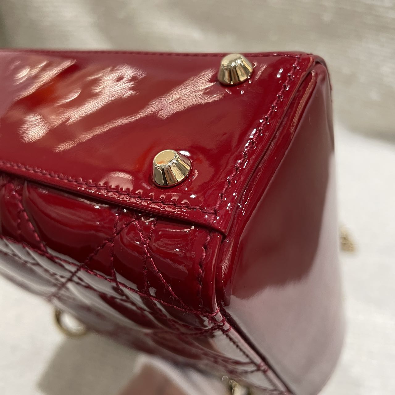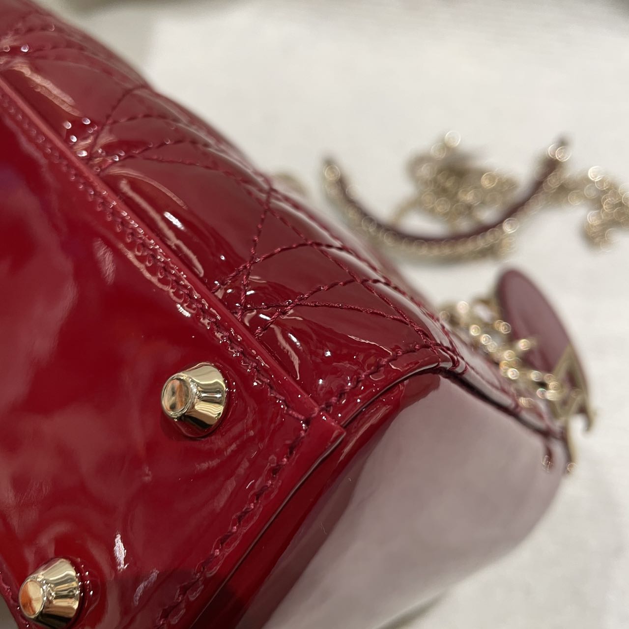 Lady Dior Mini Handbag 2019 Burgundy Red Patent Leather Gold-tone Chain Strap