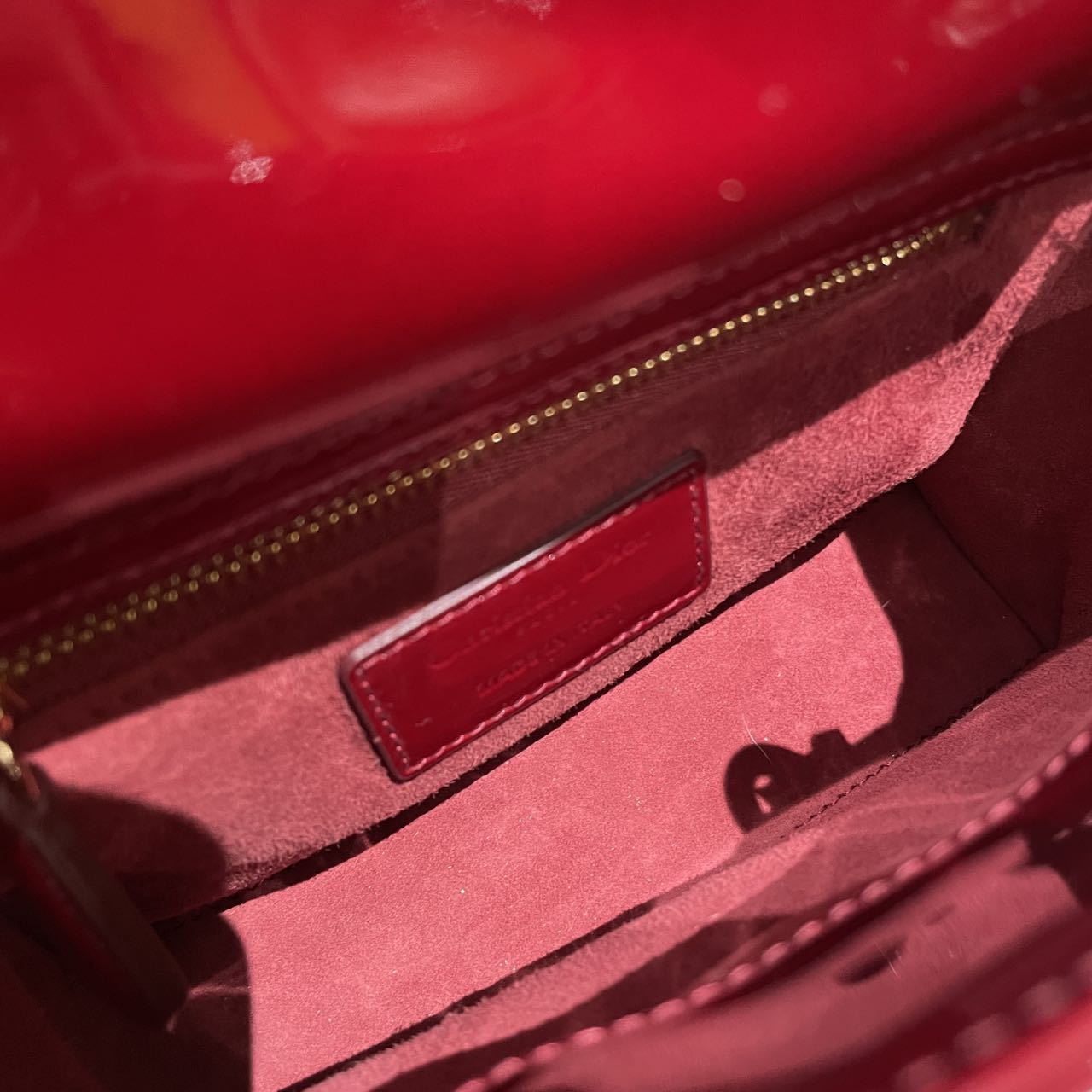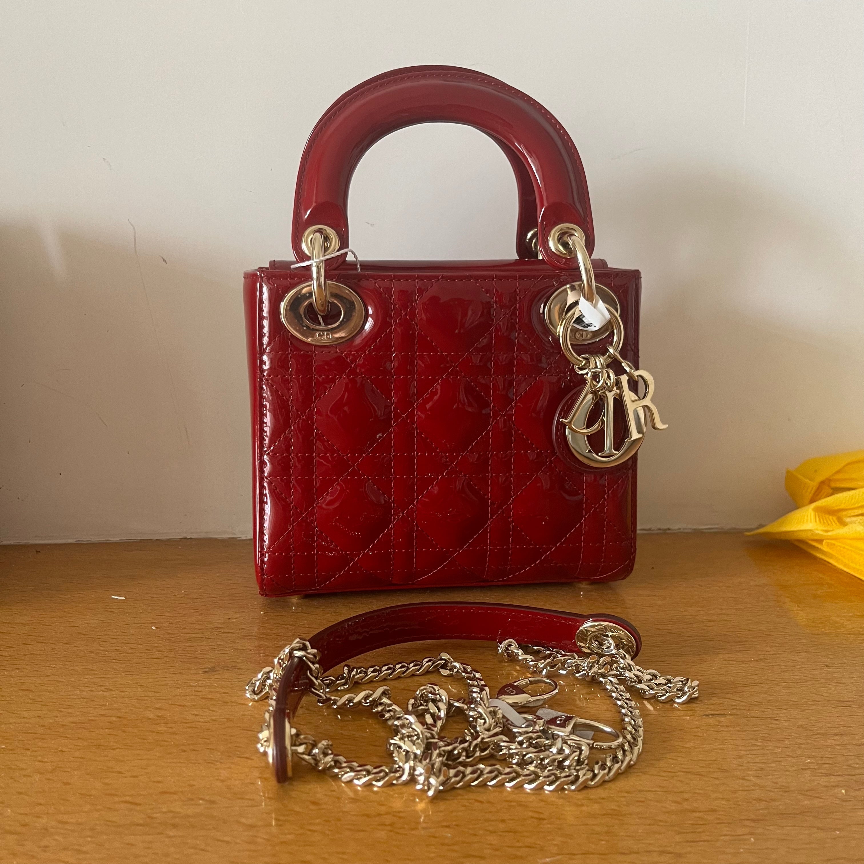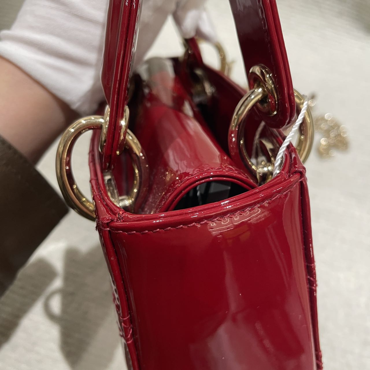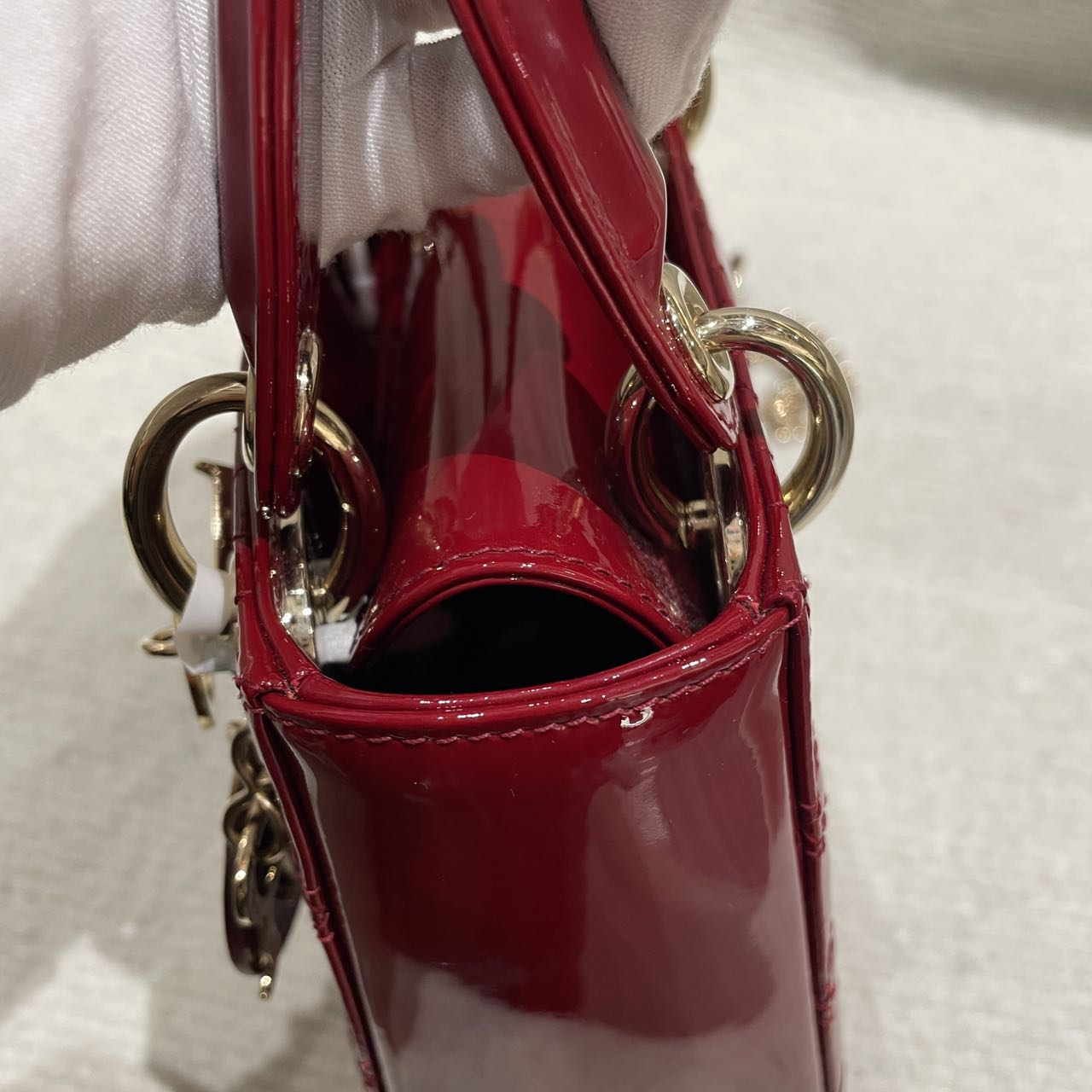 Lady Dior Mini Handbag 2019 Burgundy Red Patent Leather Gold-tone Chain Strap
