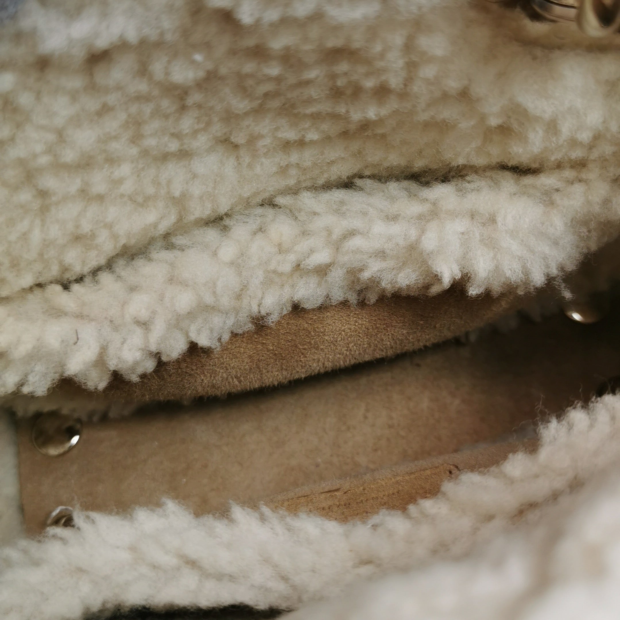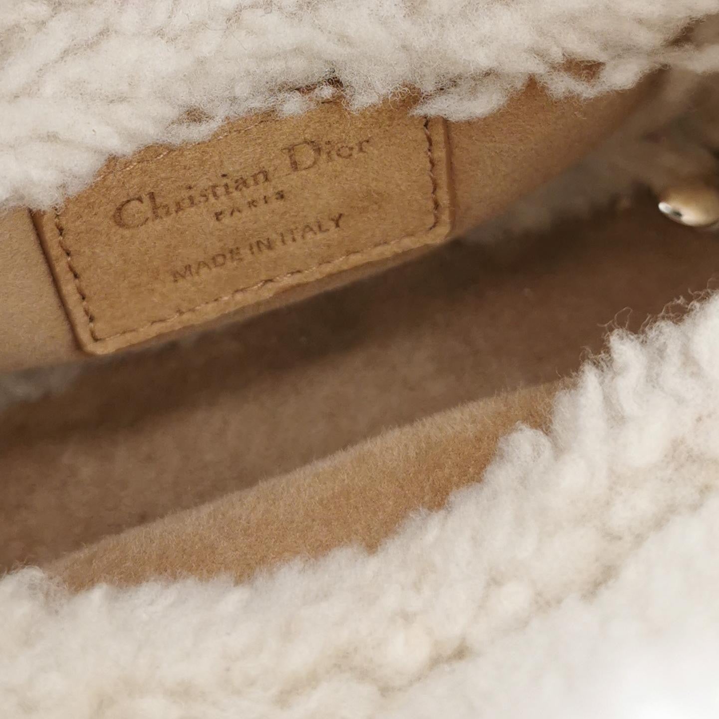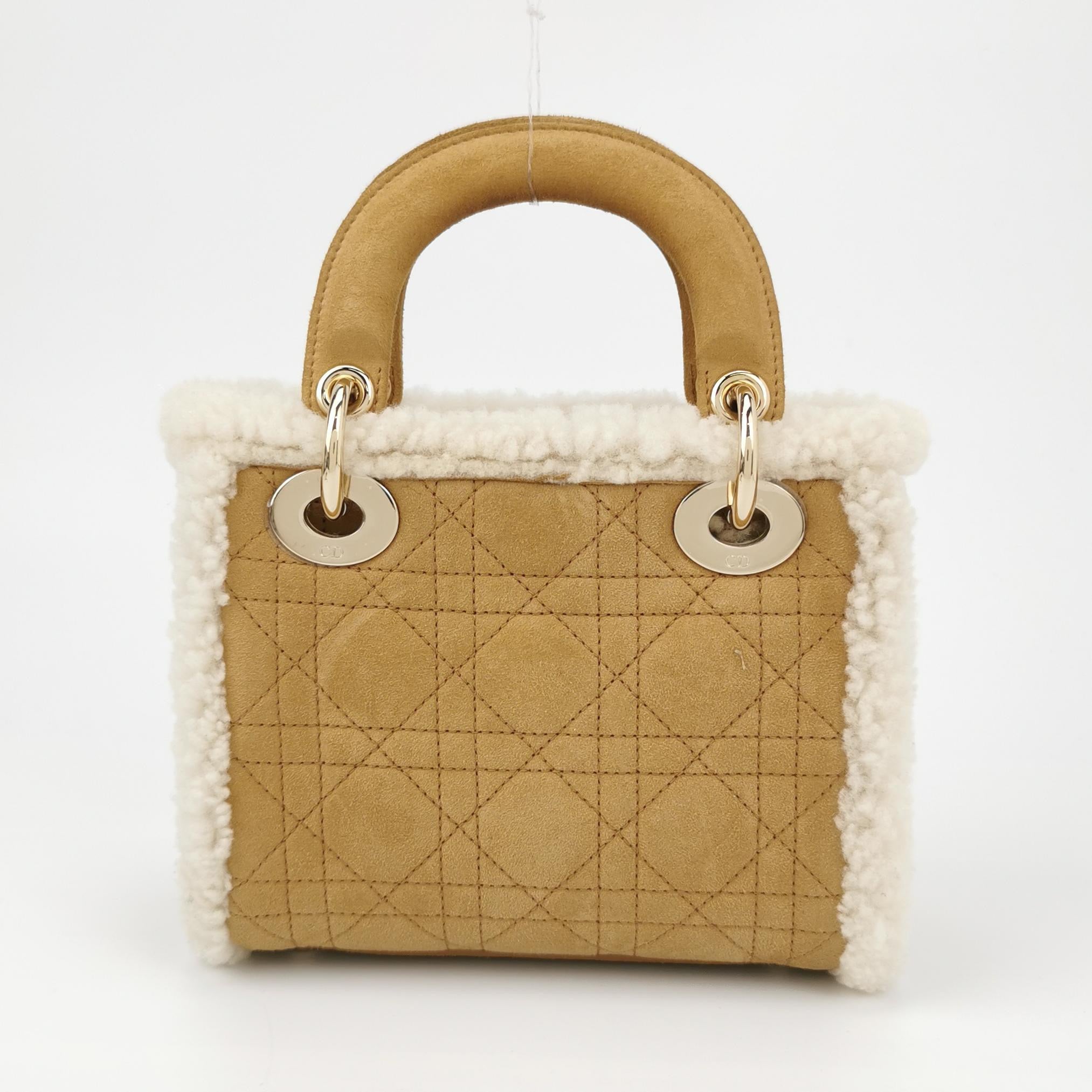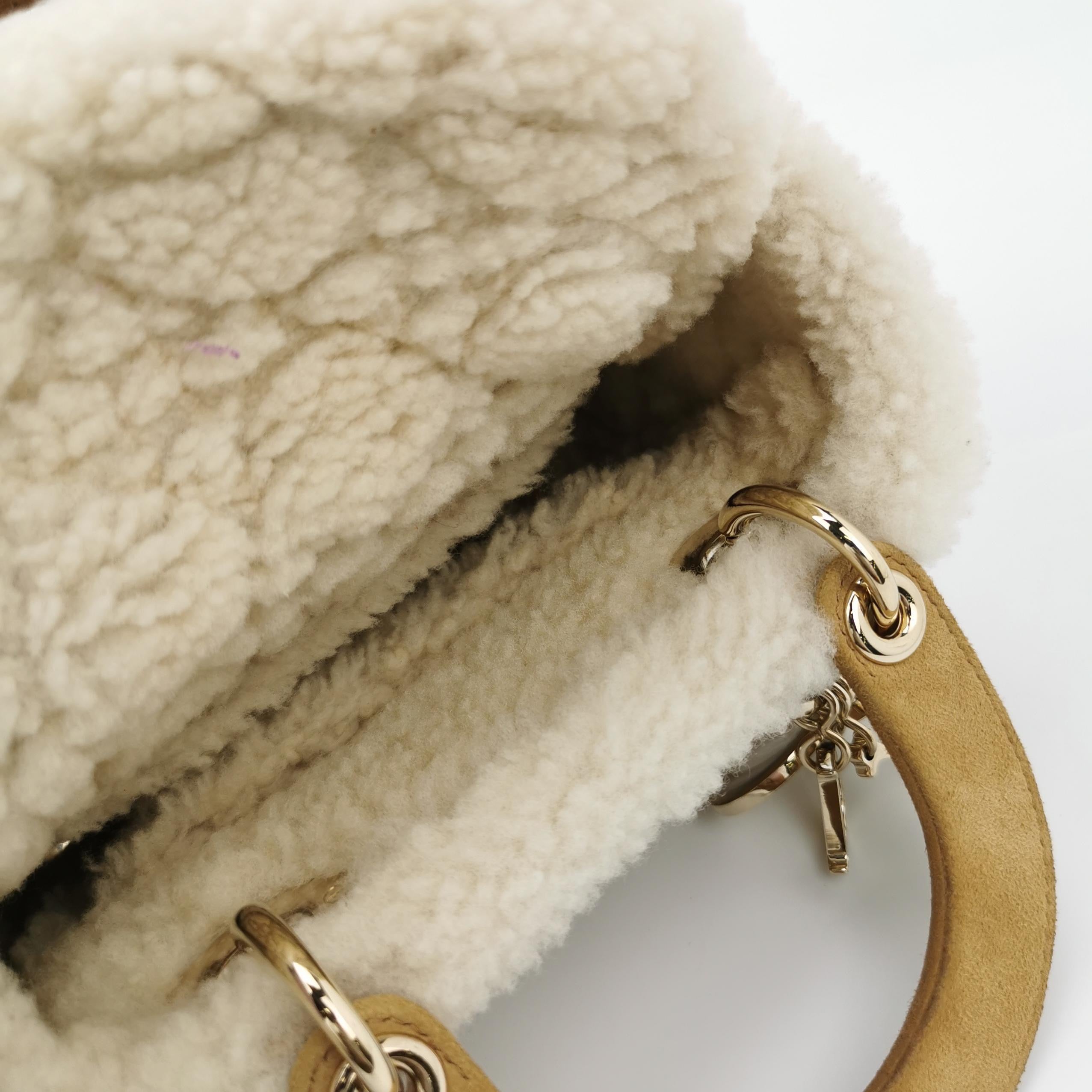 Lady Dior Mini Handbag Brown Leather Shearling Gold Hardware