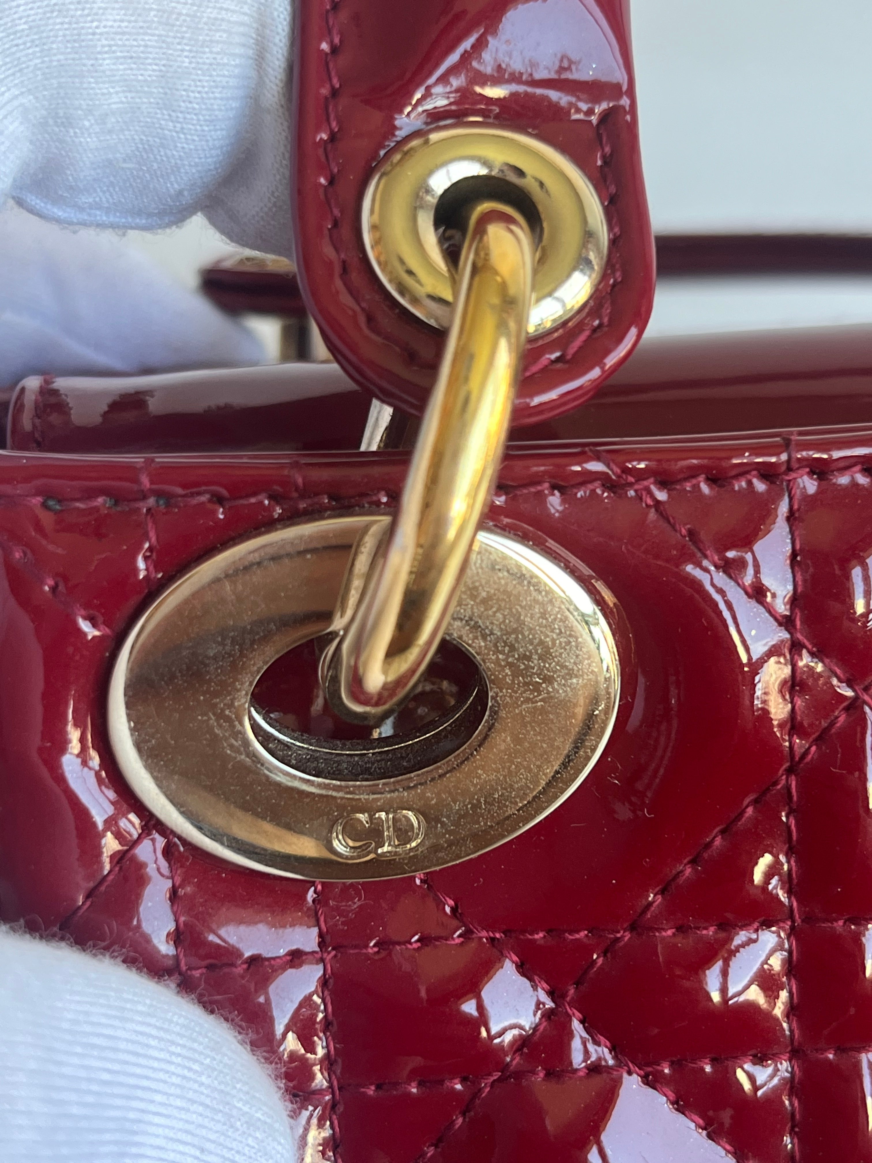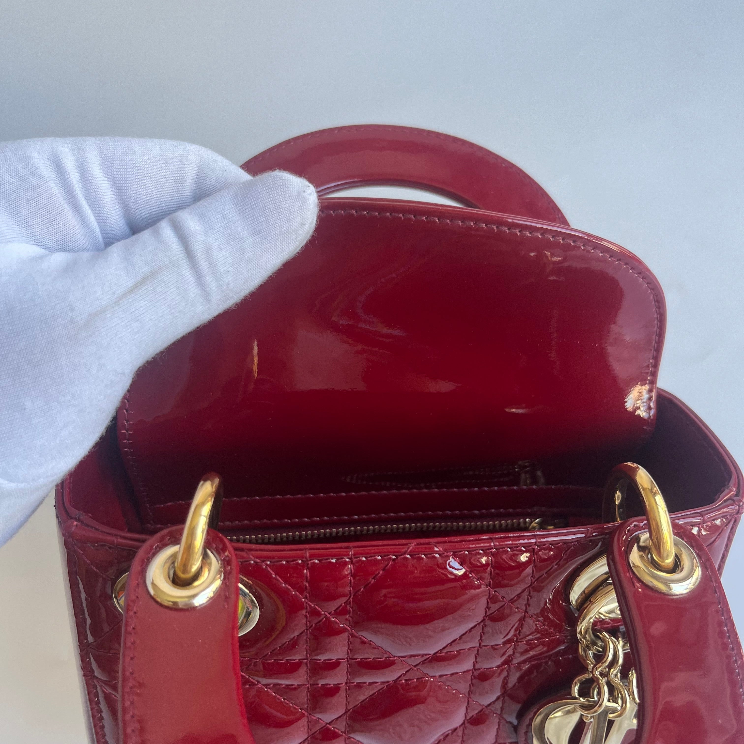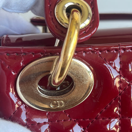 Lady Dior Mini Handbag Burgundy Red Patent Leather Gold-tone Chain Strap 2016
