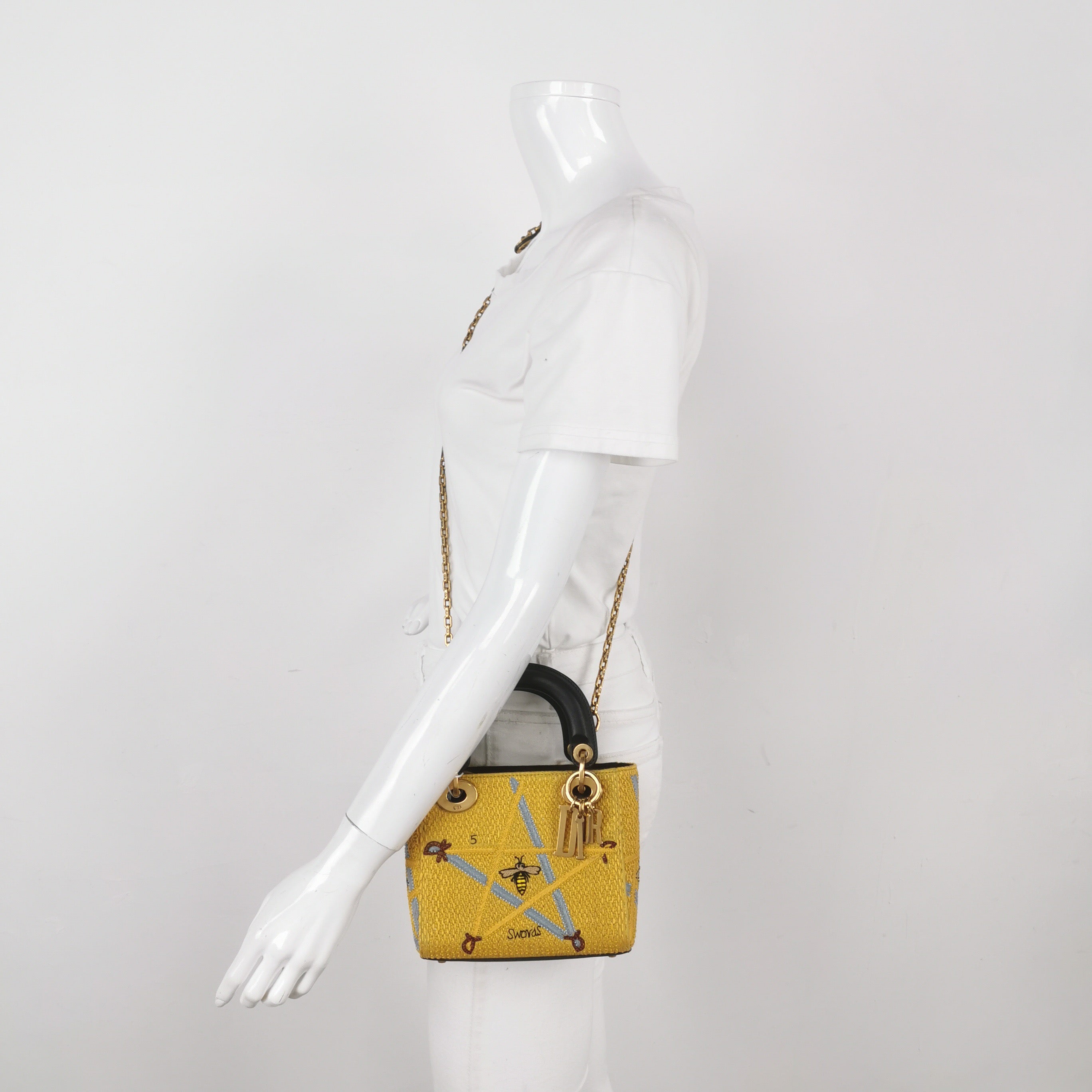 Lady Dior Mini Limited Edition Yellow Star and Bee Beaded Handbag 2017