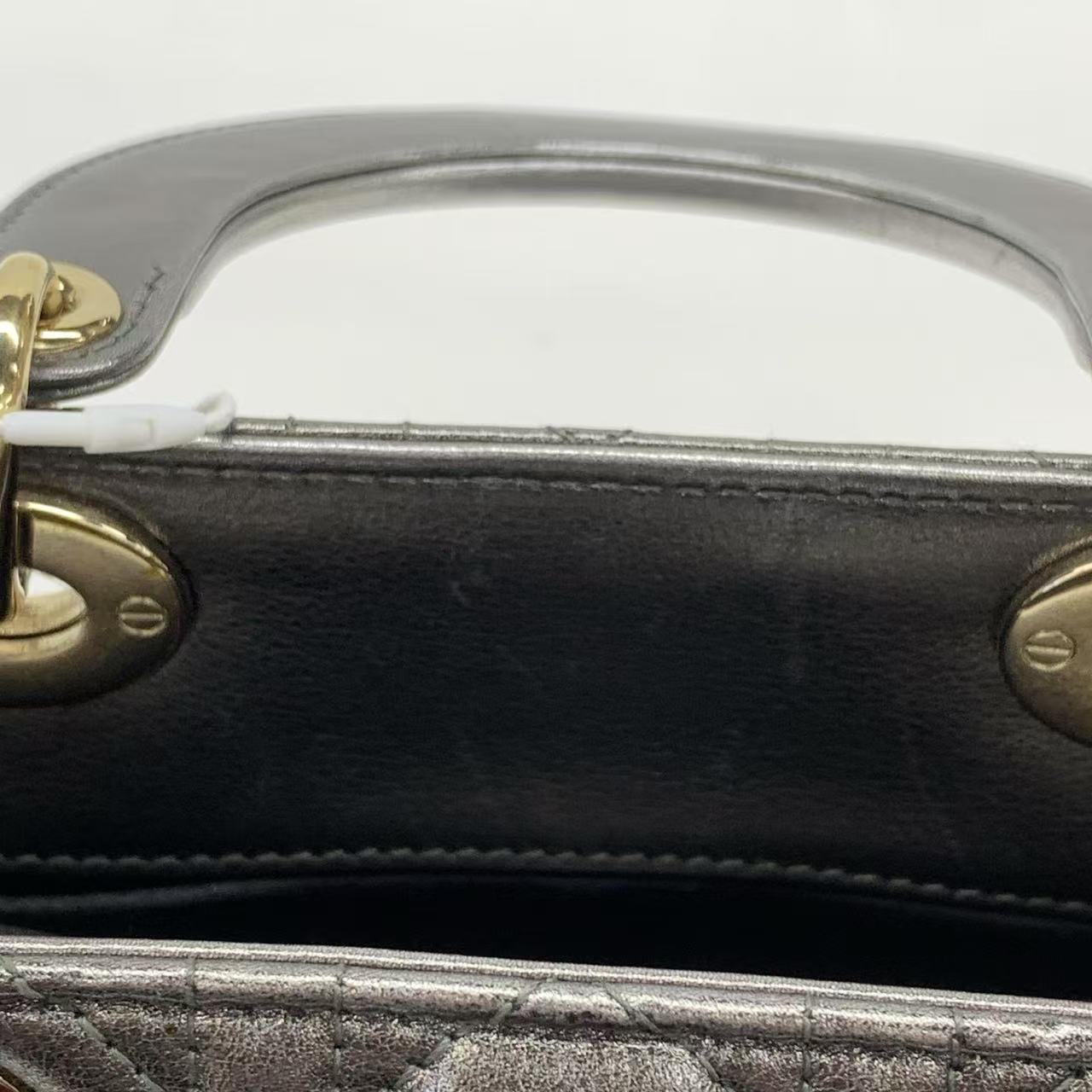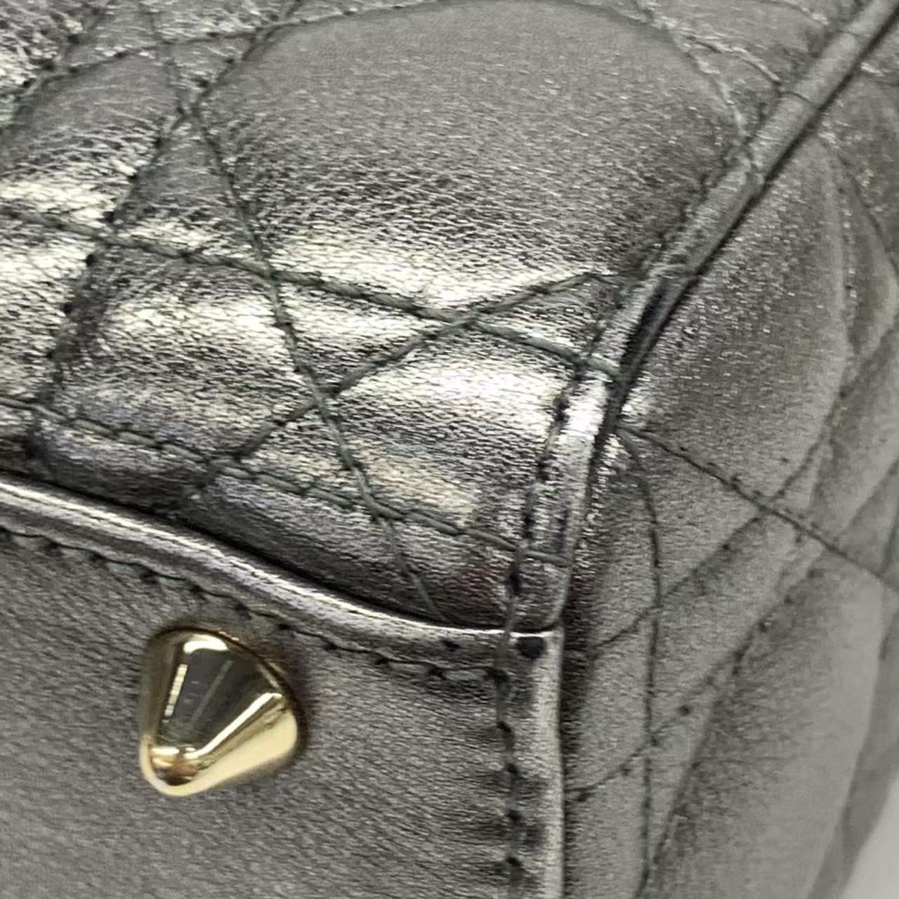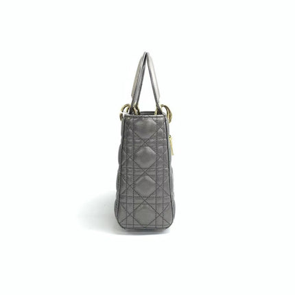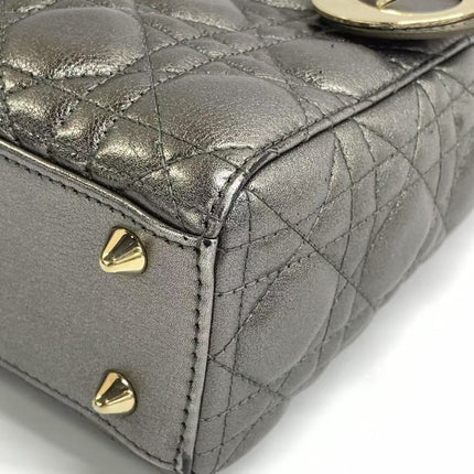 Lady Dior Small ABCdior Metallic Grey Cannage Lambskin Handbag with Strap 2019