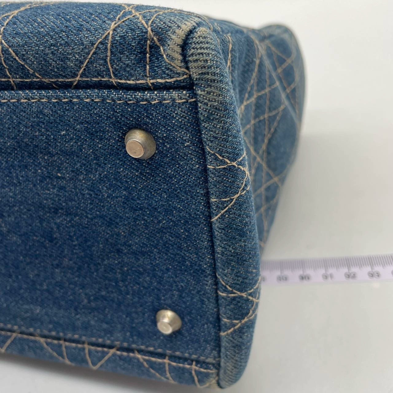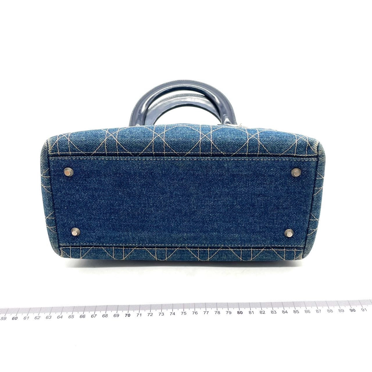 Lady Dior Vintage Medium Navy Blue Jeans Silver Hardware