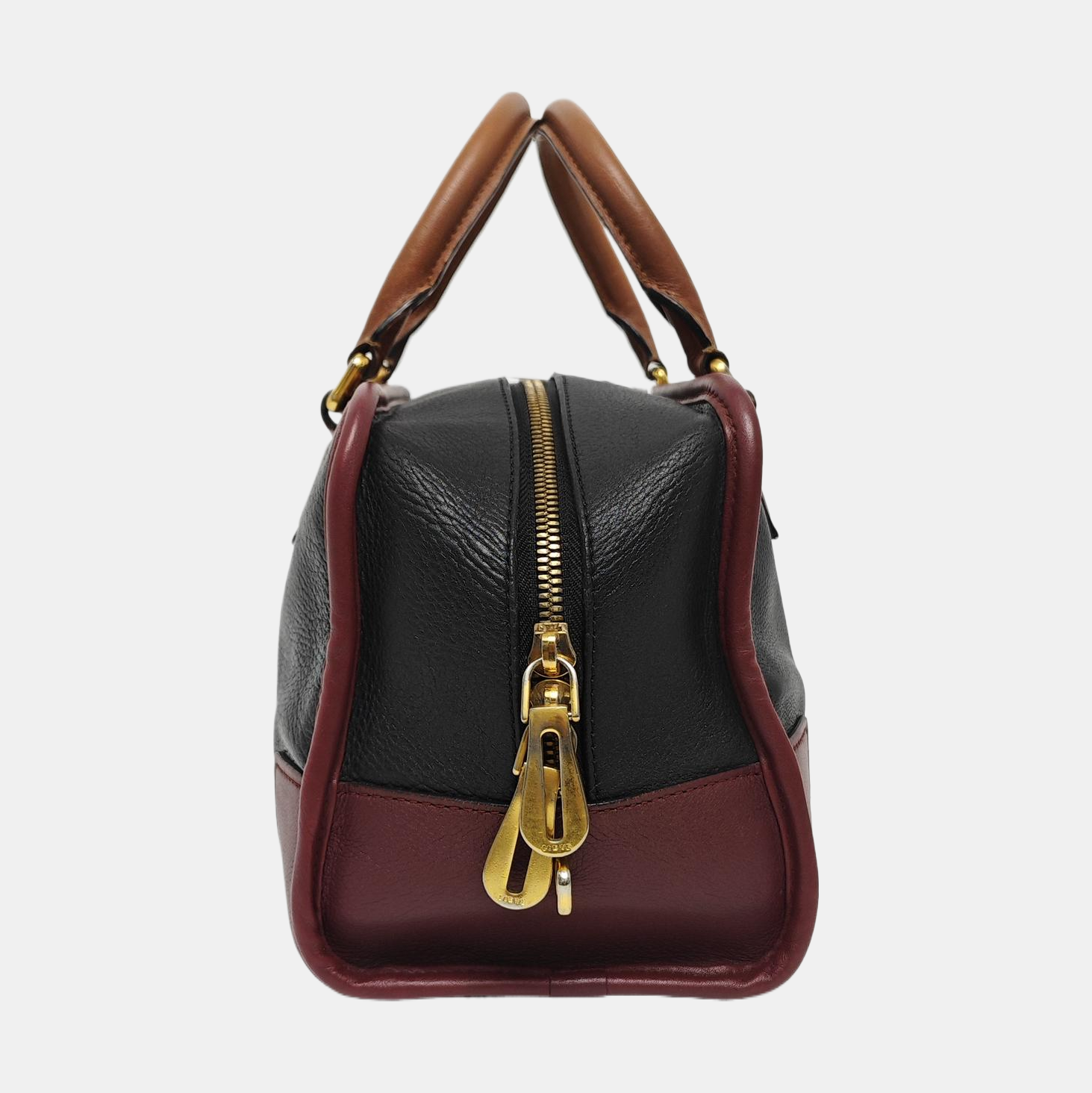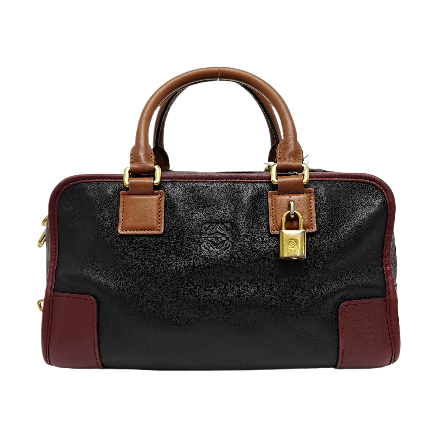 Loewe Amazona 29 Tricolor Black Burgundy Brown Leather Top Handle Bag