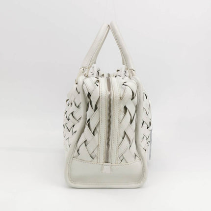 Sold Loewe Amazona 36 in White Intrecciato Woven Calfskin Leather Handbag