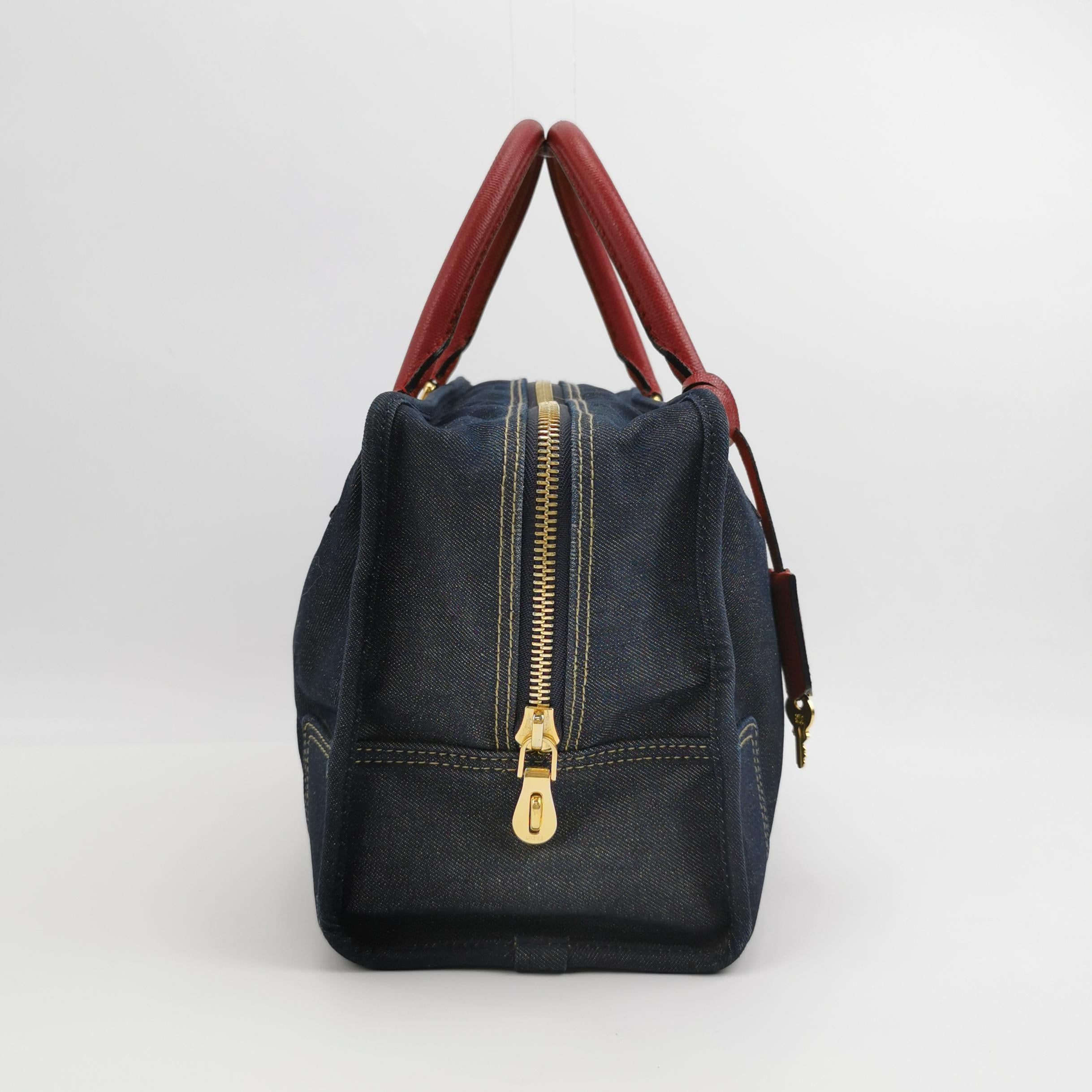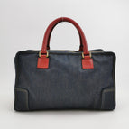 Loewe Amazona 36 Large Navy Denim and Red Lizard Handles