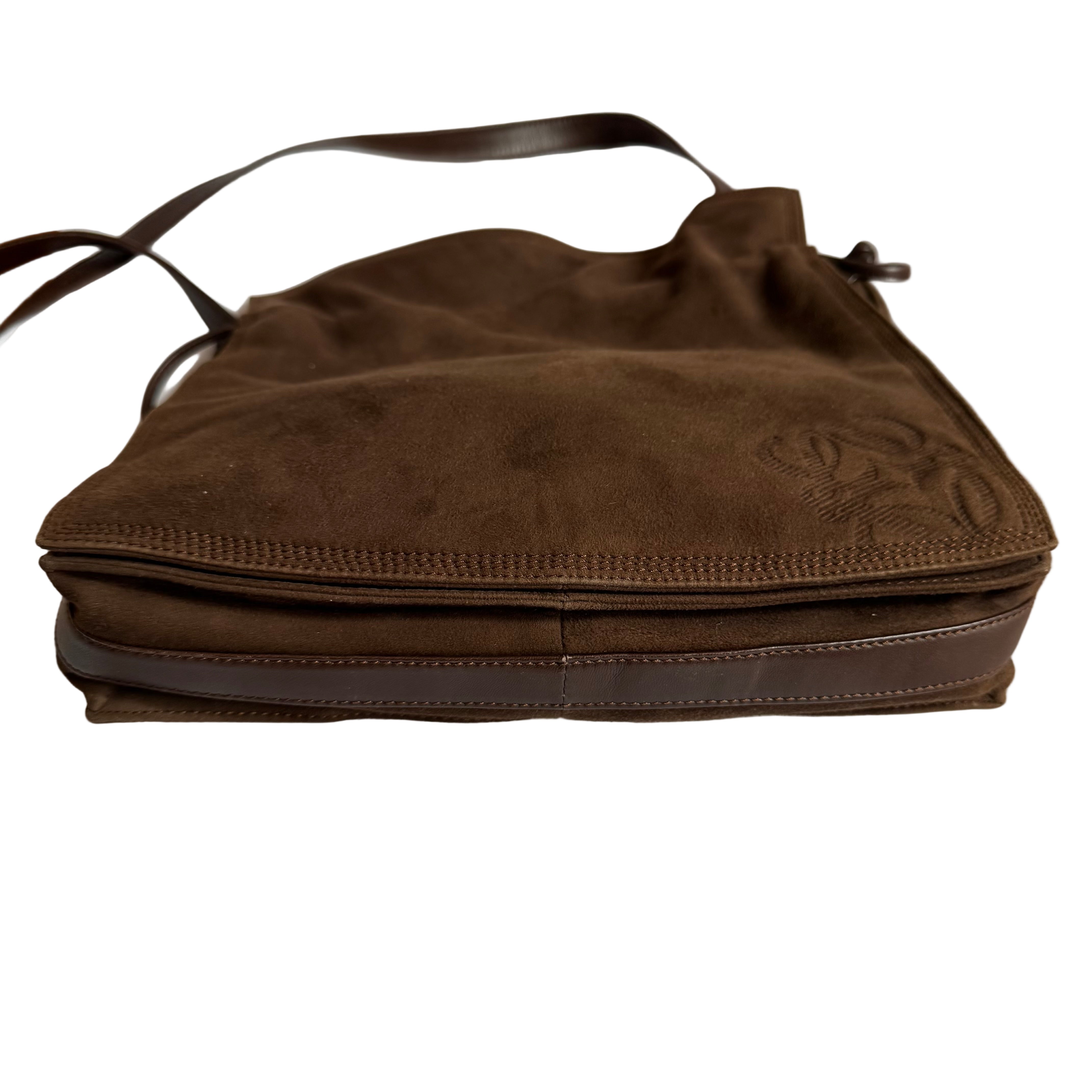 Loewe Flamenco Medium Brown Suede Leather Shoulder Bag 28cm