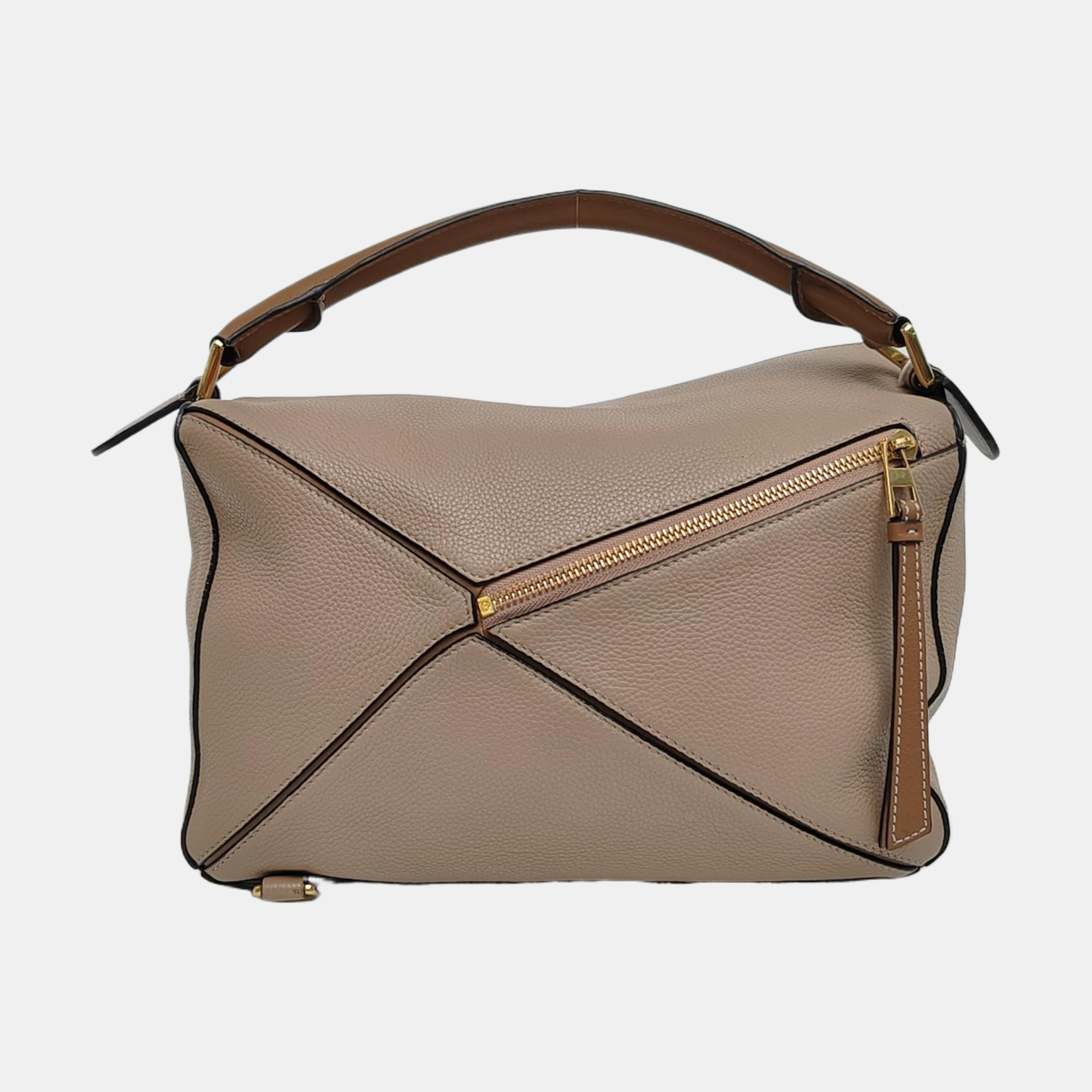Loewe Puzzle Medium Sand Beige Calfskin Leather Bag Brown Strap