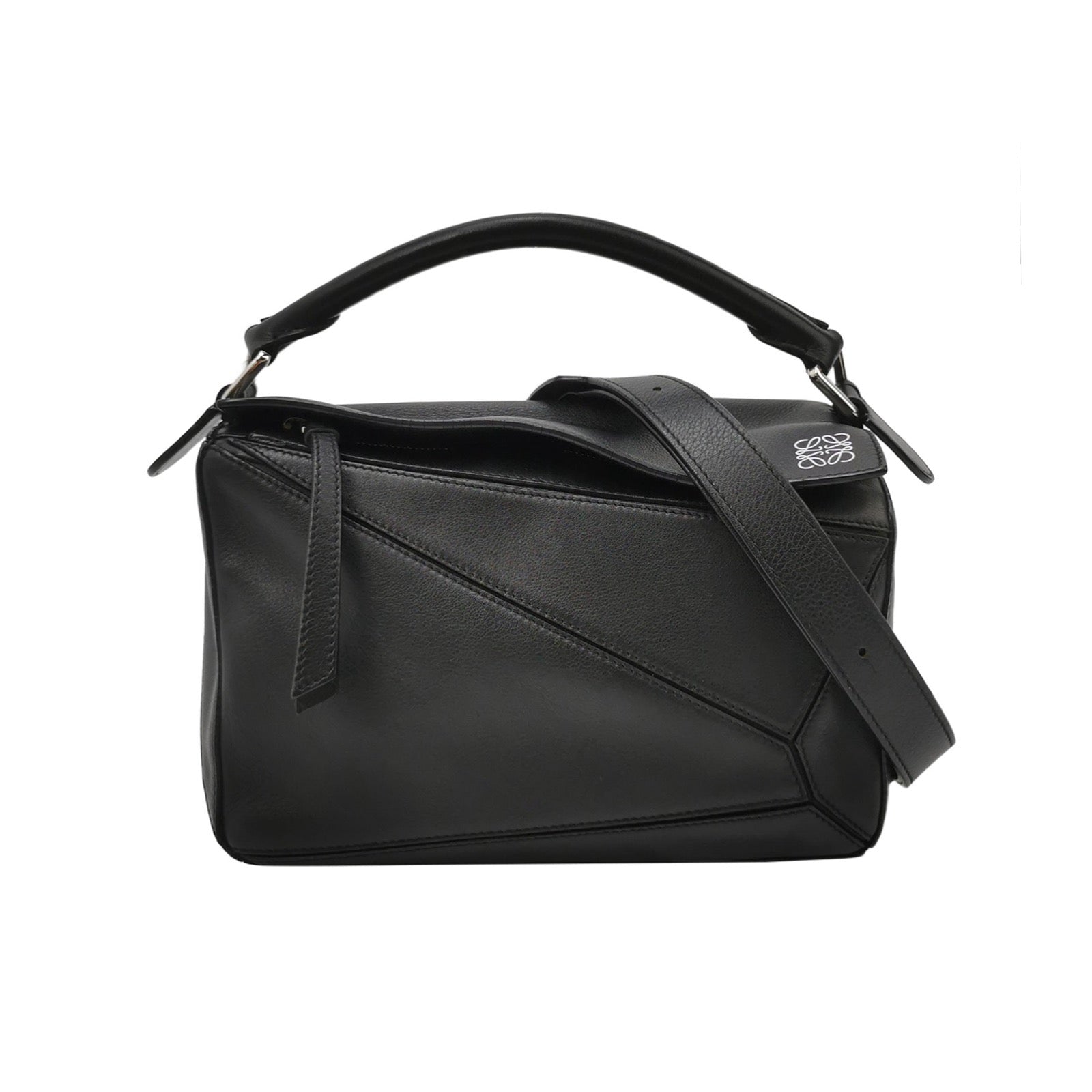 Loewe Puzzle Small Black Smooth Leather White Logo With Metal Feet 2016