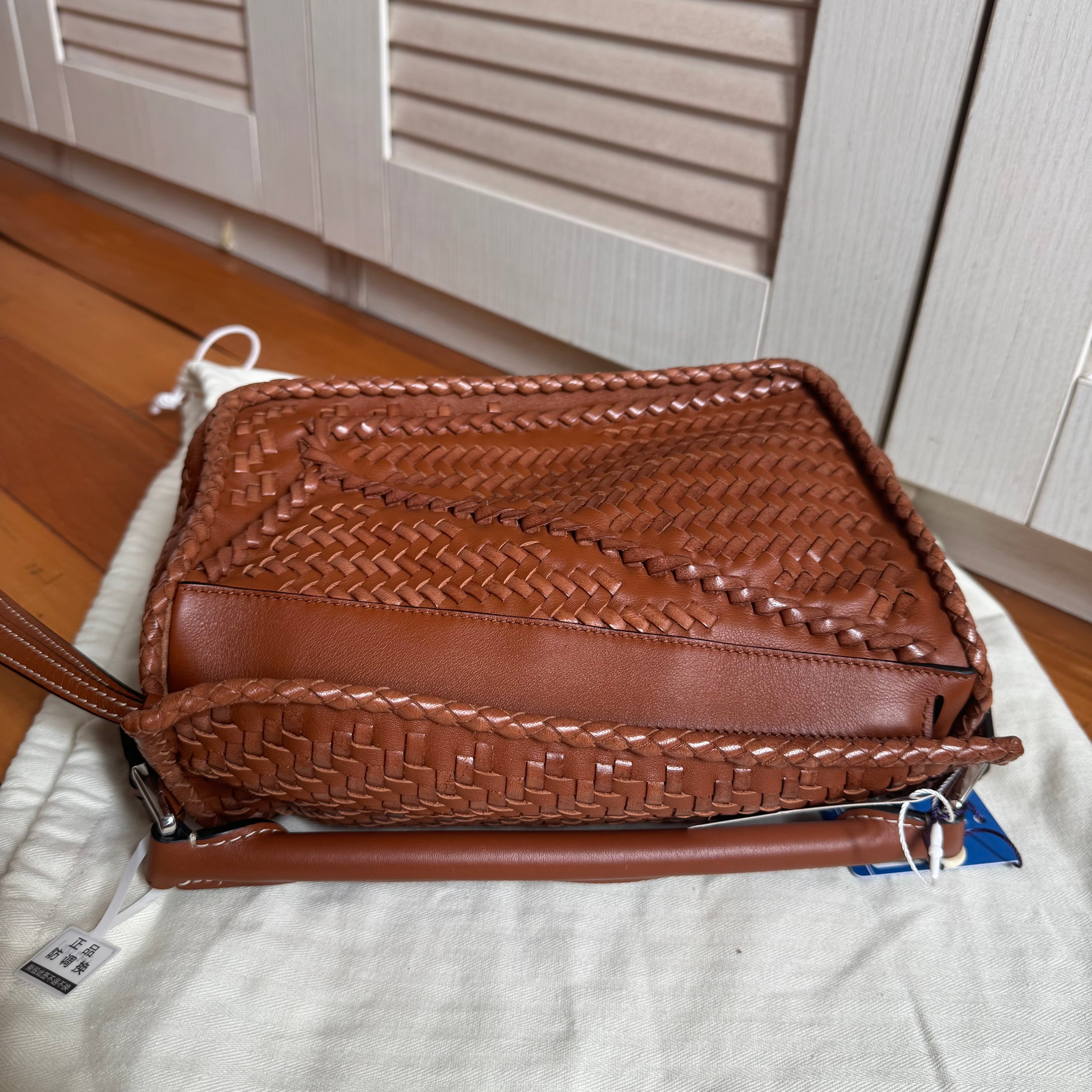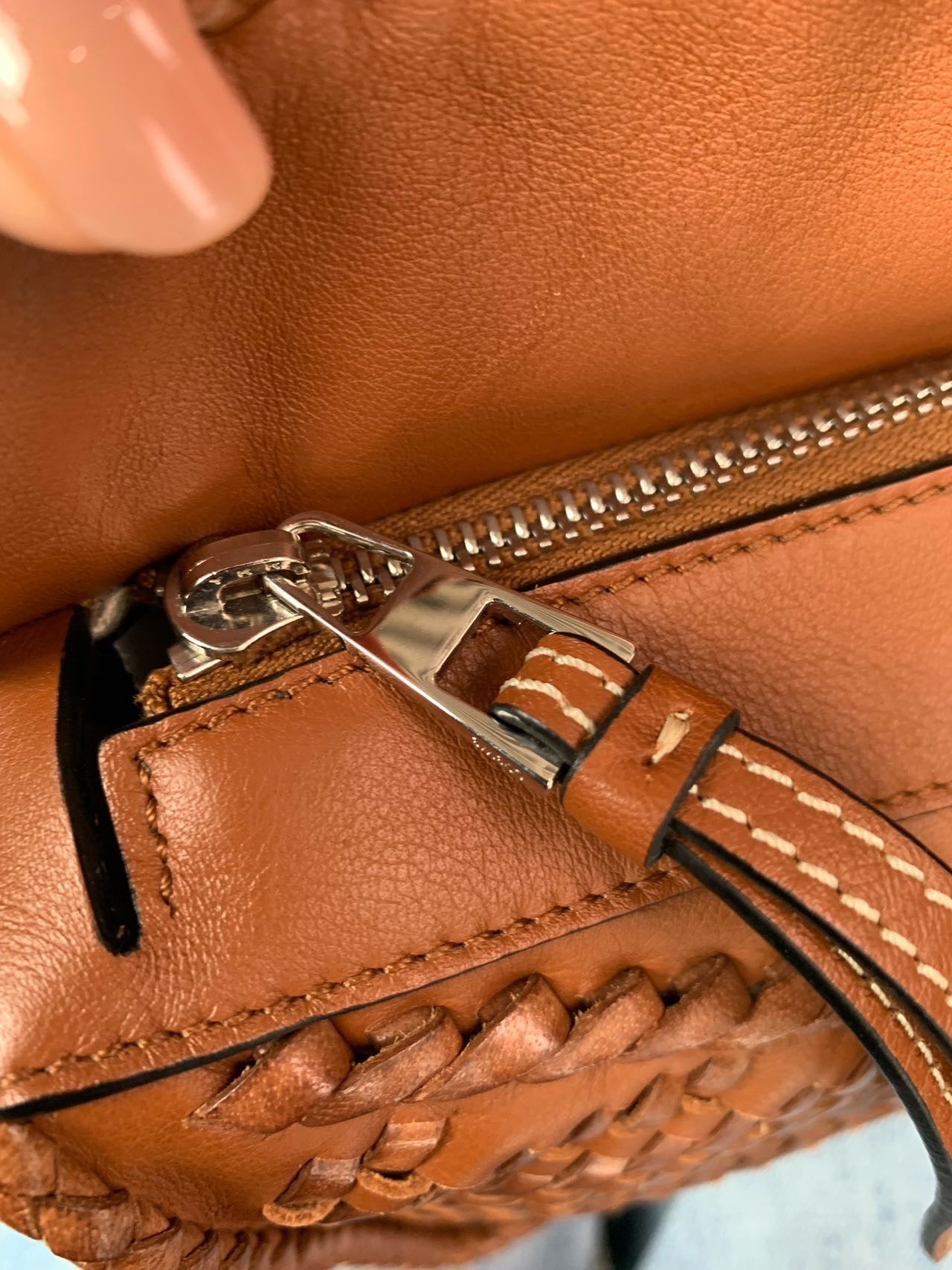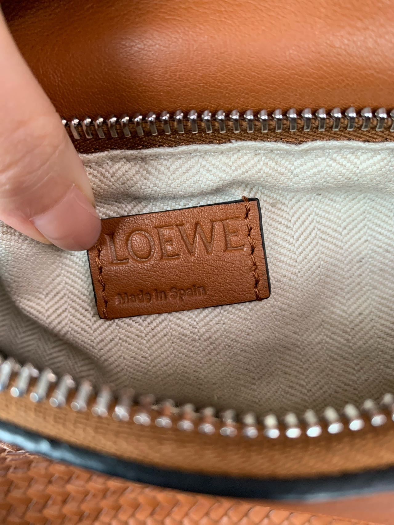 Loewe Puzzle Small Leather Woven Braided Tan Brown Crossbody Bag