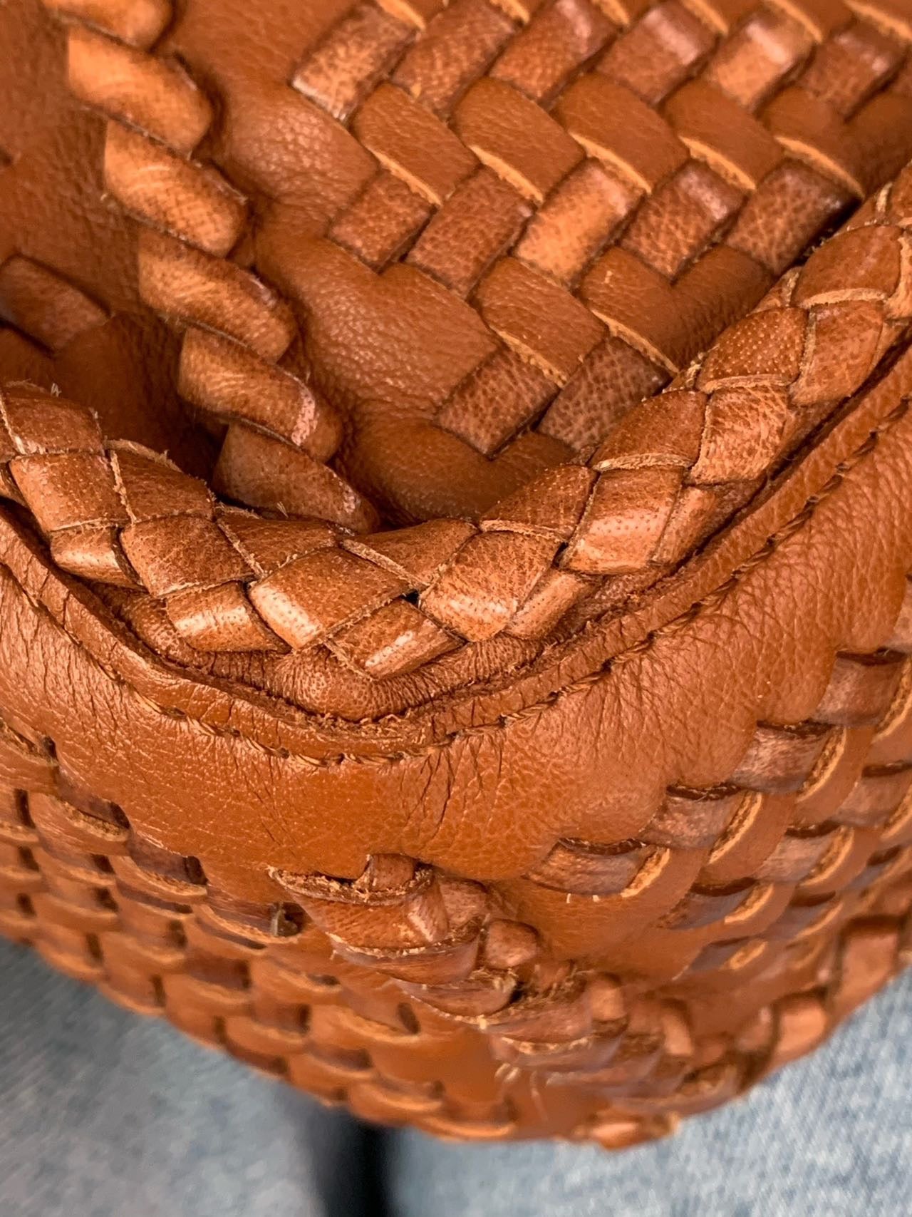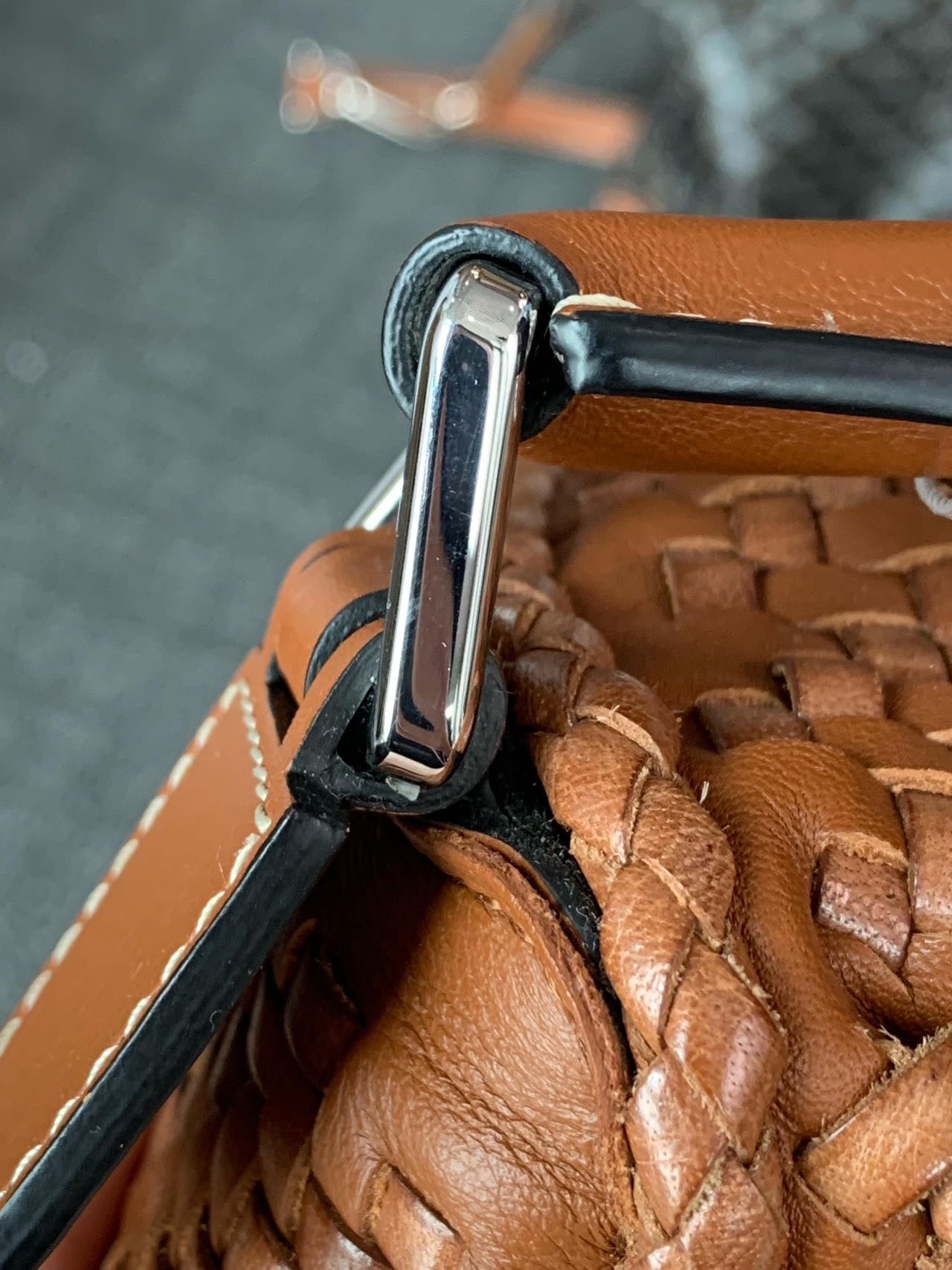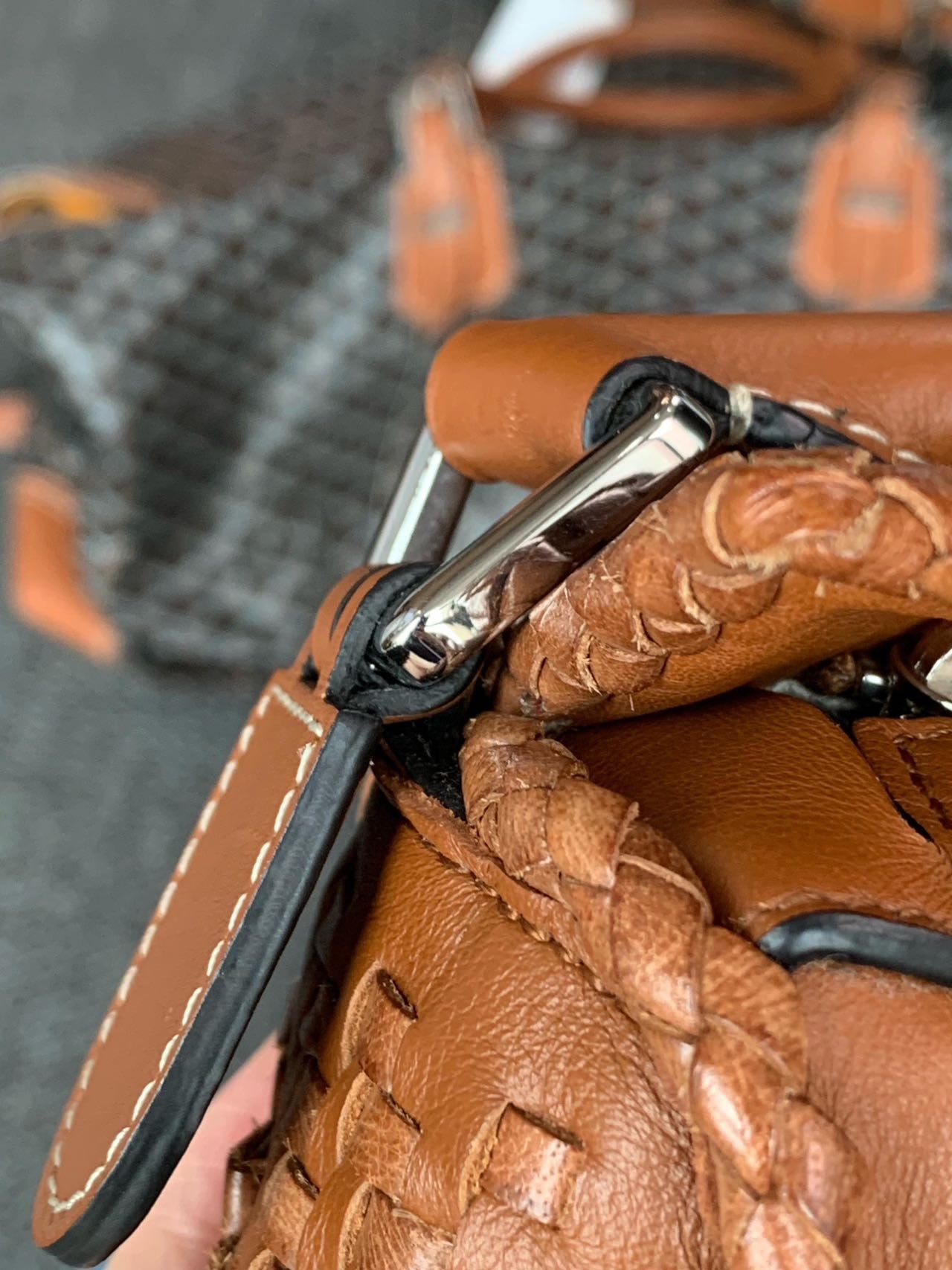 Loewe Puzzle Small Leather Woven Braided Tan Brown Crossbody Bag