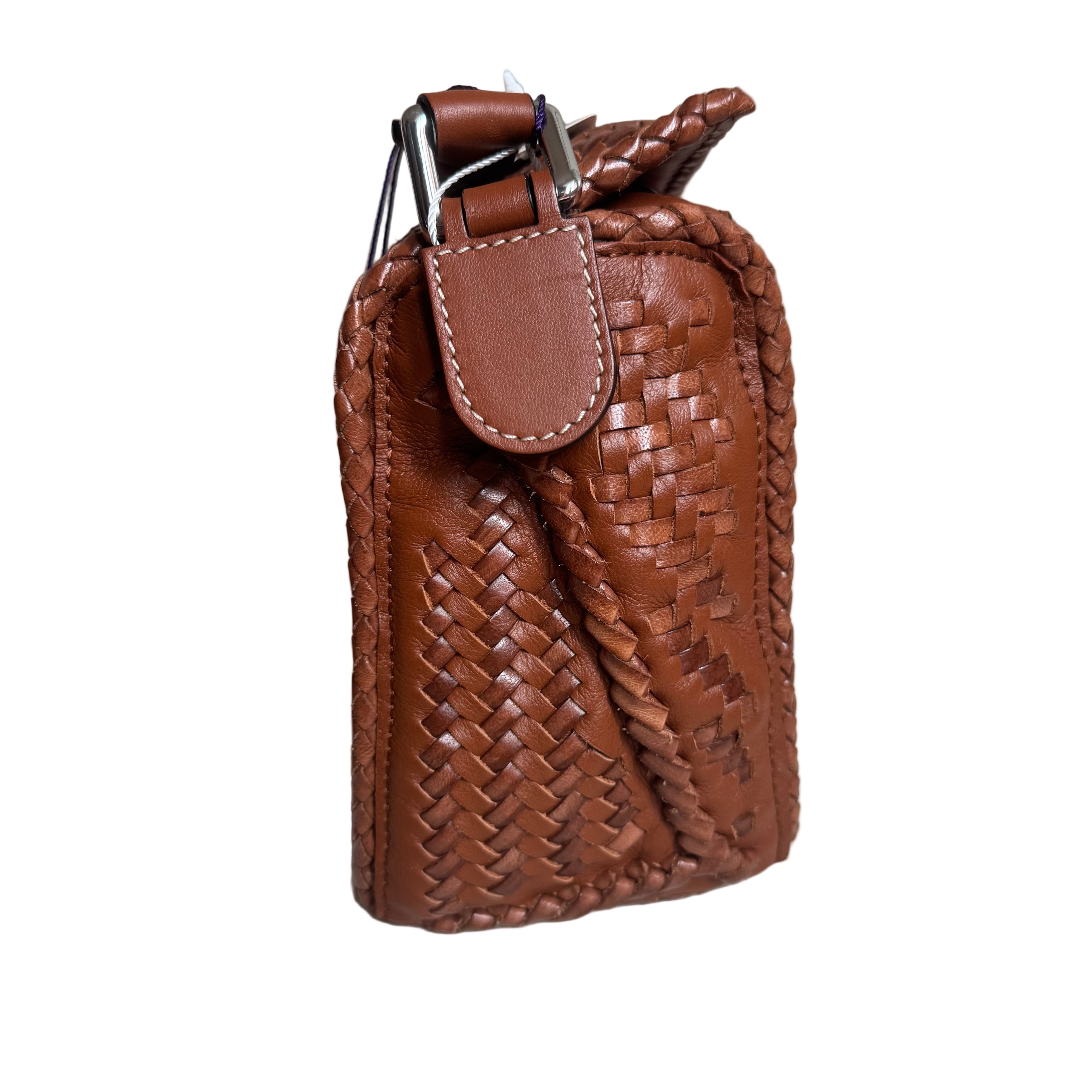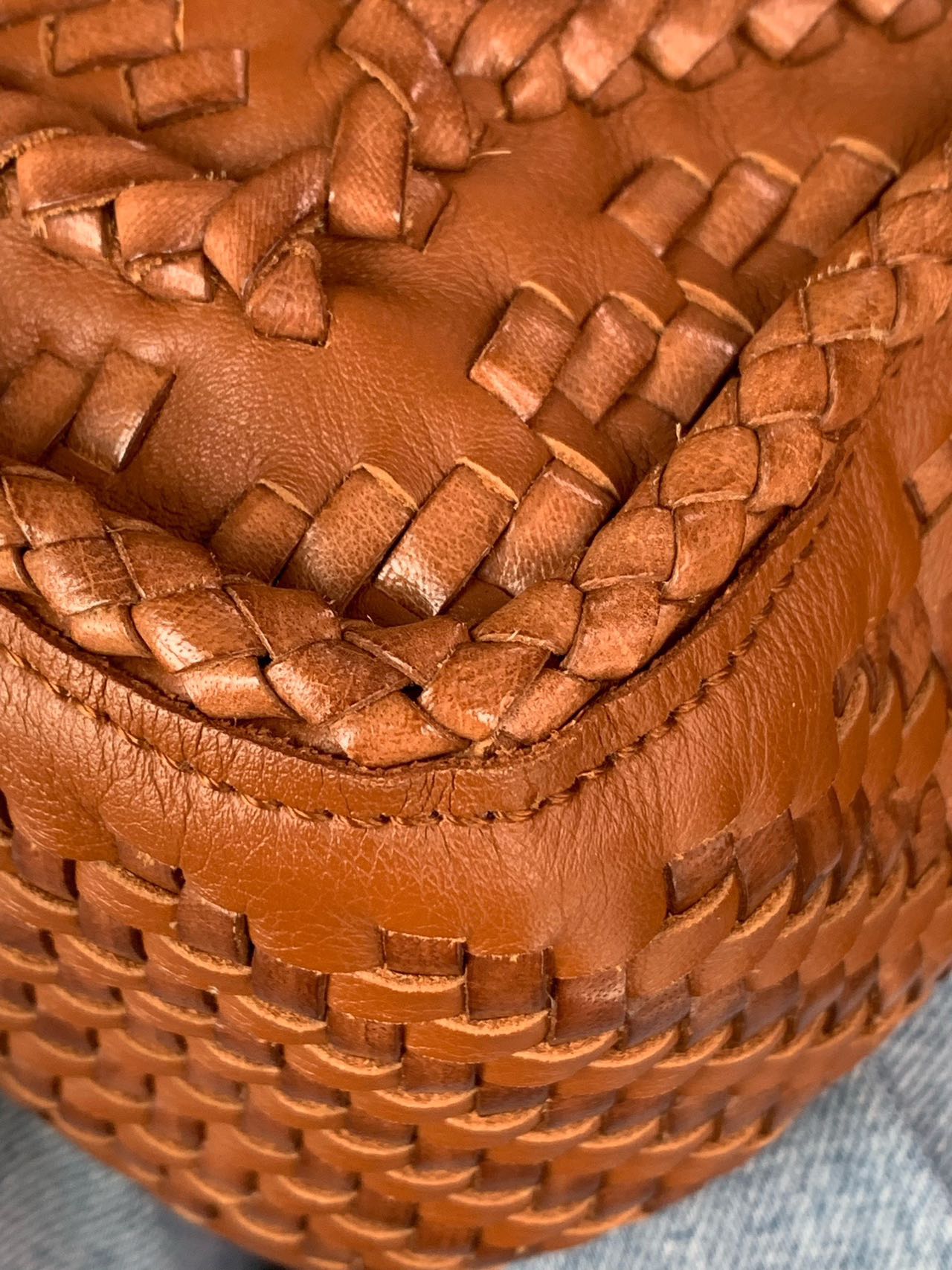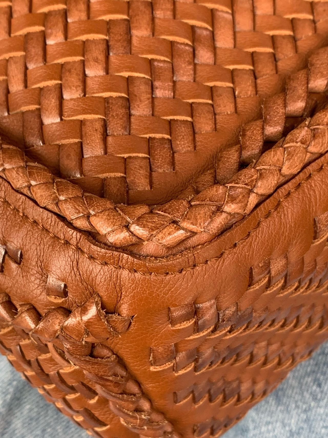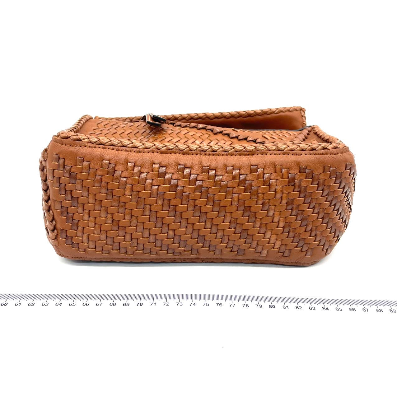 Expertly crafted from premium calfskin leather, this crossbody bag is meticulously woven together from strips of the same material. The result is a masterpiece of leather craftsmanship that exudes sophistication.