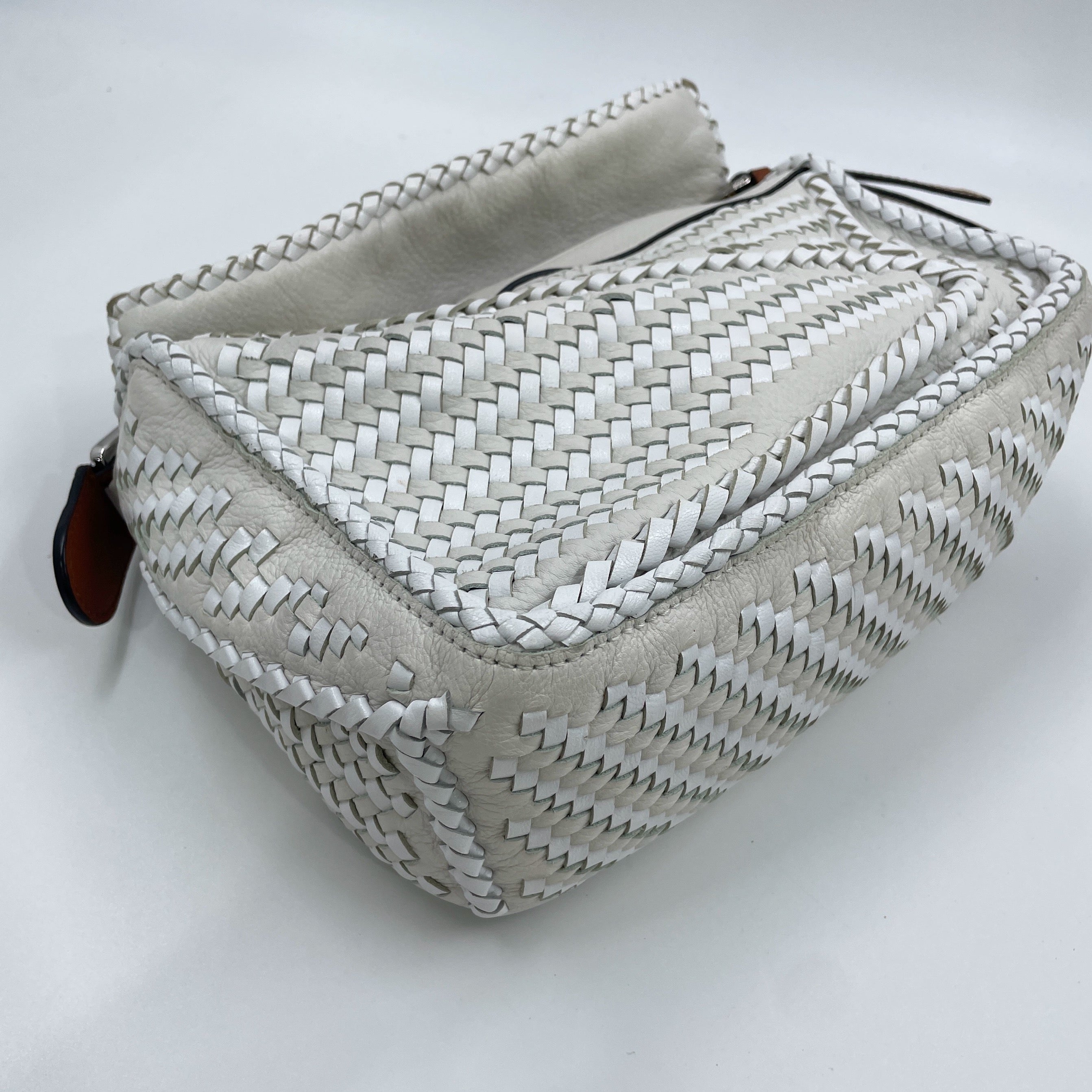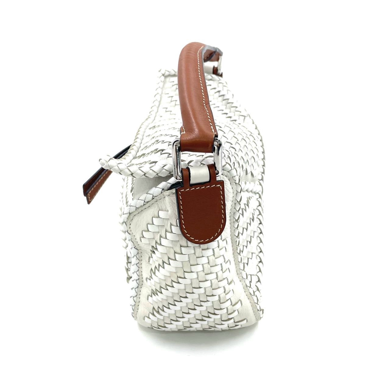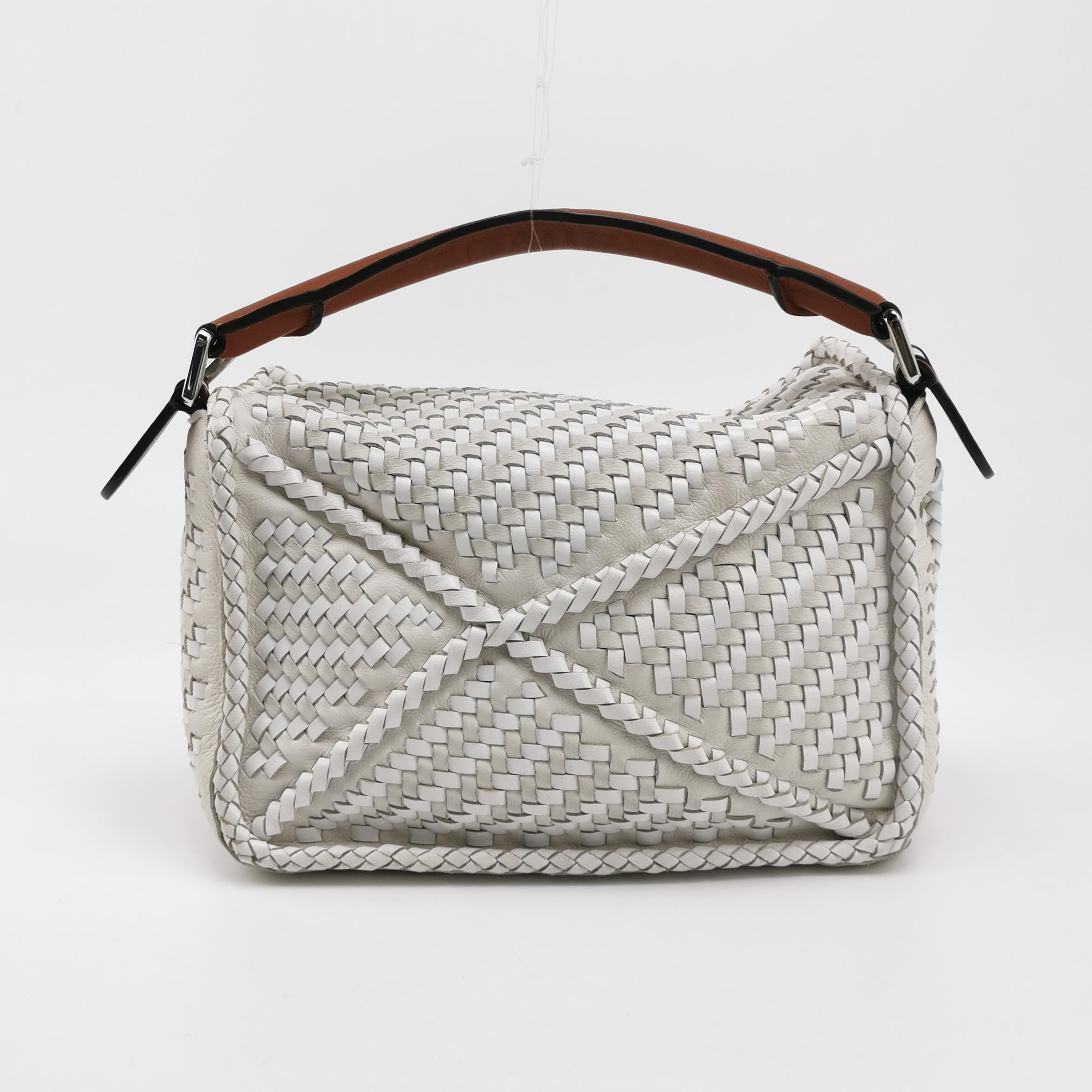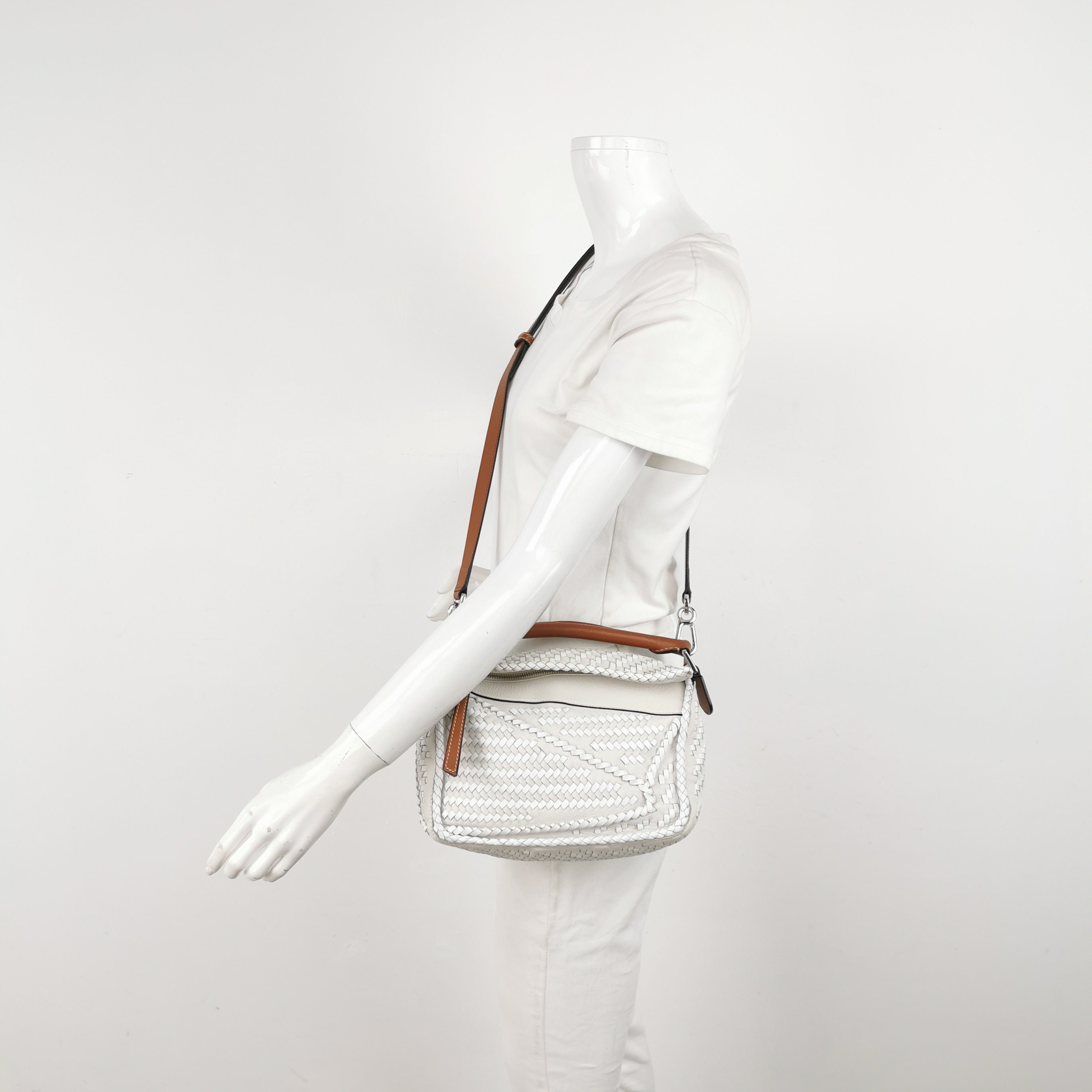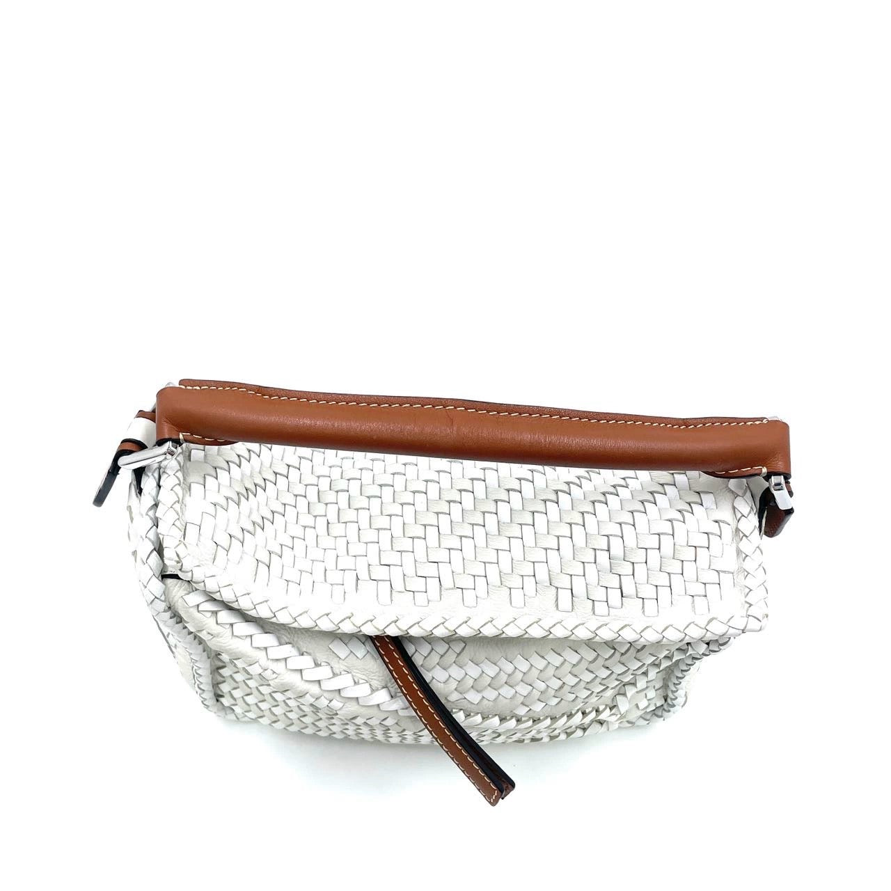 Loewe Puzzle Small Leather Woven Braided White Crossbody Bag