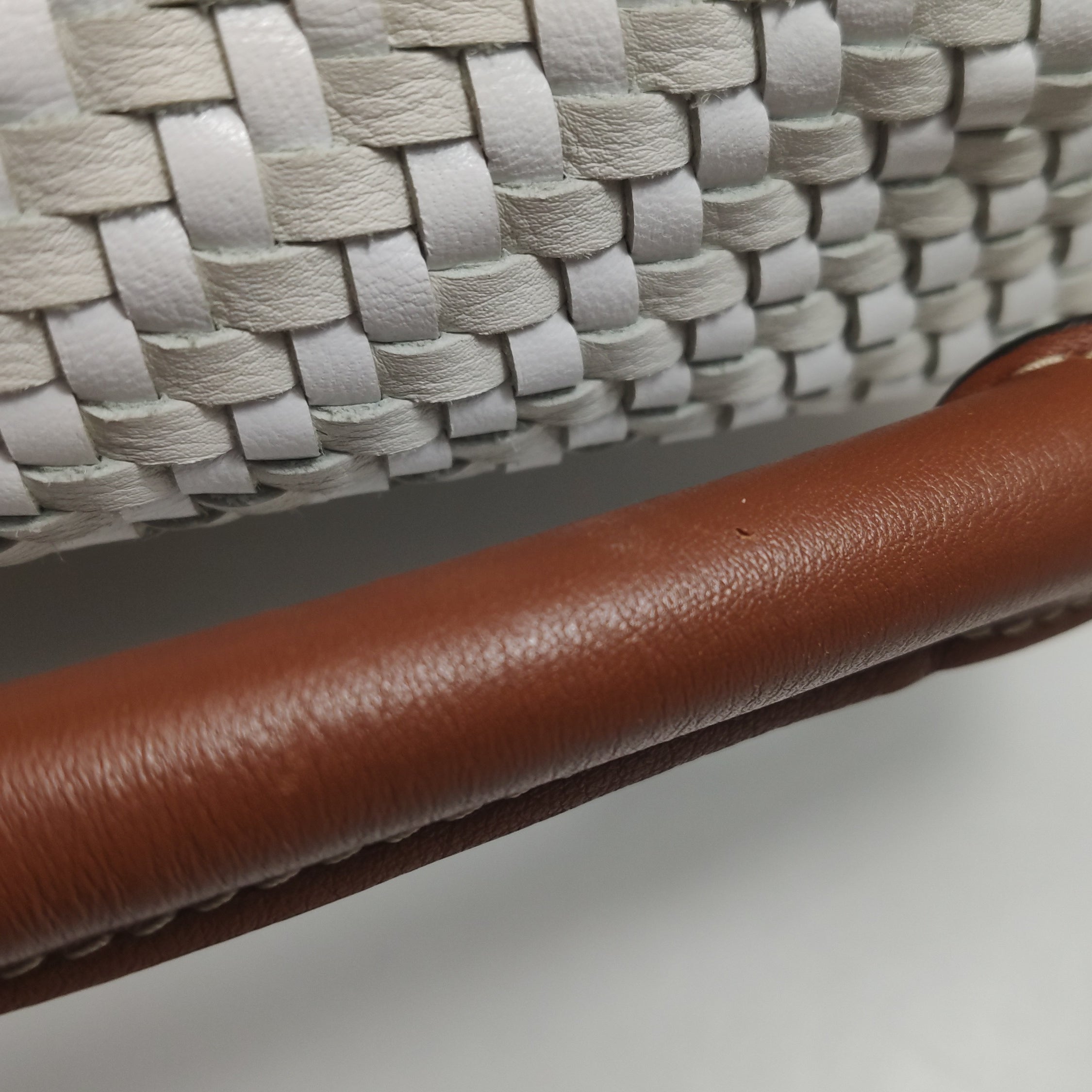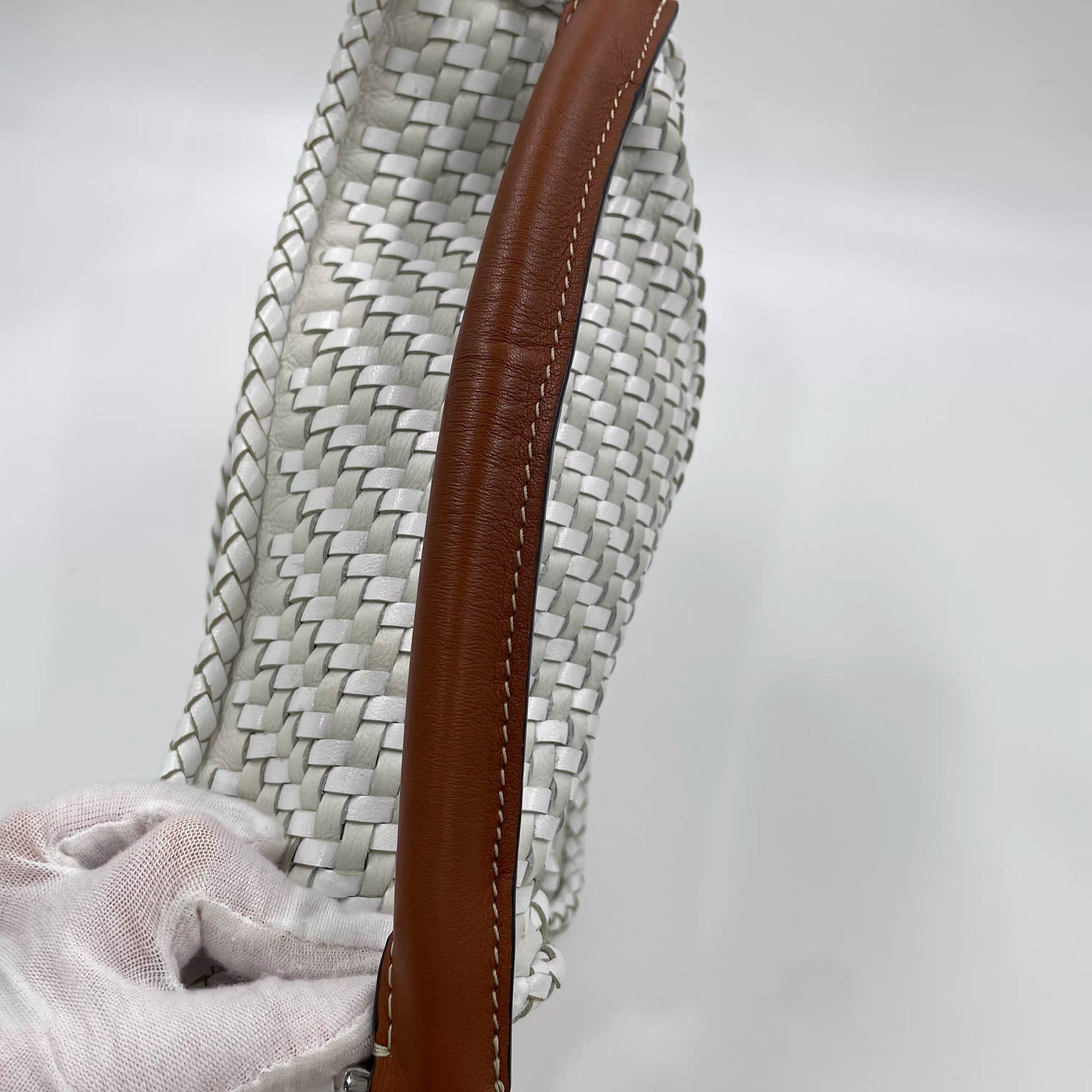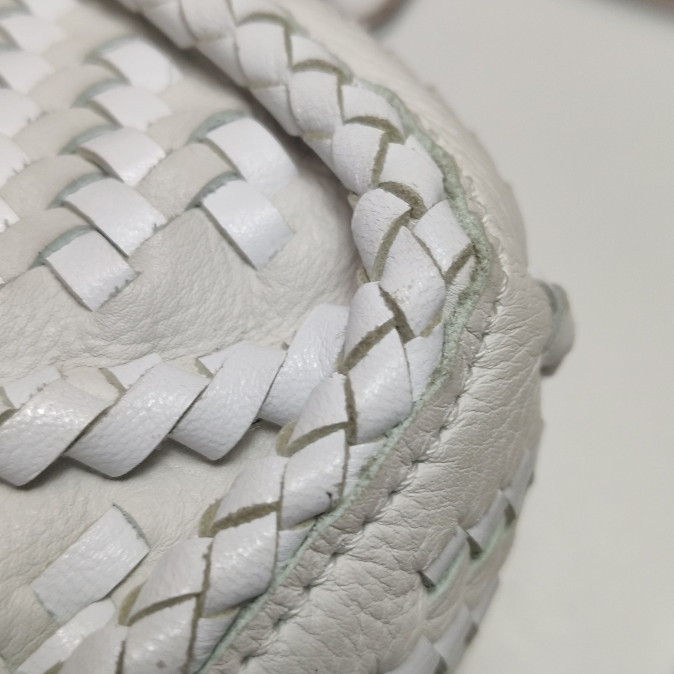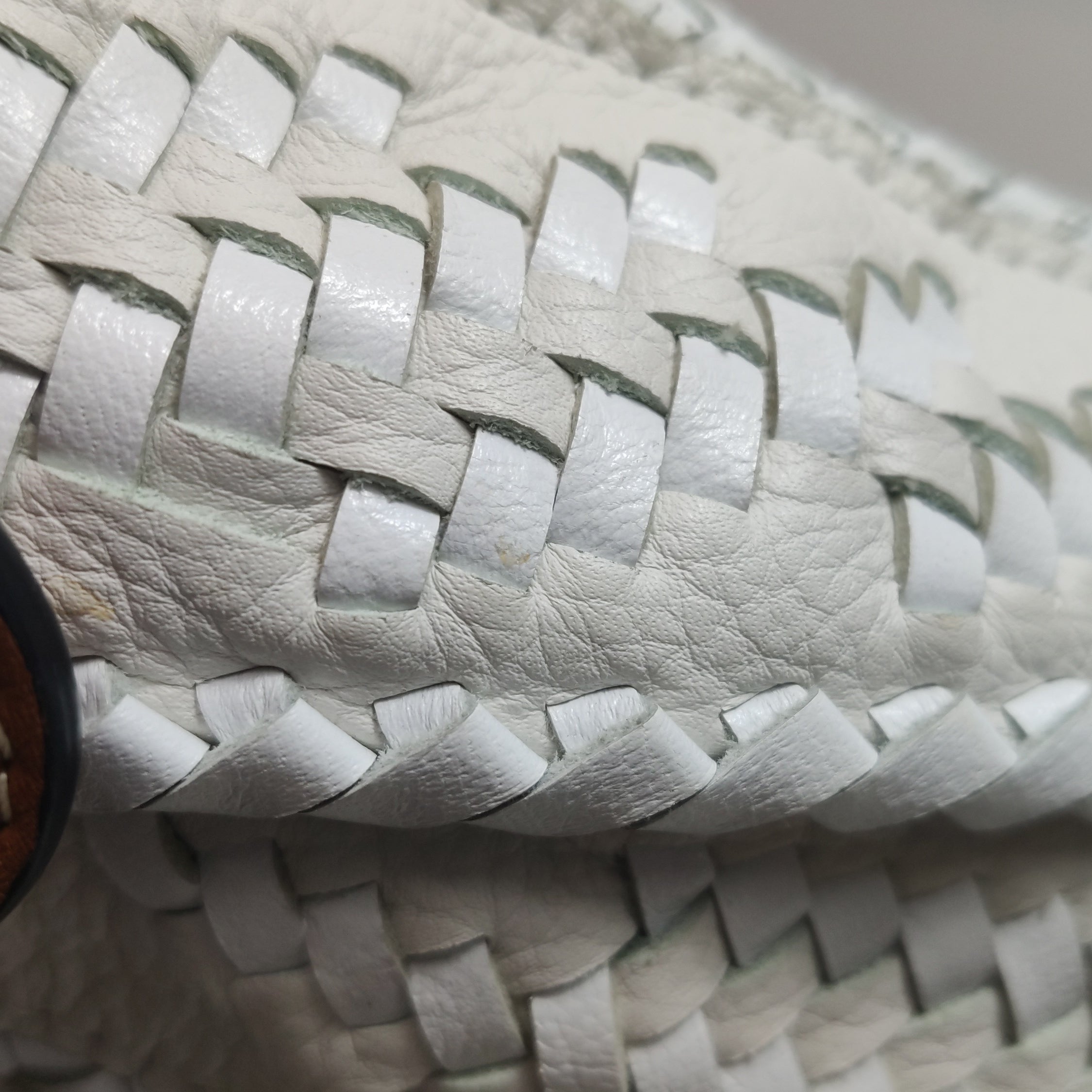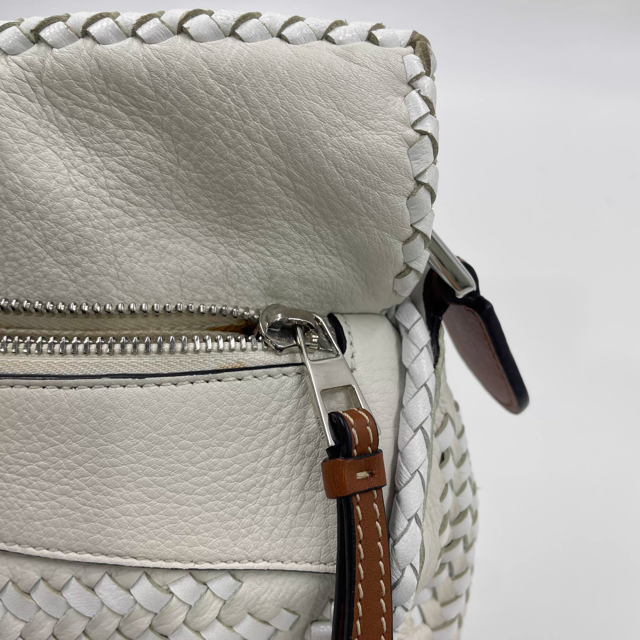 Loewe Puzzle Small Leather Woven Braided White Crossbody Bag