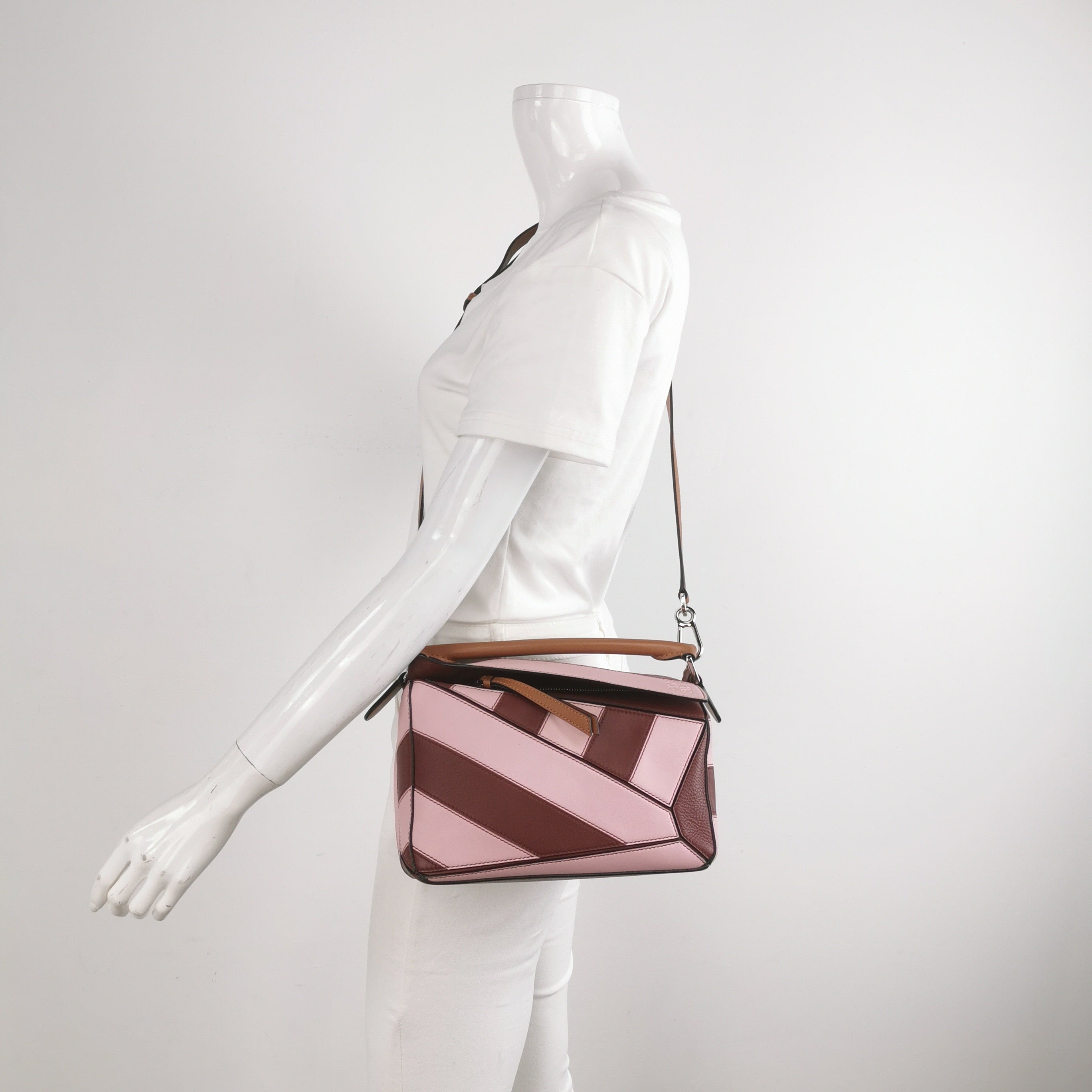 Loewe Puzzle Small Pink Burgundy Stripes Crossbody Bag