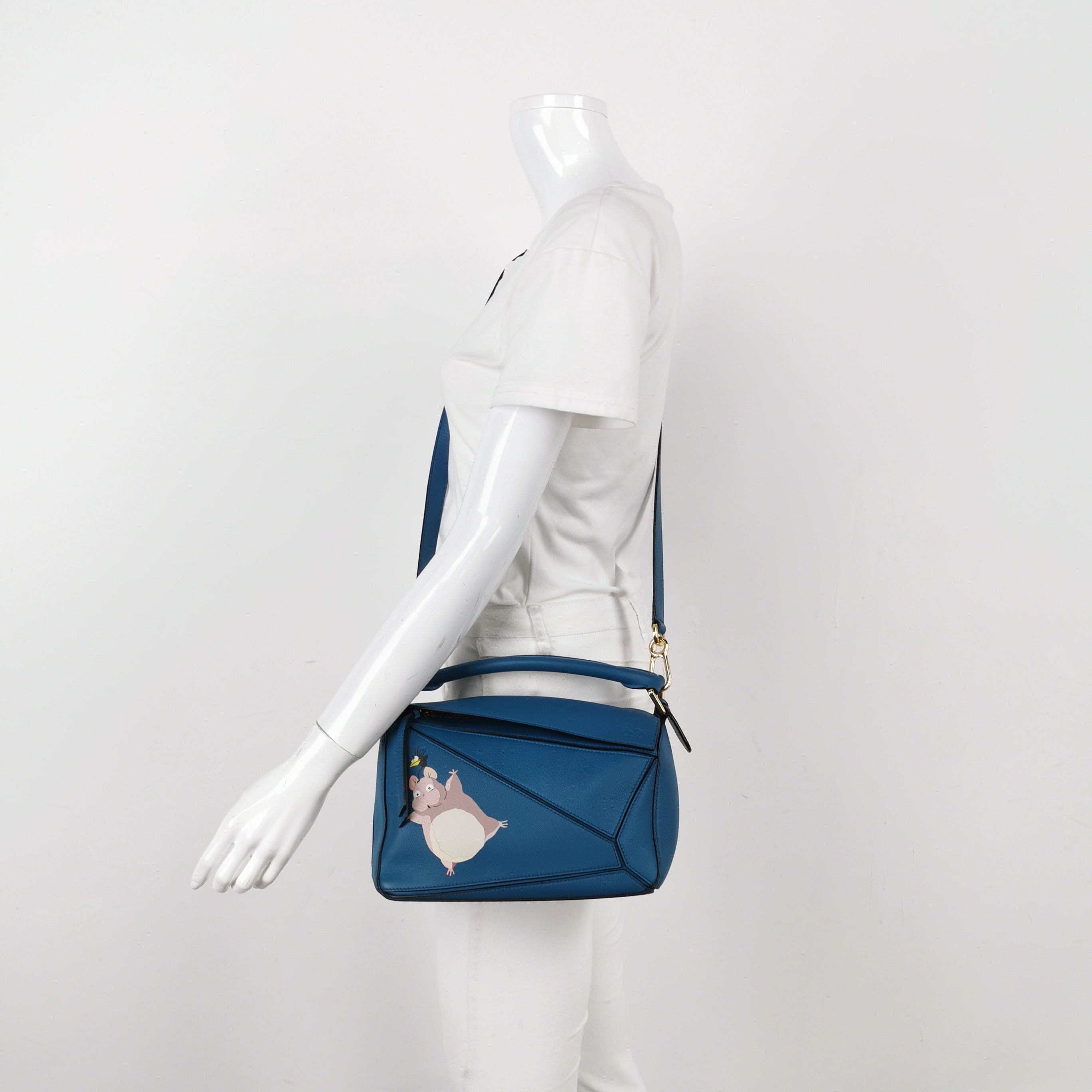 Loewe x Spirited Away Studio Ghibli Collection Puzzle Small Blue Crossbody Bag