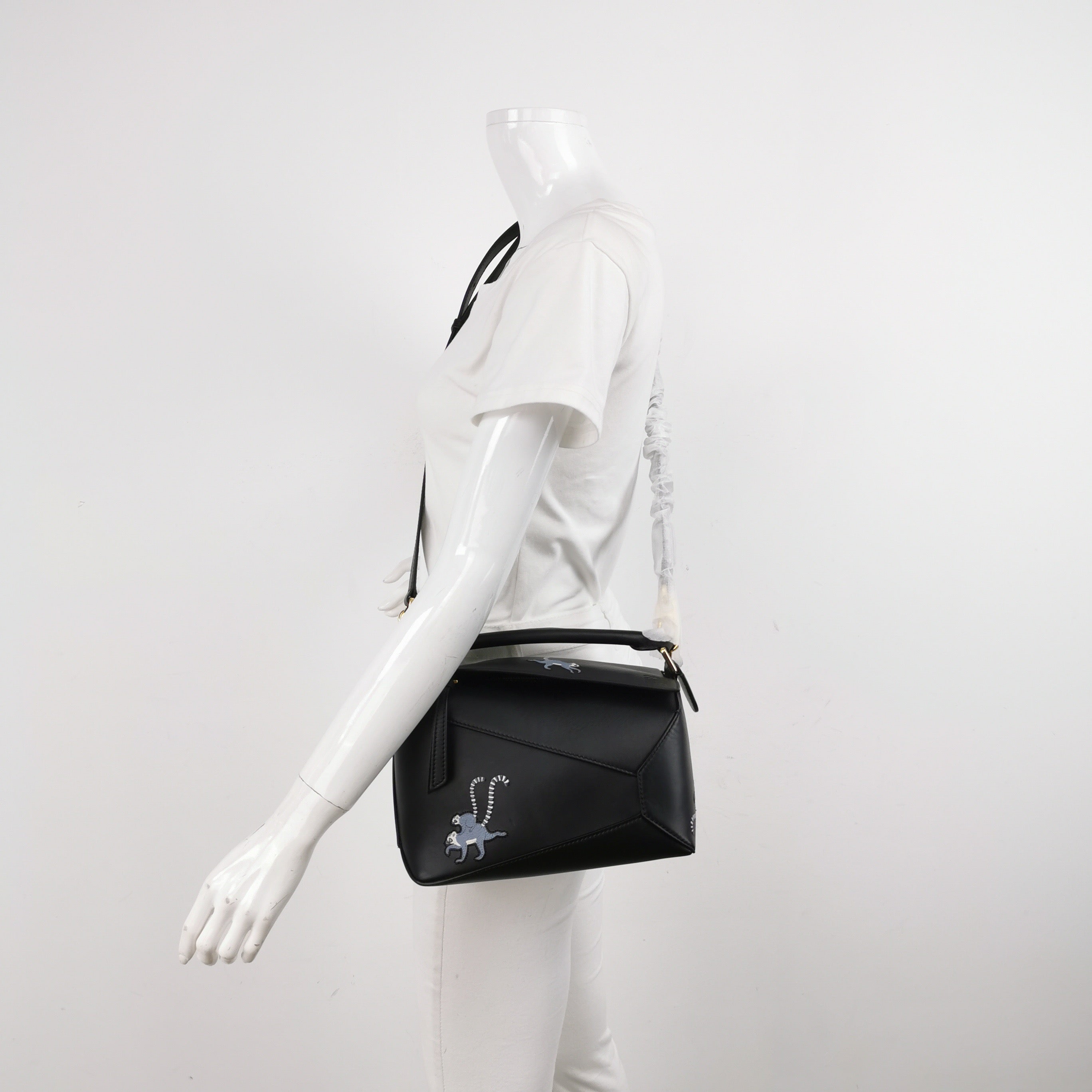 Loewe x Suna Fujita Lemur Puzzle Edge Small Black Leather Crossbody Bag