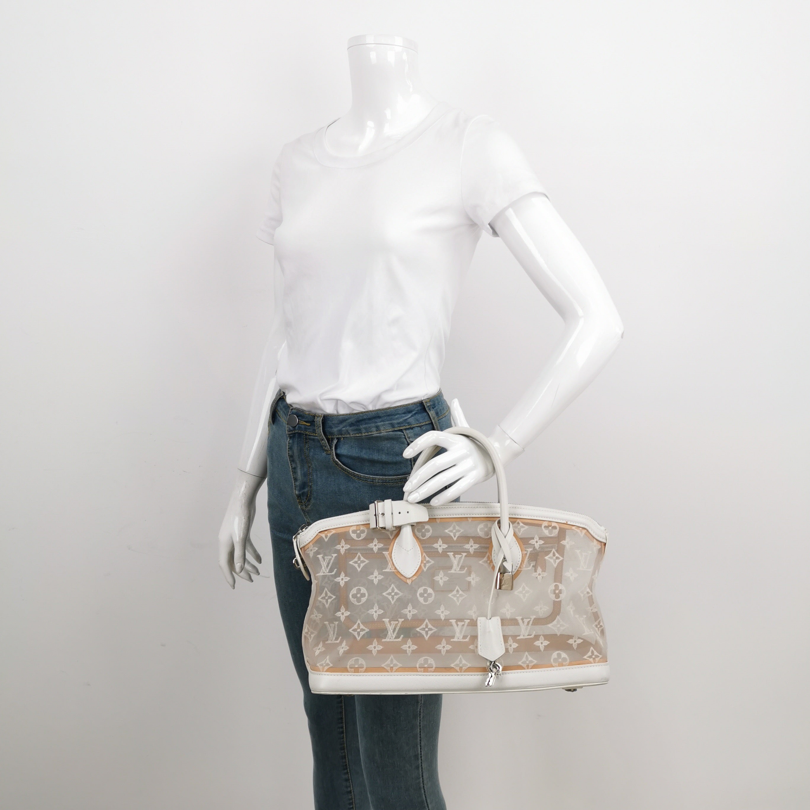 Louis Vuitton Lockit White Mesh Monogram and Leather Handbag