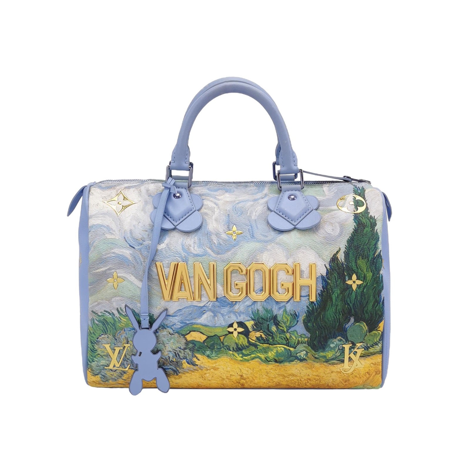Discover the Van Gogh Speedy 30, part of the exclusive Louis Vuitton x Jeff Koons Limited Edition Masters Collection. This highly sought-after piece is currently sold out at boutiques, making it a must-have for any Louis Vuitton collector. It also comes with a colored metallic bunny charm. Experience the art of luxury with this stunning and sophisticated tote.