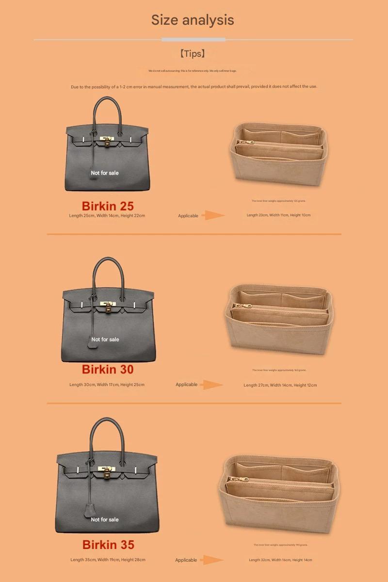 Organiser Insert fit for Hermès Birkin 25 30 35 Velvet Material Soft and Firm