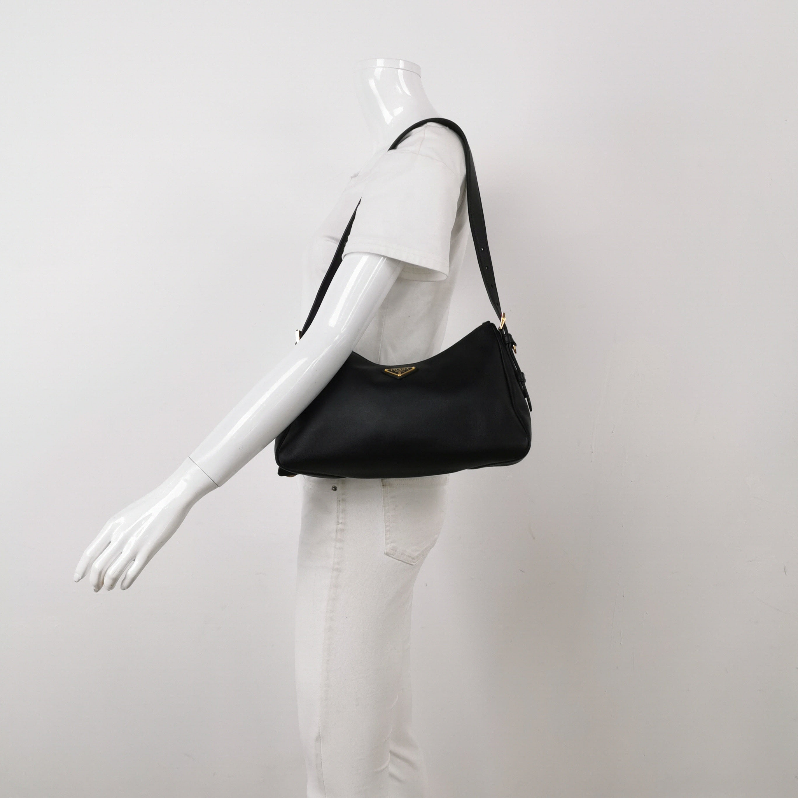 Prada Aimée Black Medium Calfskin Leather Shoulder Bag