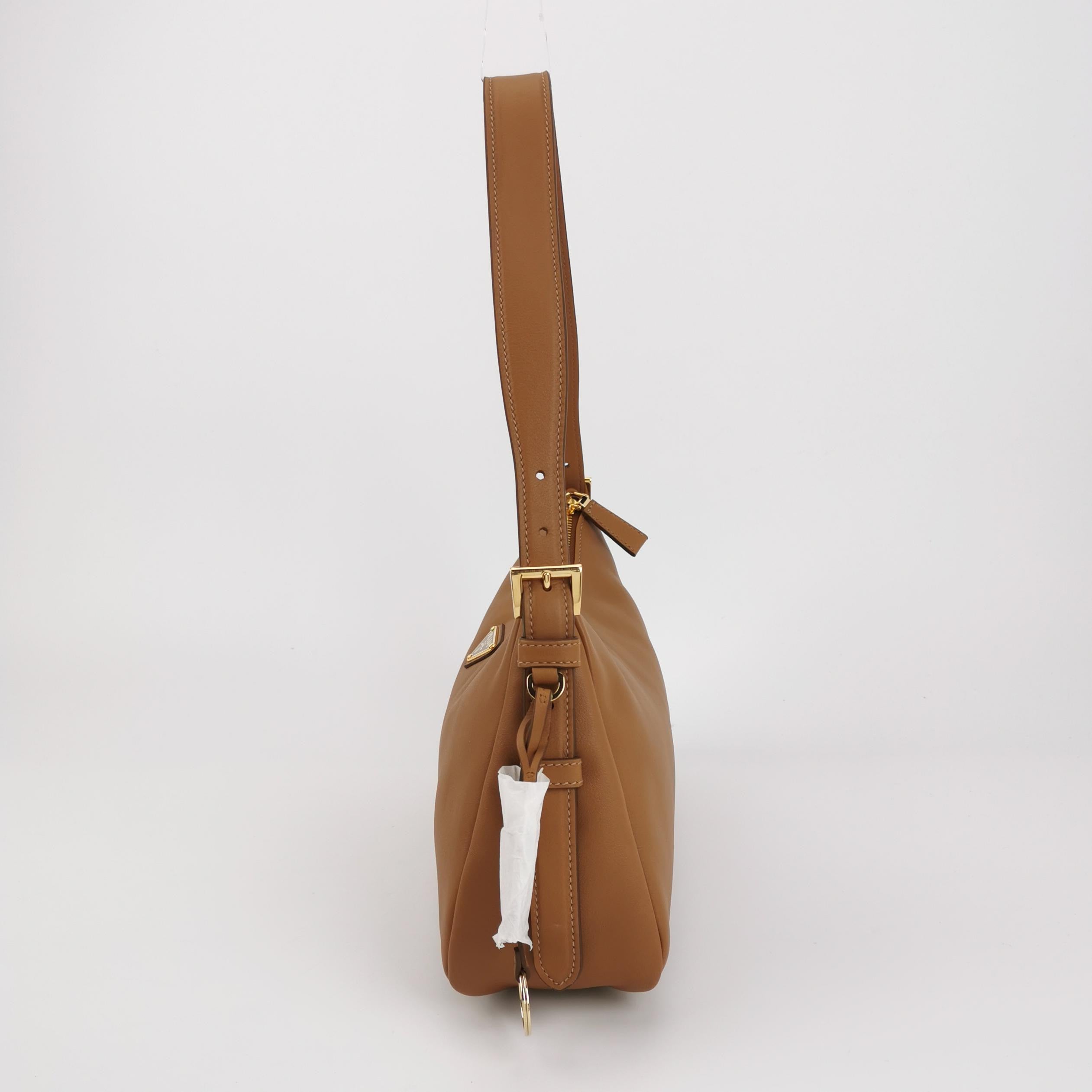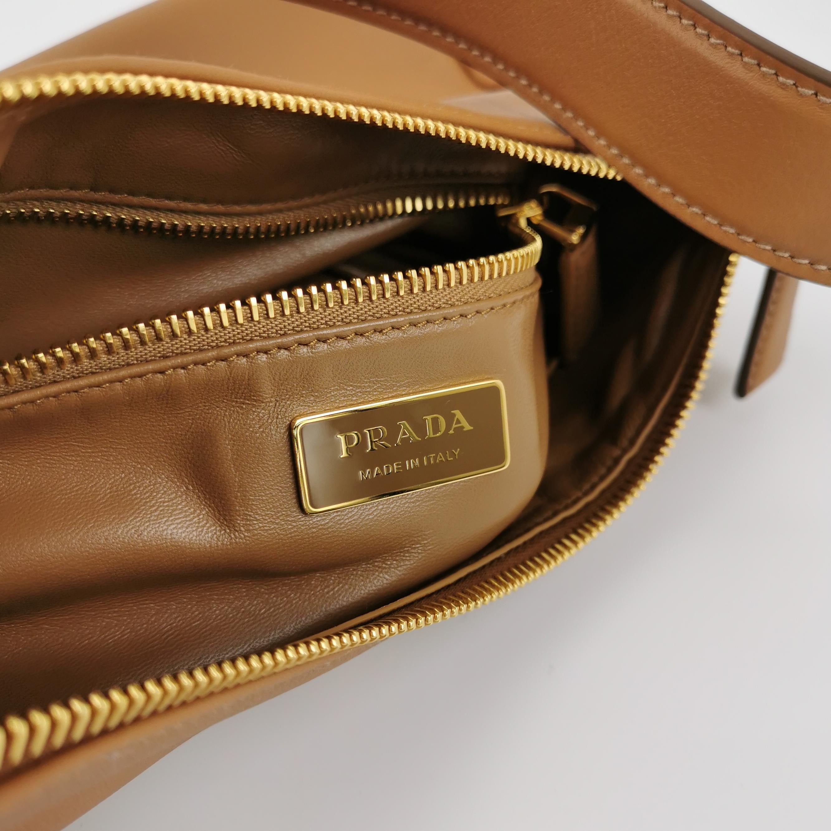 Prada Aimée Tan Brown Medium Calfskin Leather Shoulder Bag