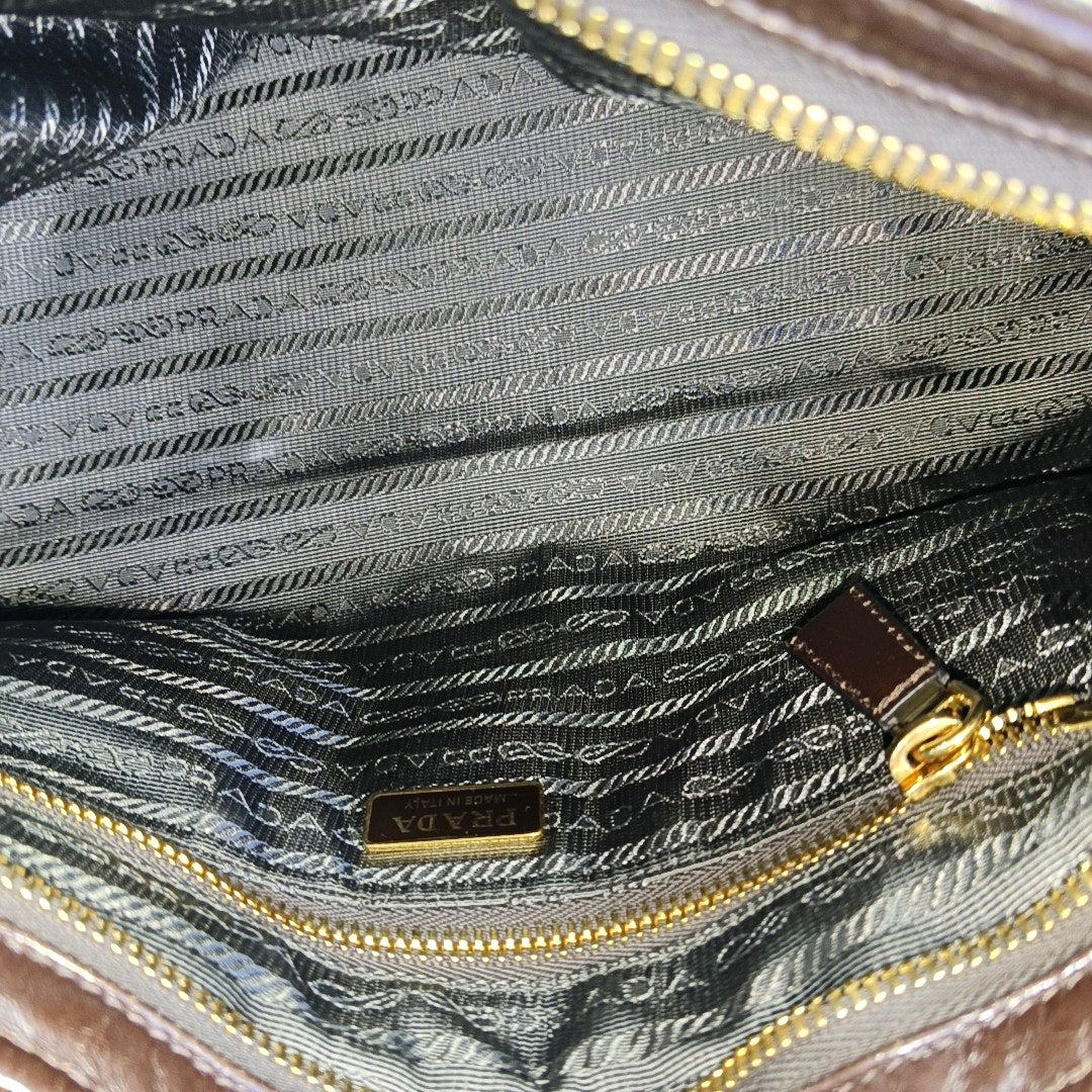 Prada Bonnie Medium Soft Lux Brown Shiny Calfskin Leather Shoulder Bag