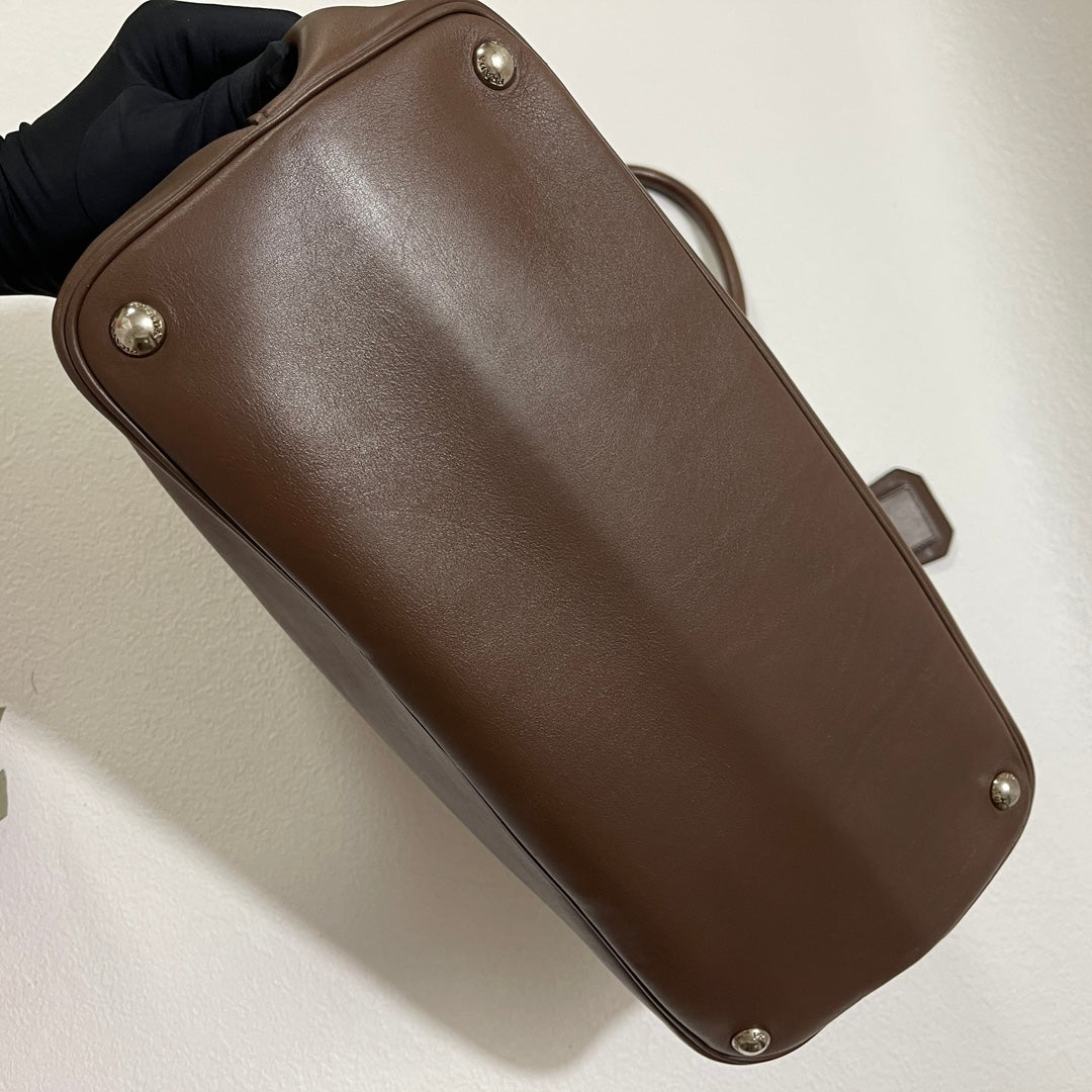 Prada Double Bag Medium Dark Chocolate Brown Saffiano Leather with Strap