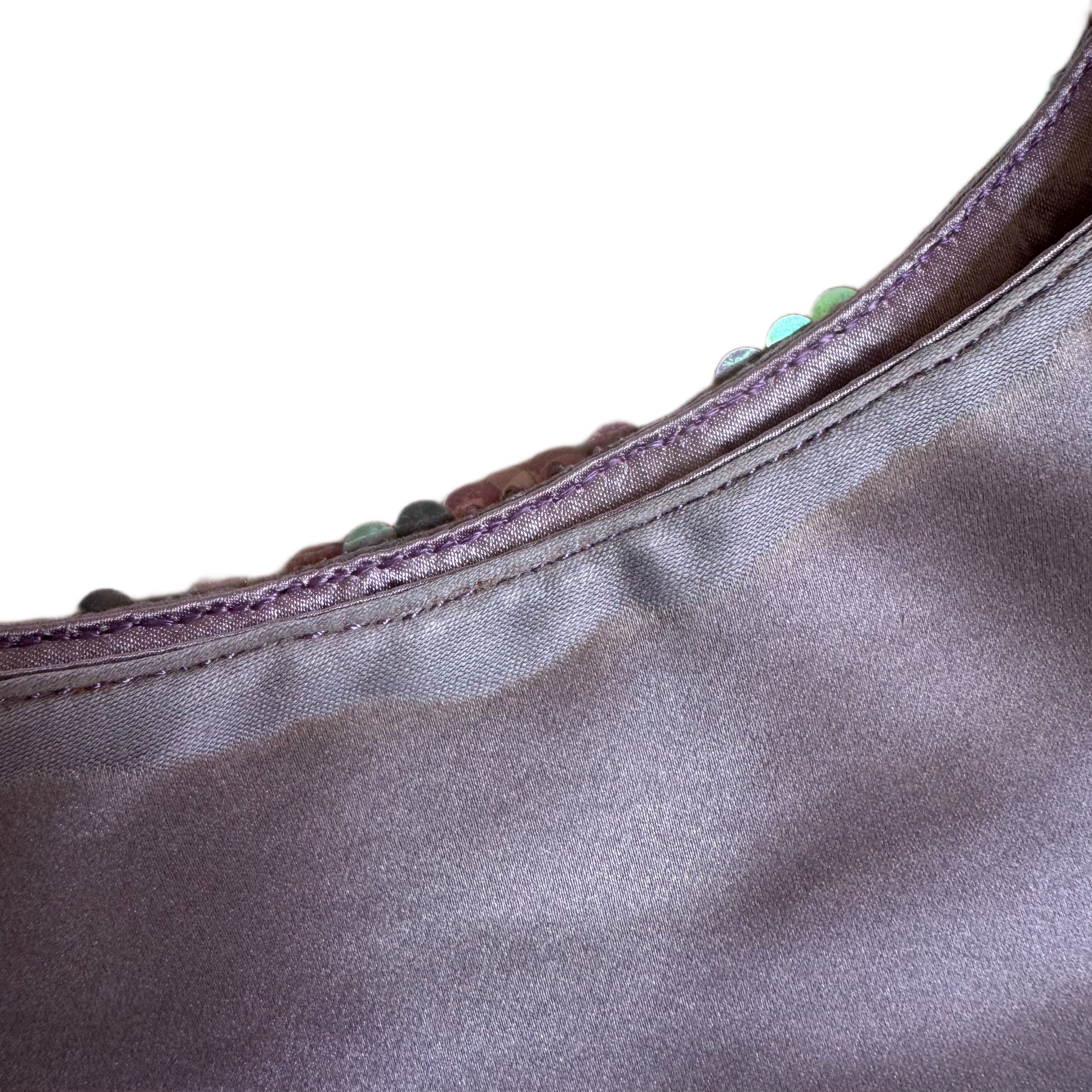 RARE Prada Vintage Cleo Purple Silk and Sequins Evening Handbag