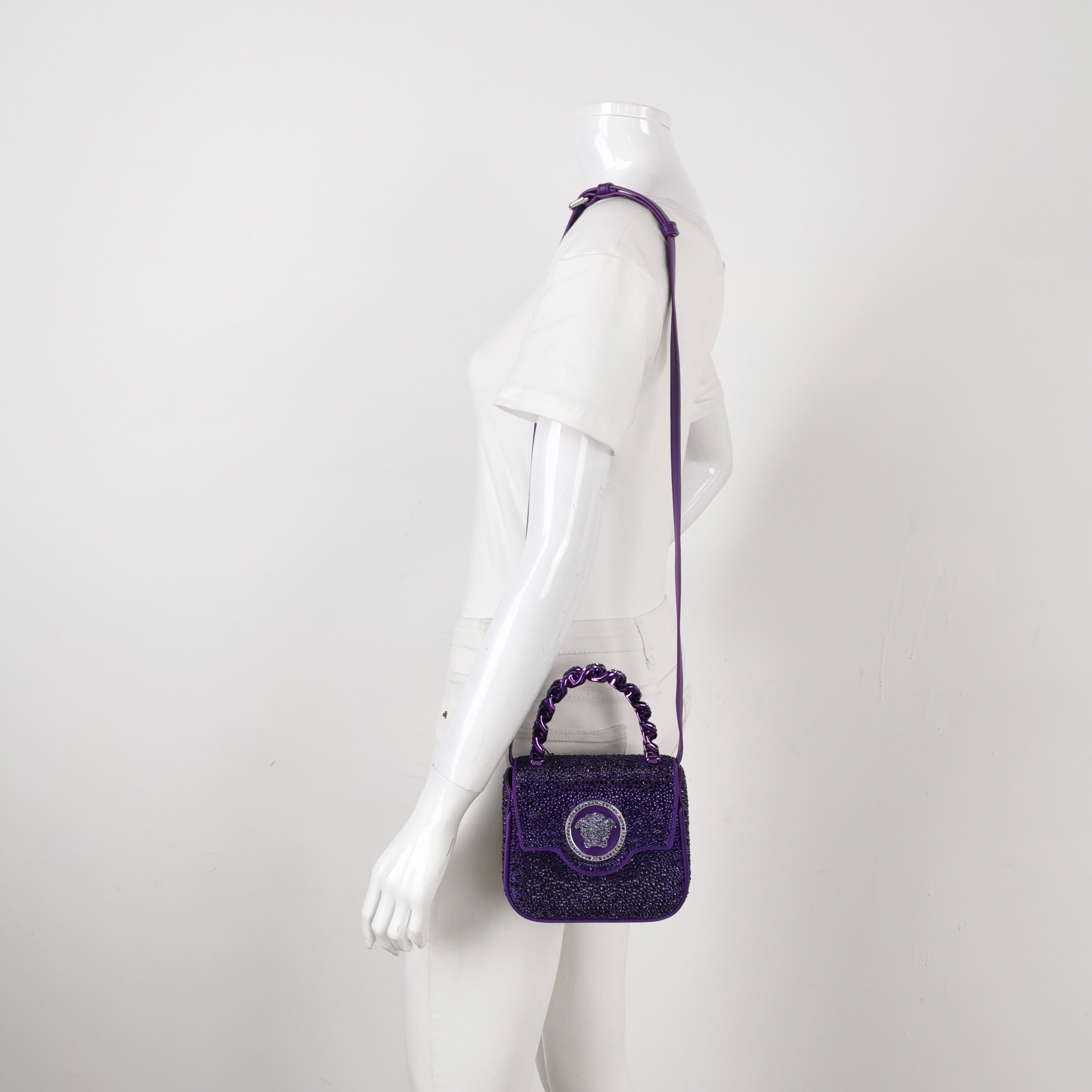 Versace La Medusa Mini Crystal Embellished Top Handle Bag in Purple