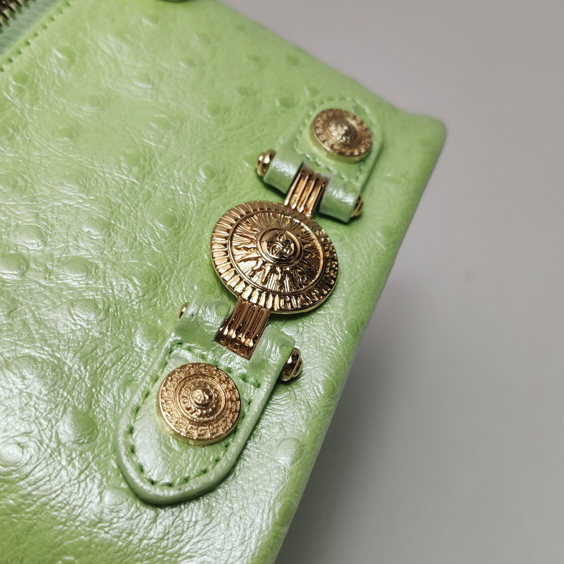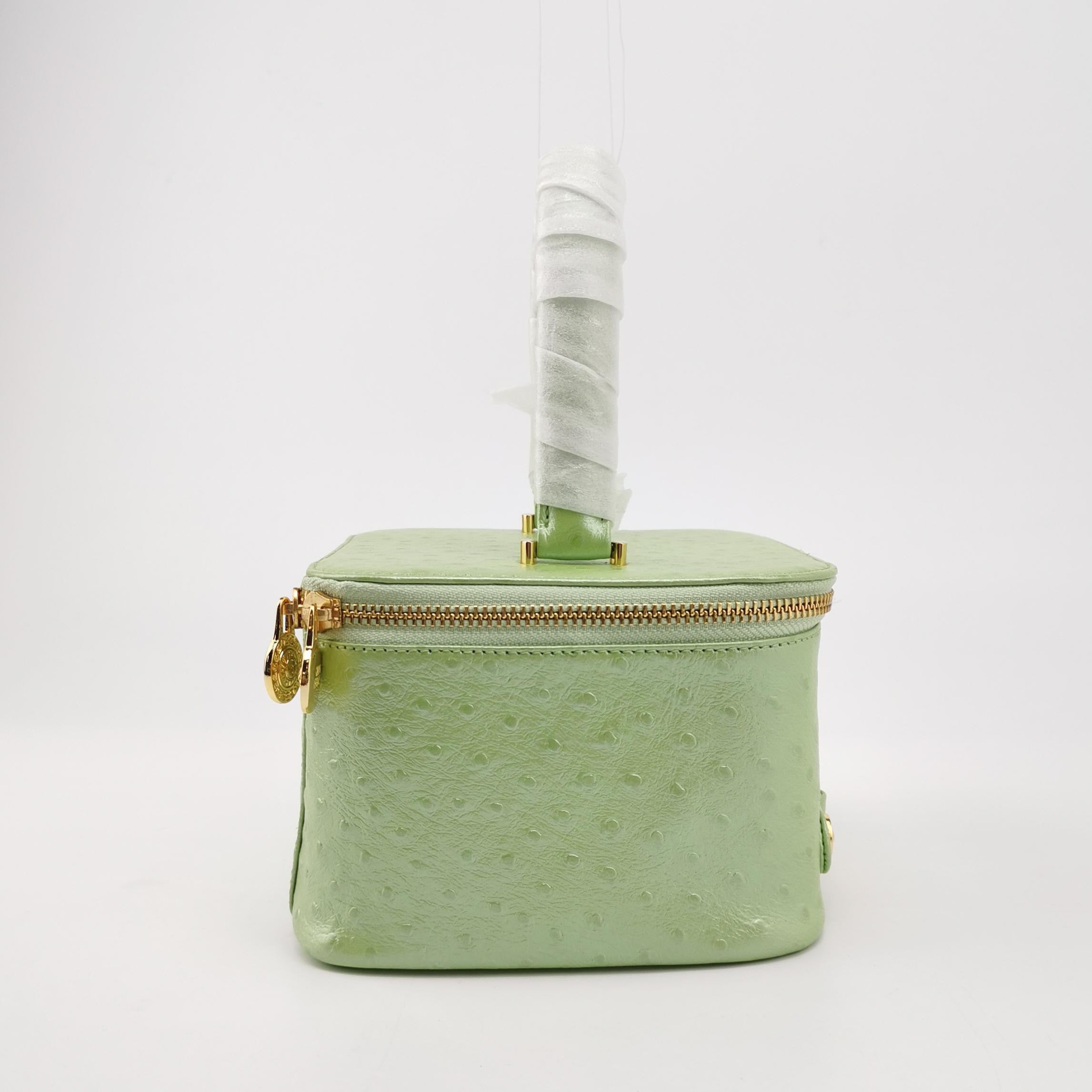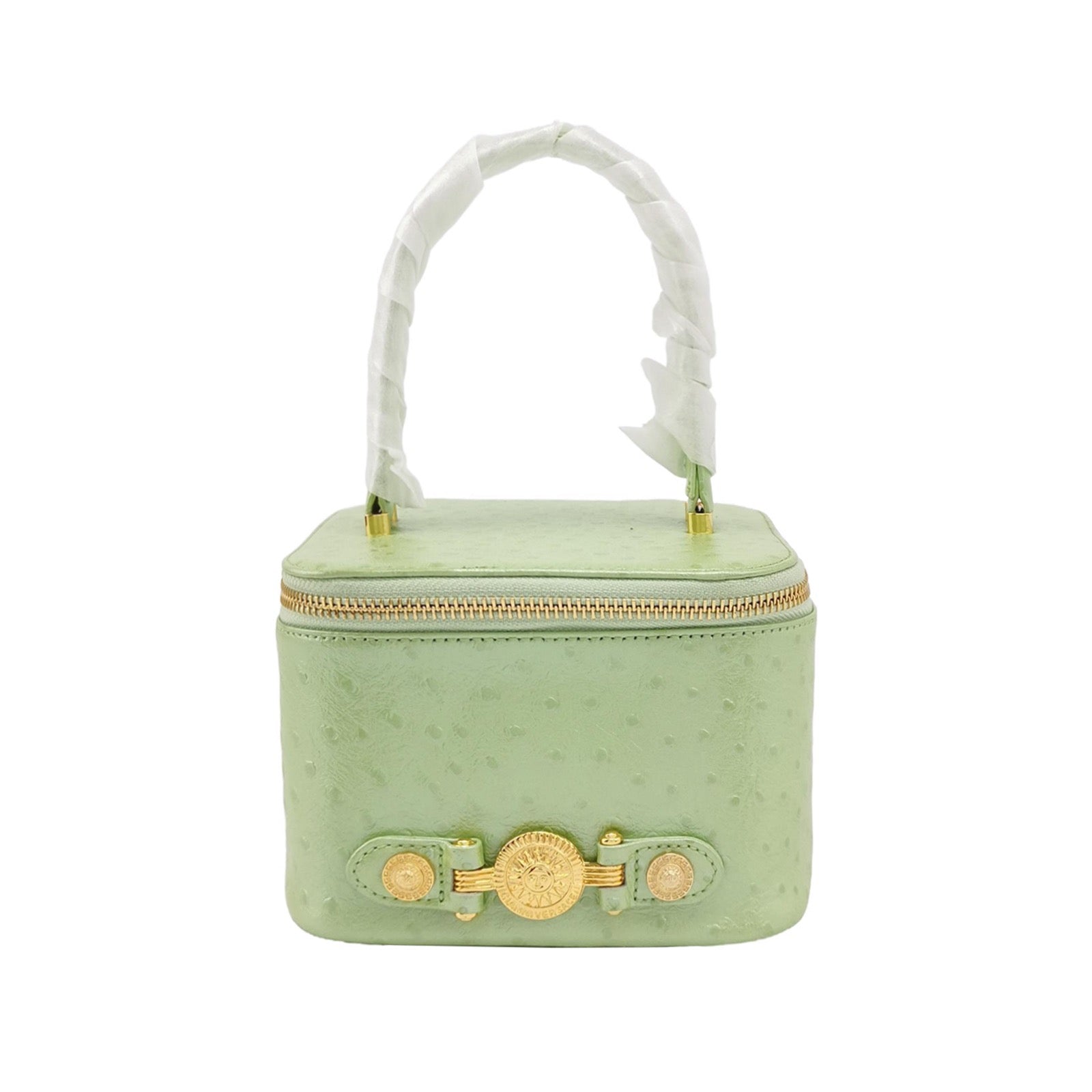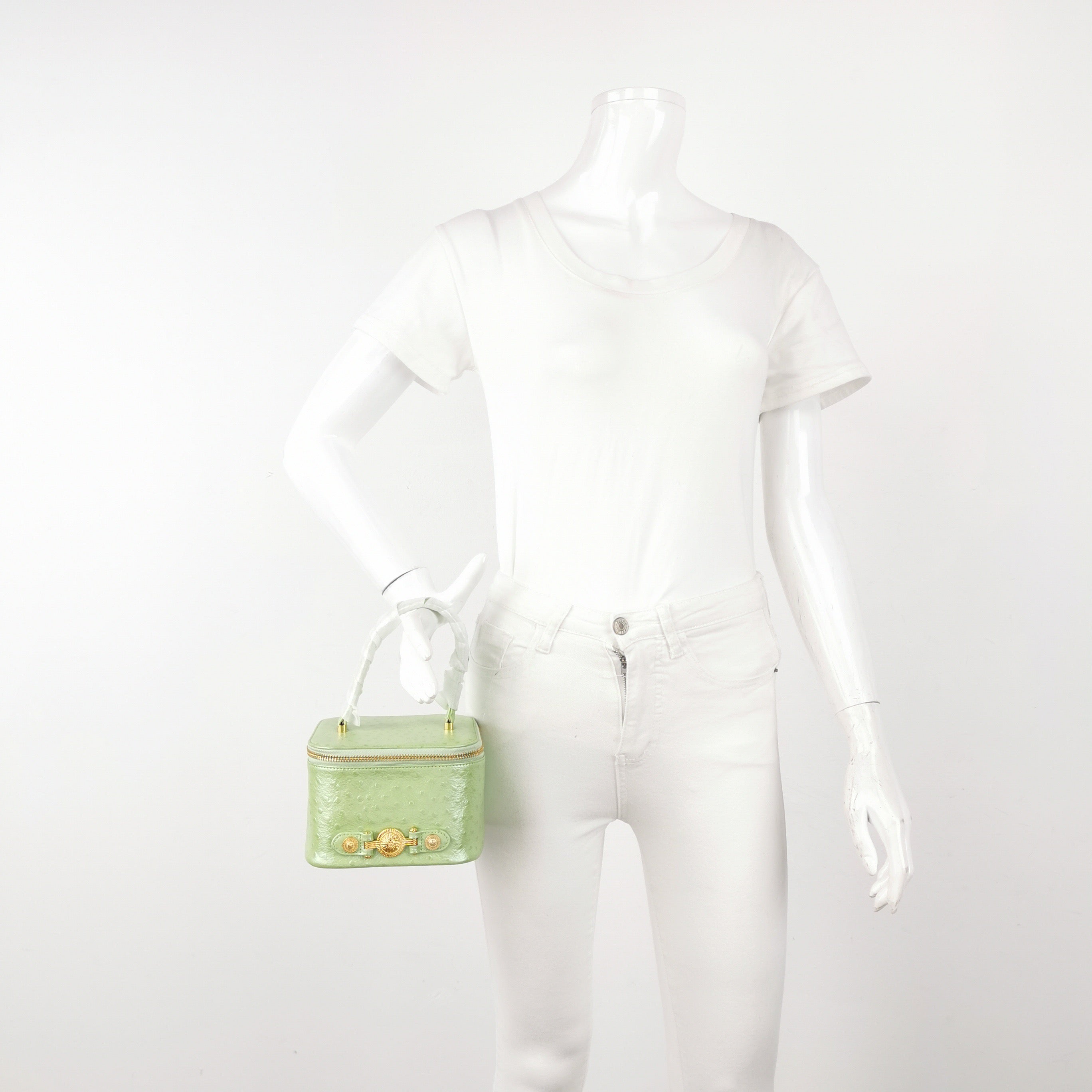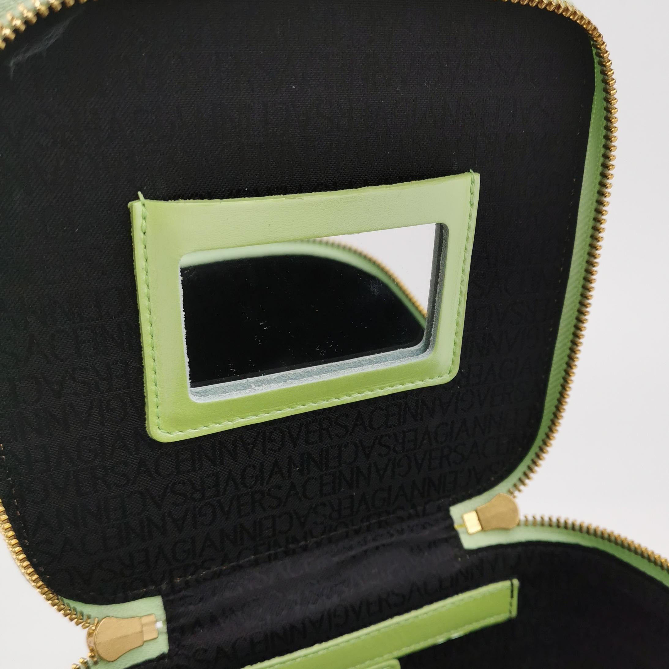 Versace Vintage Logo Sun Vanity Bag Green Calfskin Leather Gold Hardware