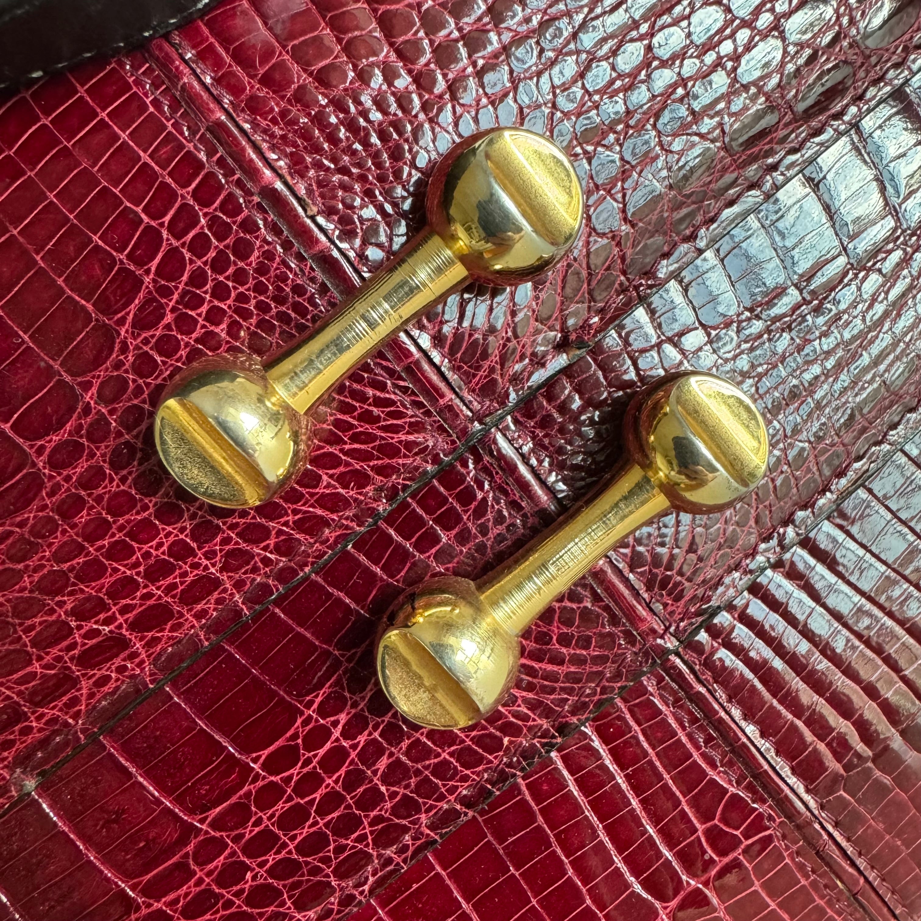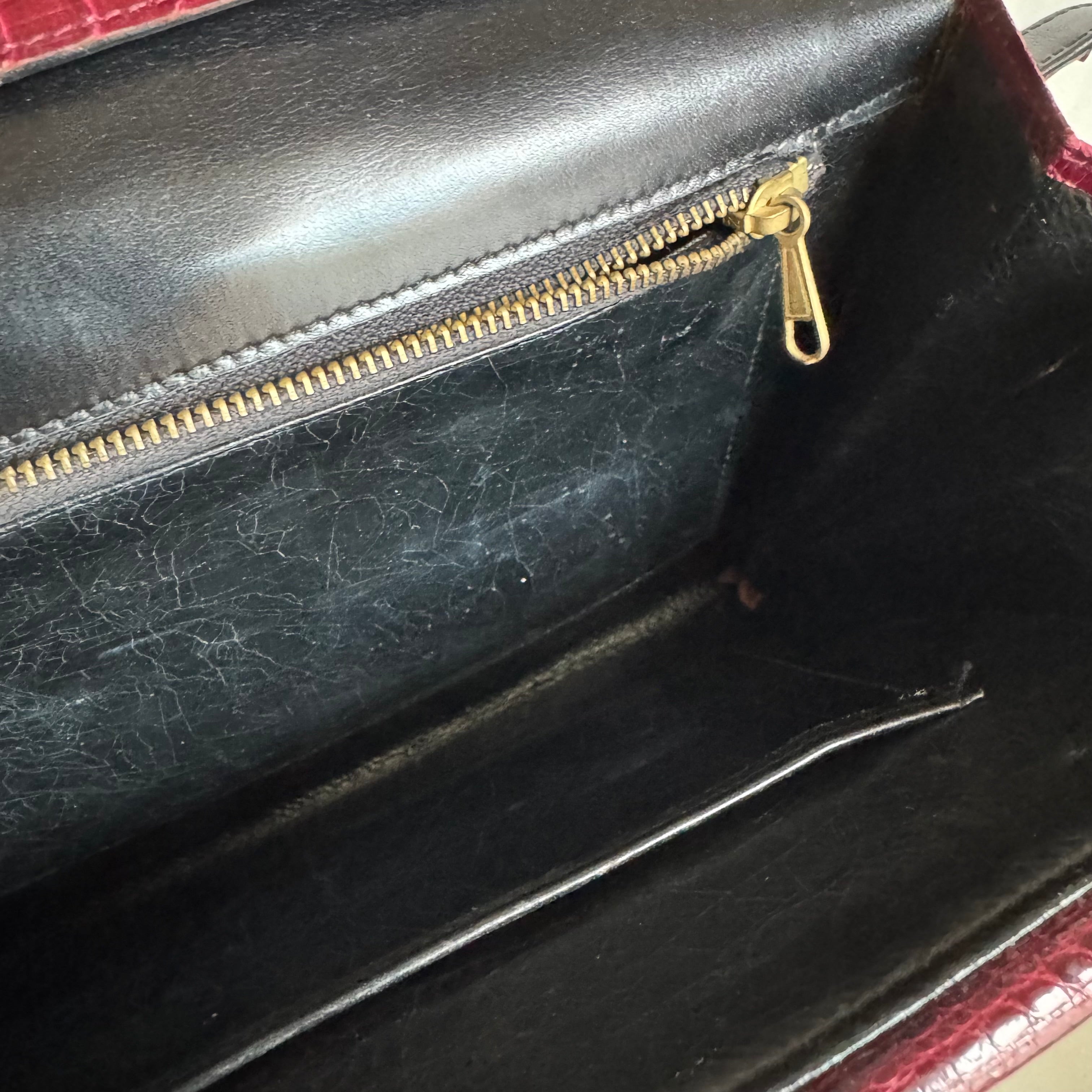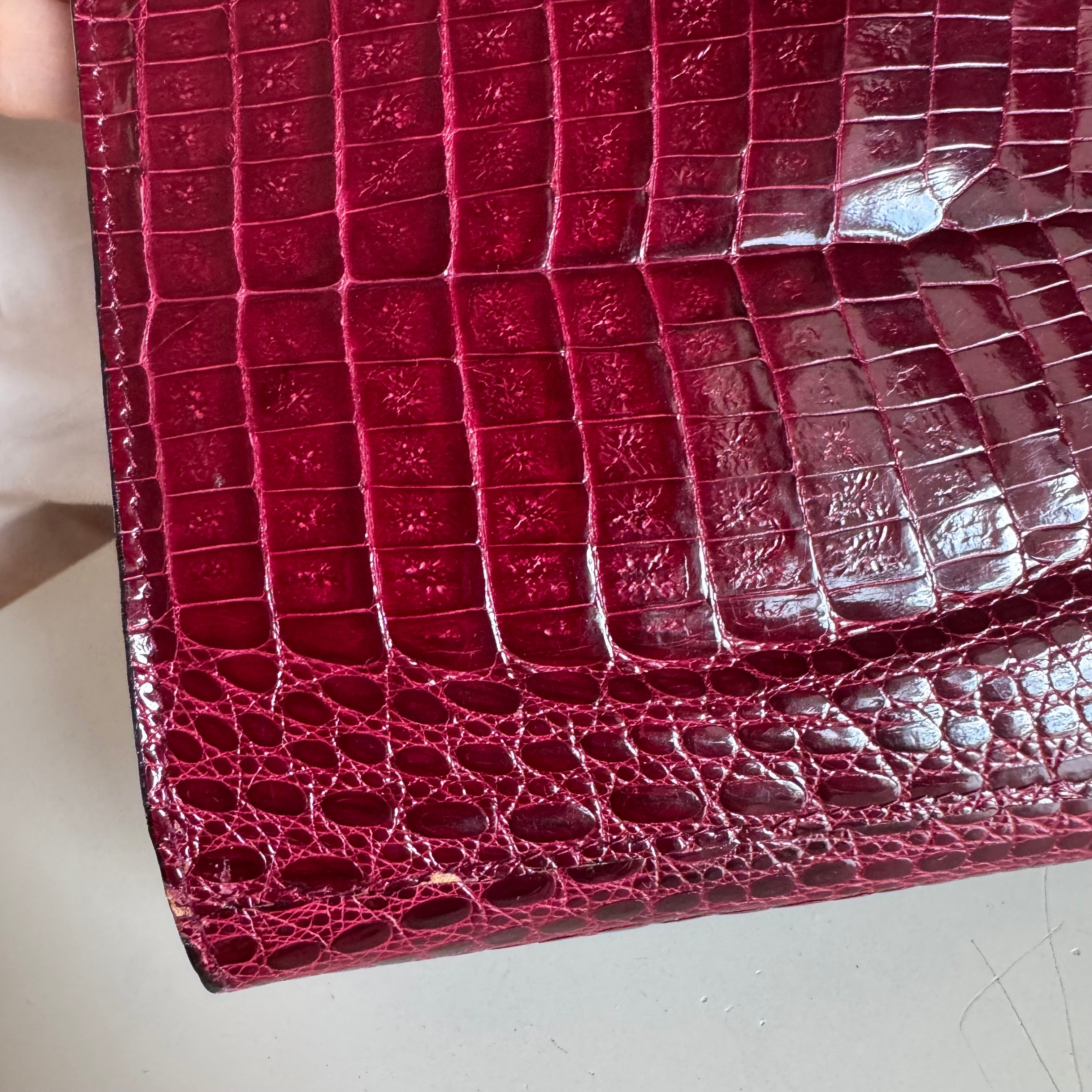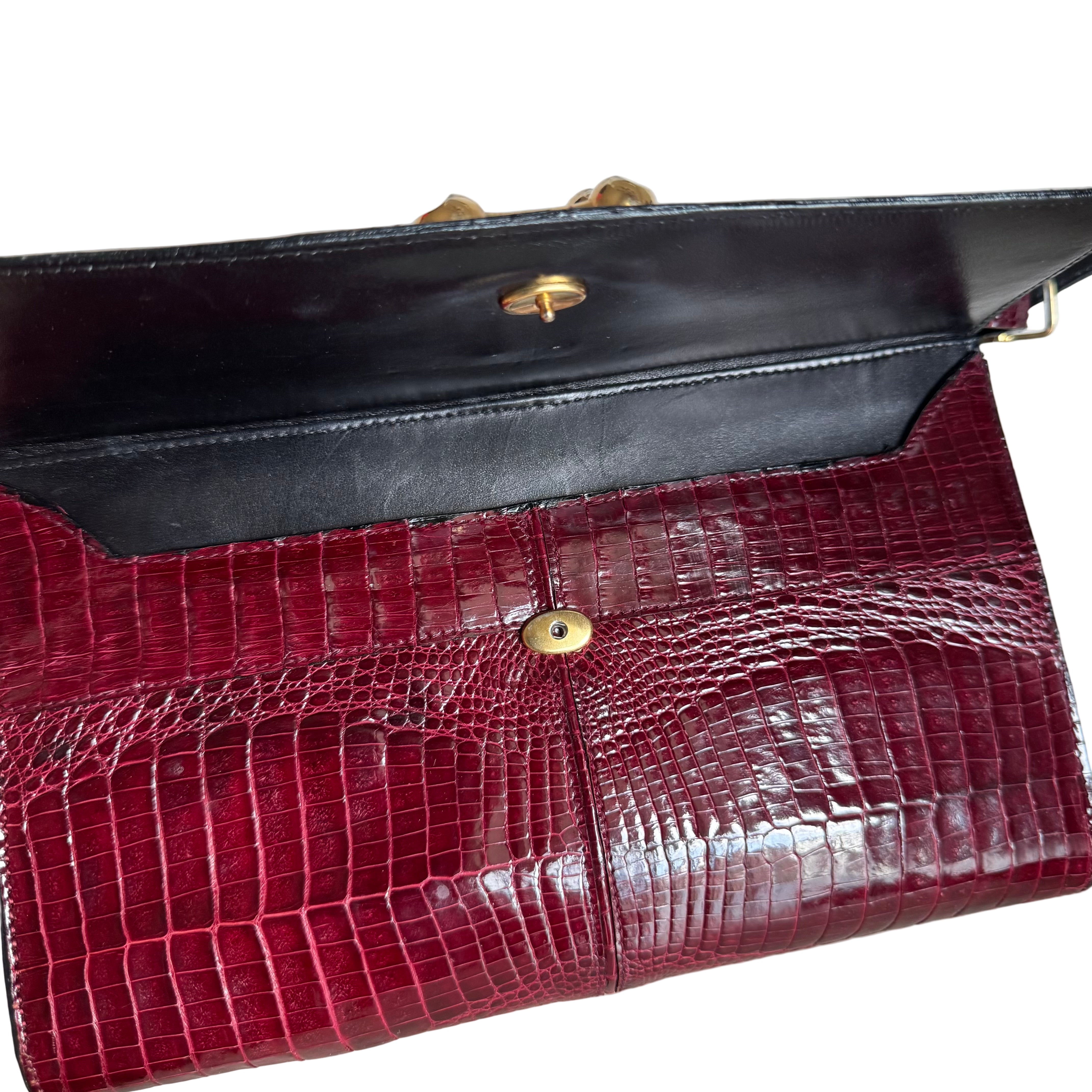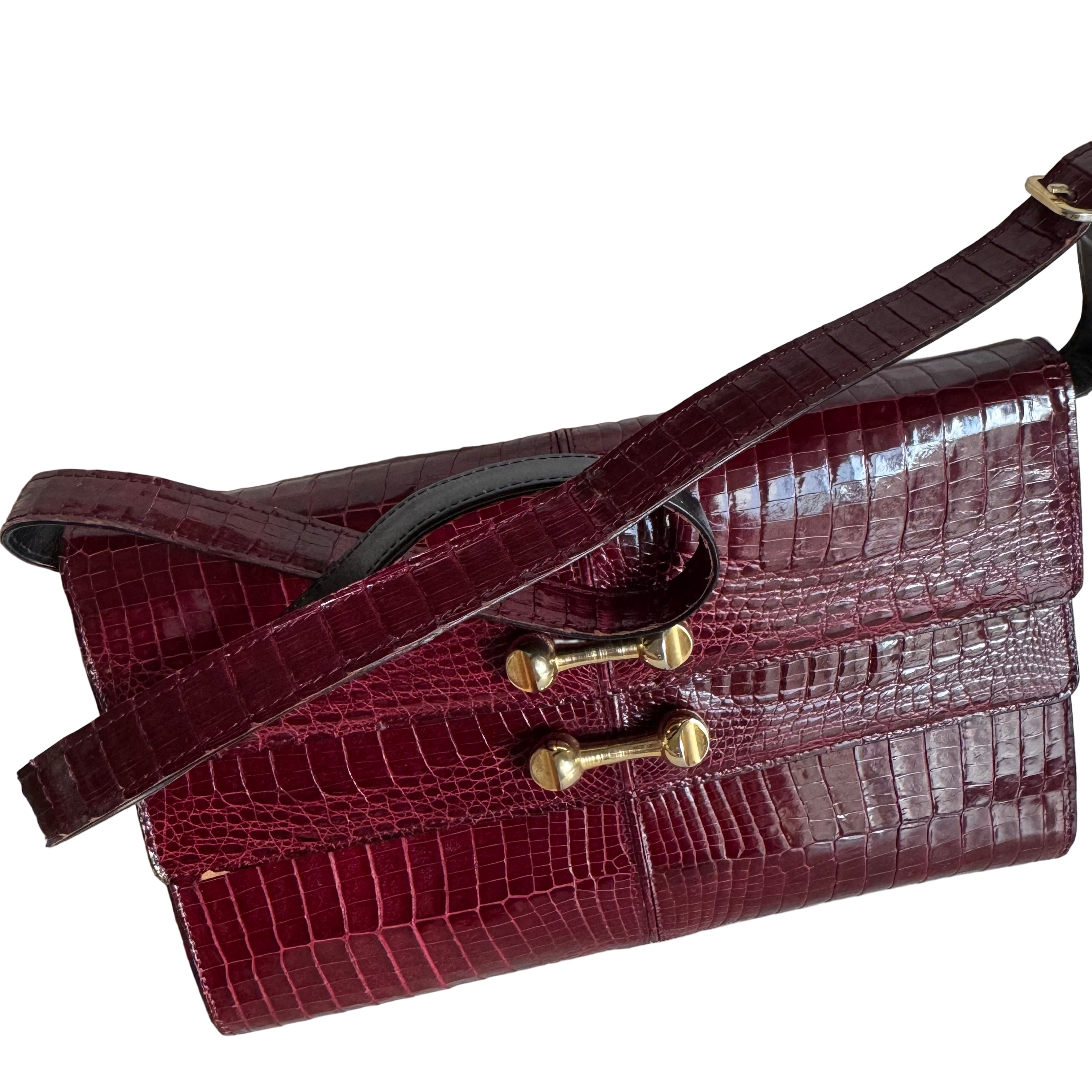 Vintage Burgundy Crocodile Leather Gold-tone Hardware Clutch Shoulder Bag